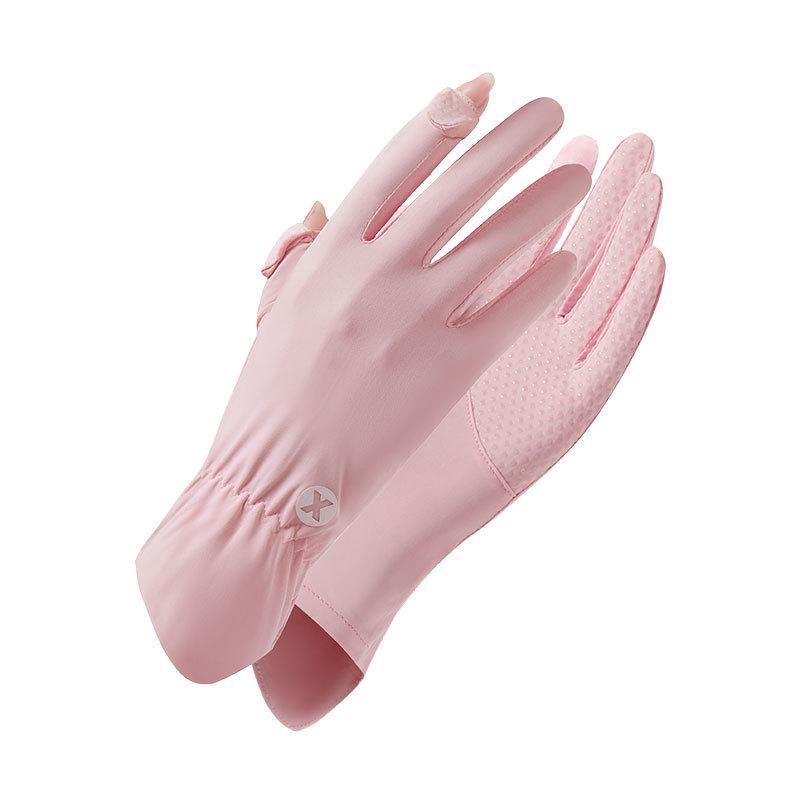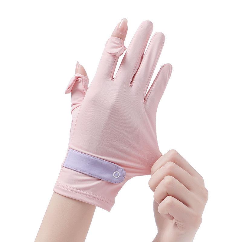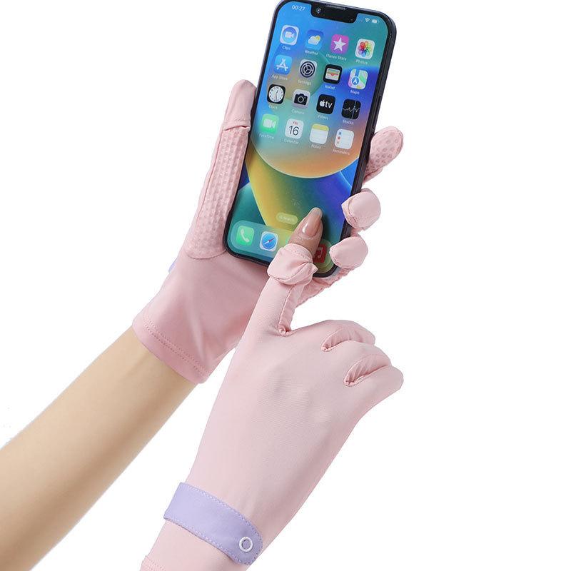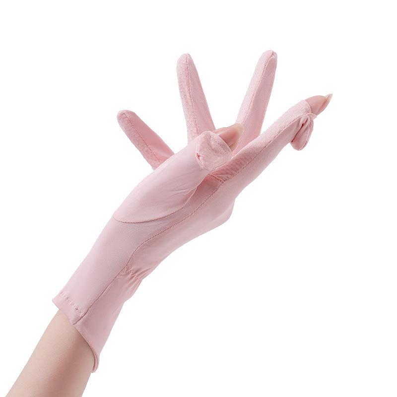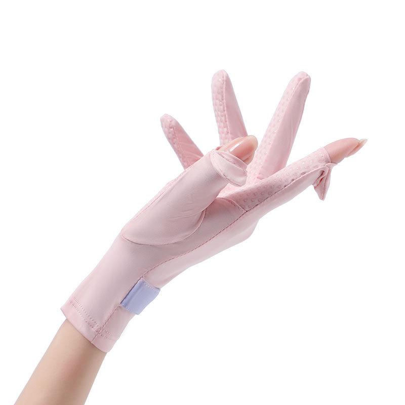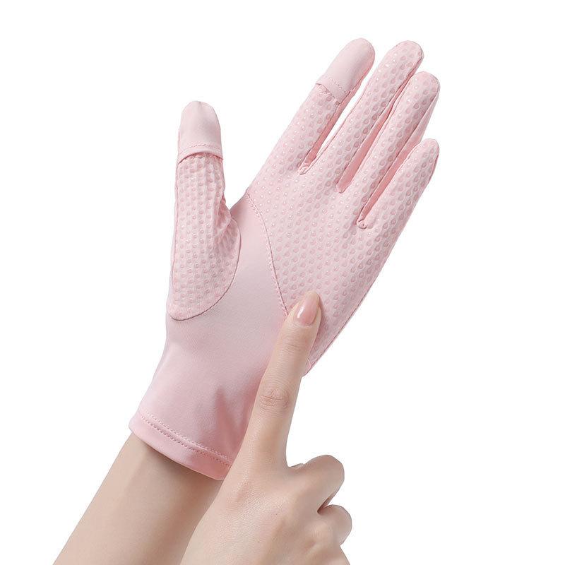 Guantes de verano con protección solar para mujer, protección UV, finos, de seda de hielo, frescos, transpirables, para conducir, montar en bicicleta, antideslizantes, expuestos, con dos dedos.