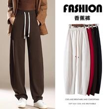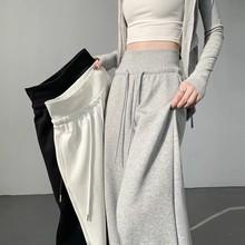 Pantalón de sudadera gris estilo americano para mujer primavera y otoño control de abdomen cintura alta drapeado pierna ancha pantalón de pierna recta suelto casual largo hasta el suelo