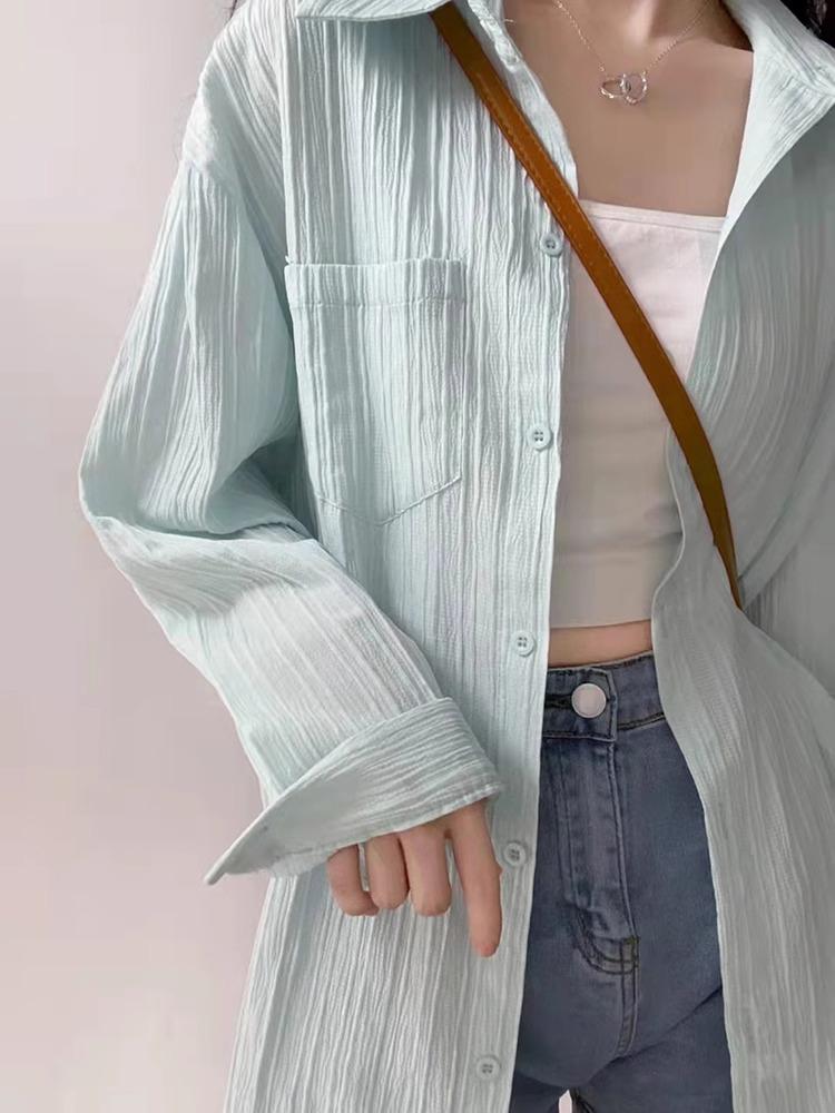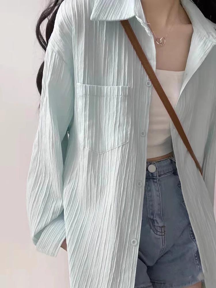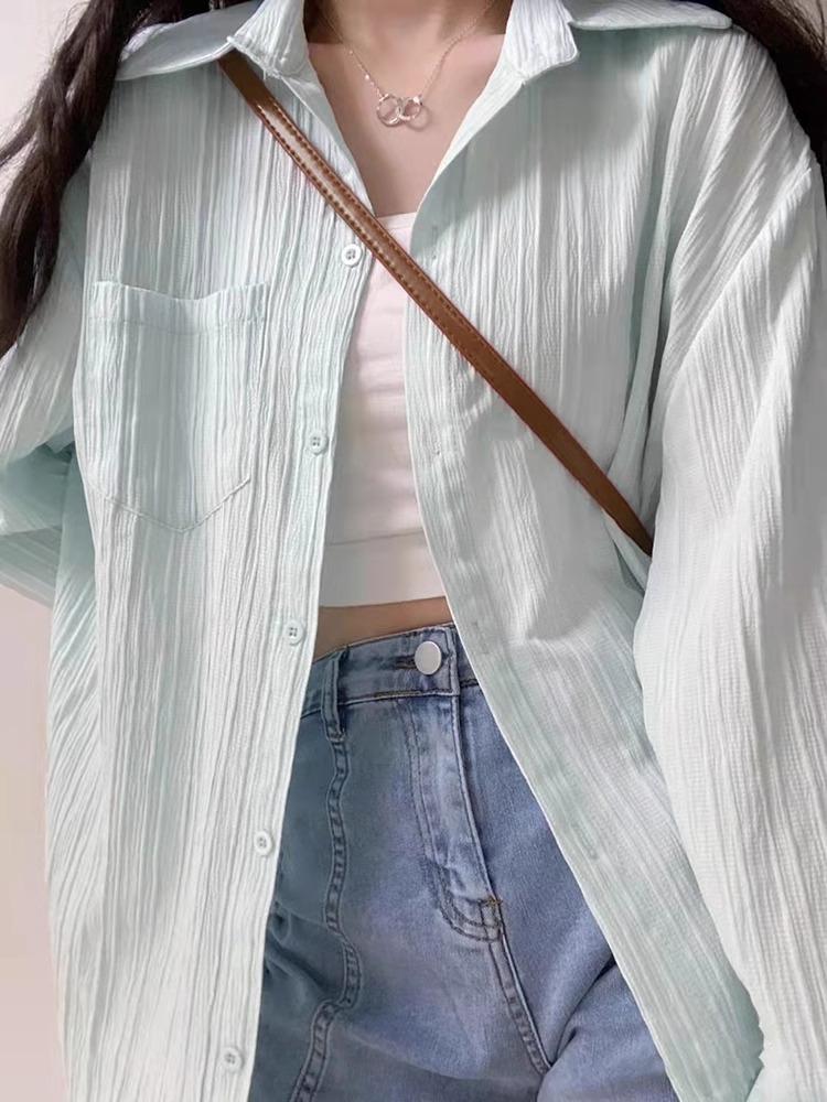 Camisa de protección solar azul para mujer, holgada, de verano, nueva, diseño superior, camisa de nicho, chaqueta exterior fina tipo cárdigan