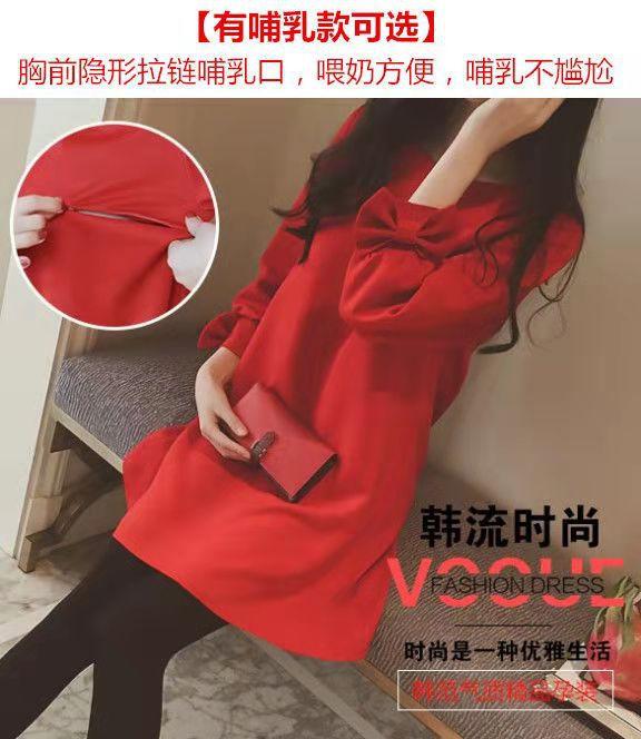 Ventas directas de fábrica en stock ropa de maternidad primavera y otoño top holgado vestido de lactancia de largo medio moda lazo