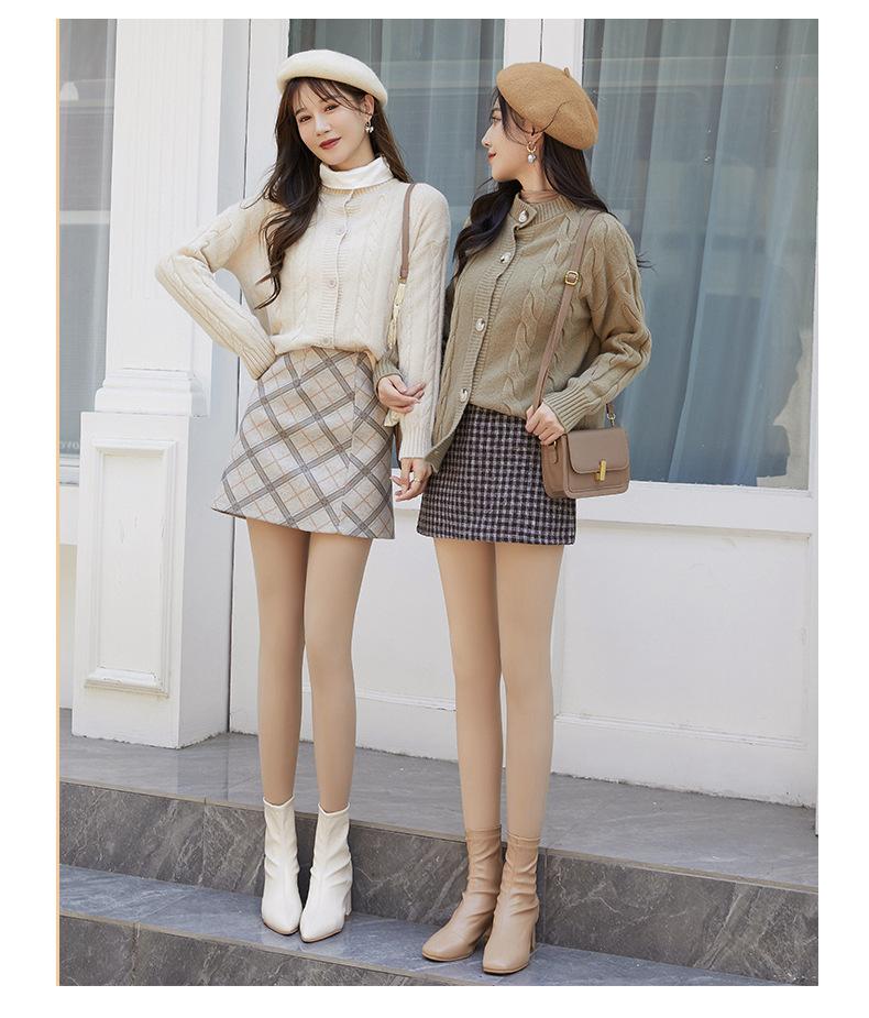 Leggings ajustados para mujer para otoño e invierno, ropa exterior de doble capa con sensación de desnudez, forro polar engrosado color carne, medias cálidas con brillo de agua al por mayor