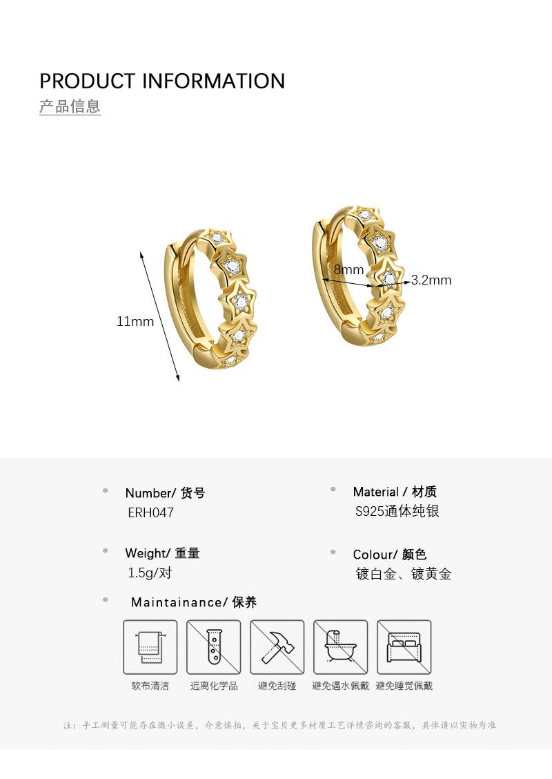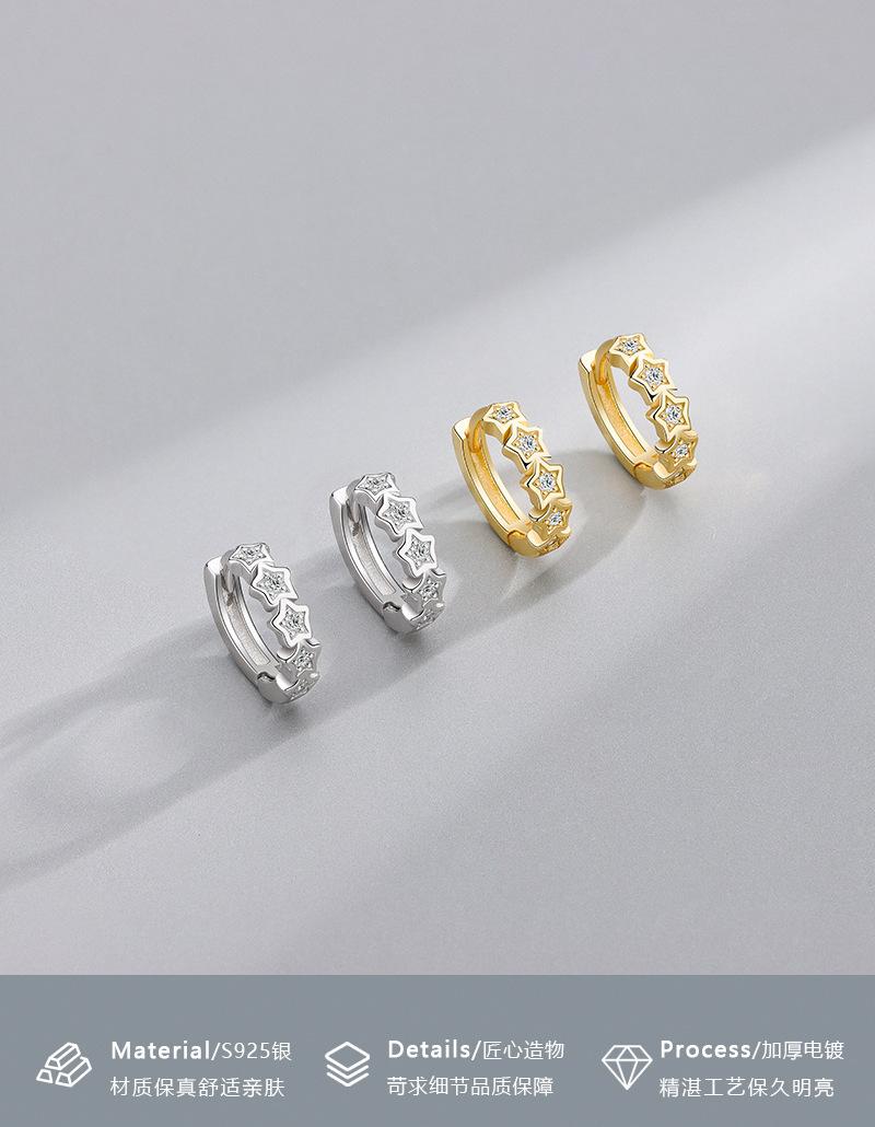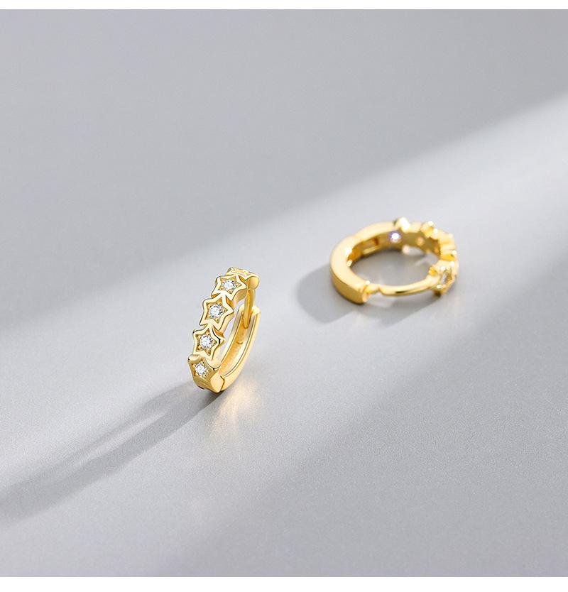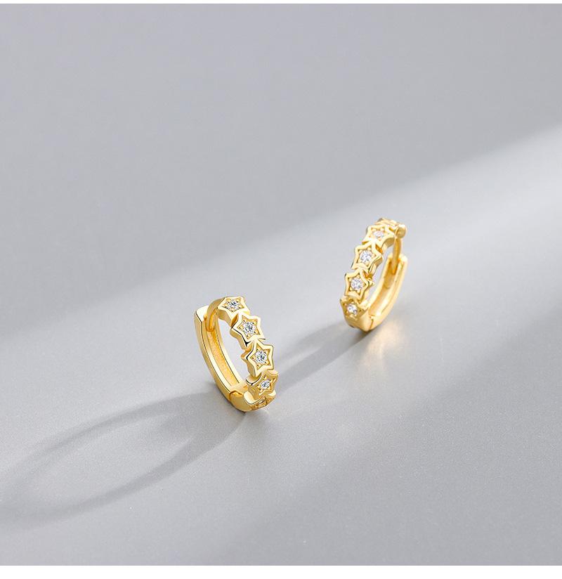 Pendientes de verano con estrella de cinco puntas y diamantes de plata esterlina S925, elegantes pendientes pequeños chapados en oro K de moda japonesa y coreana para mujer.