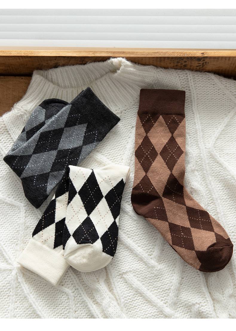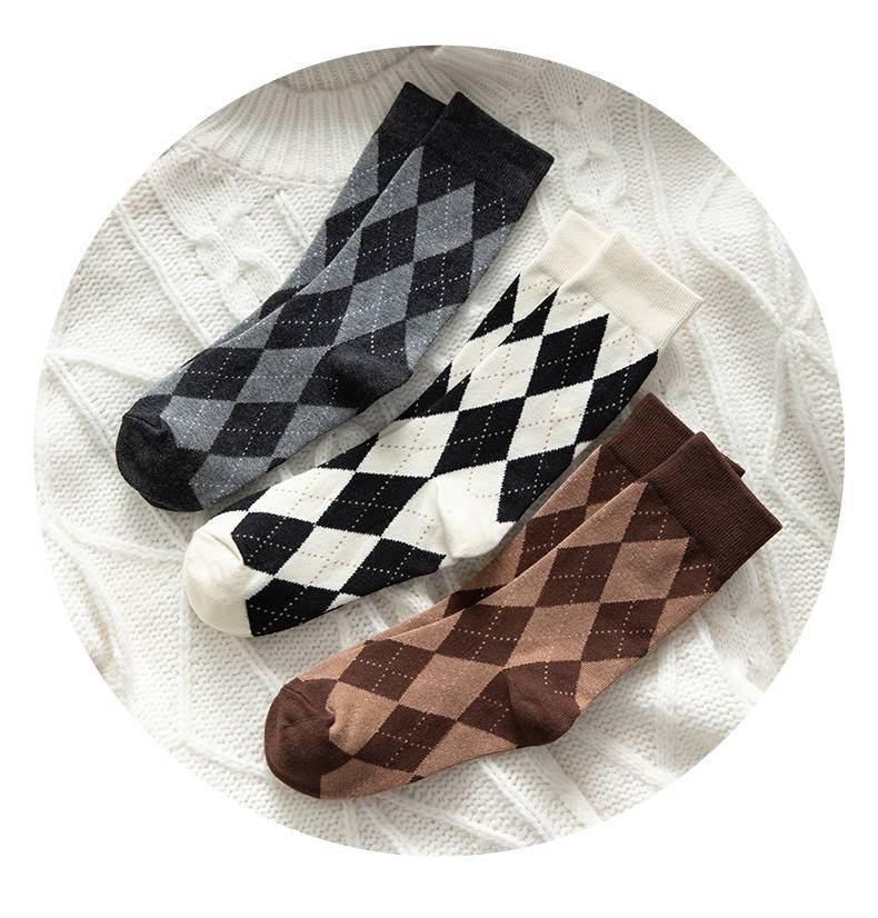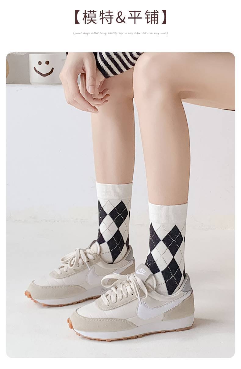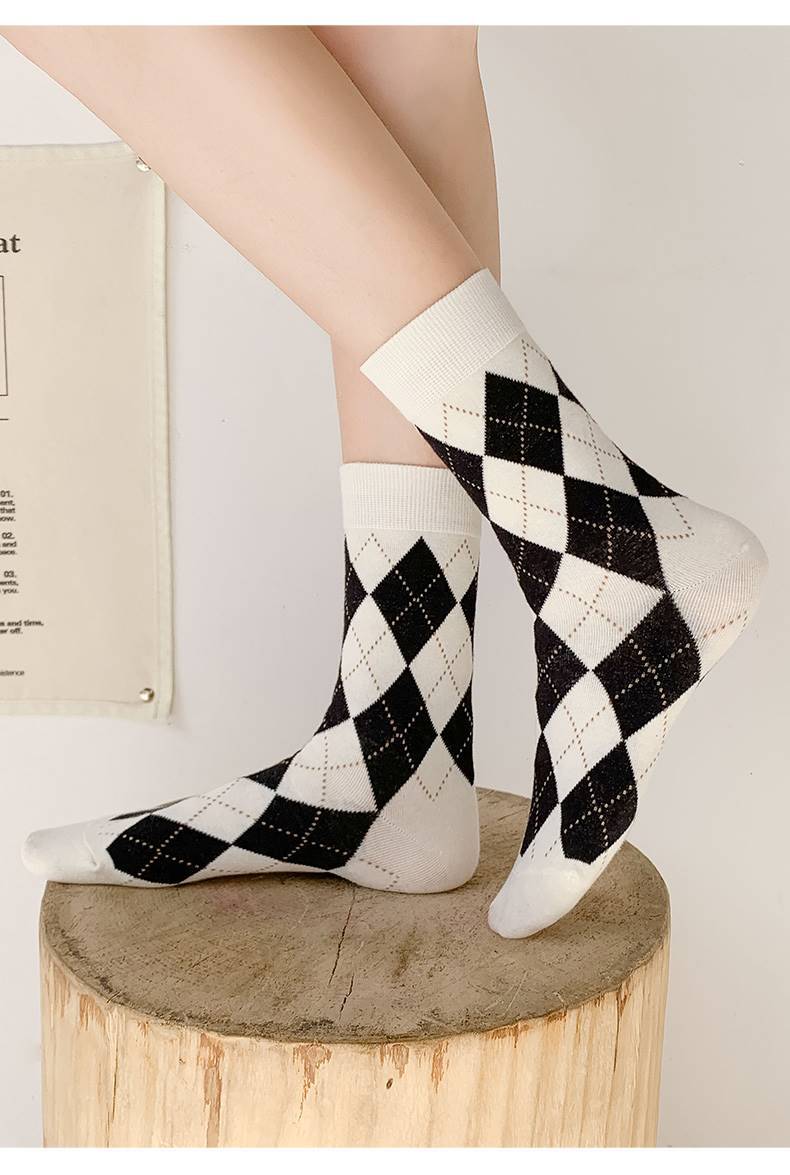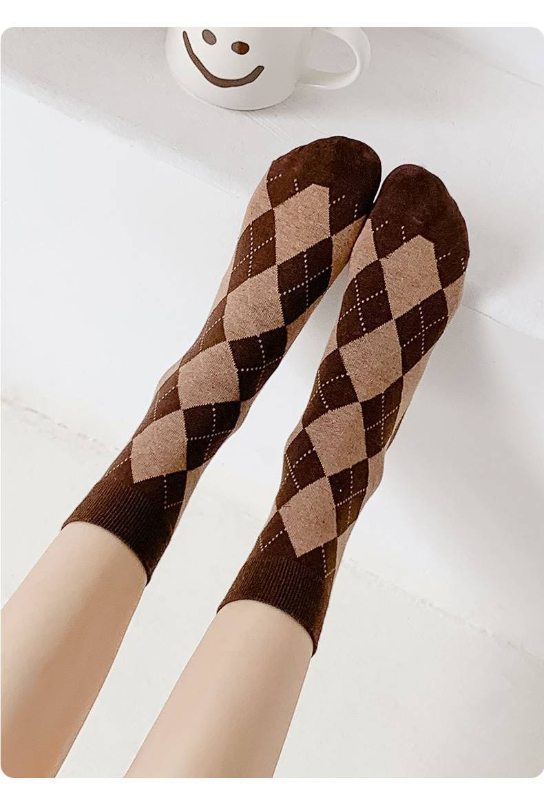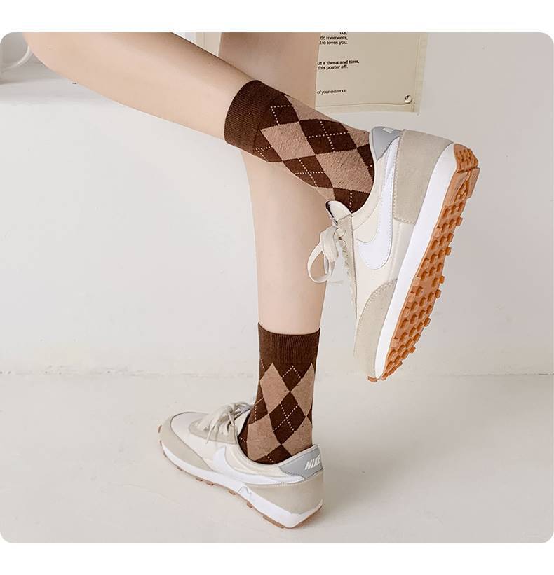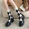 Calcetines de mujer otoño e invierno, estilo japonés con diamantes, estilo preppy retro, a cuadros, calcetines de media pantorrilla de estilo coreano que combinan con todo.