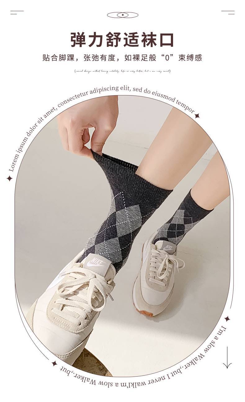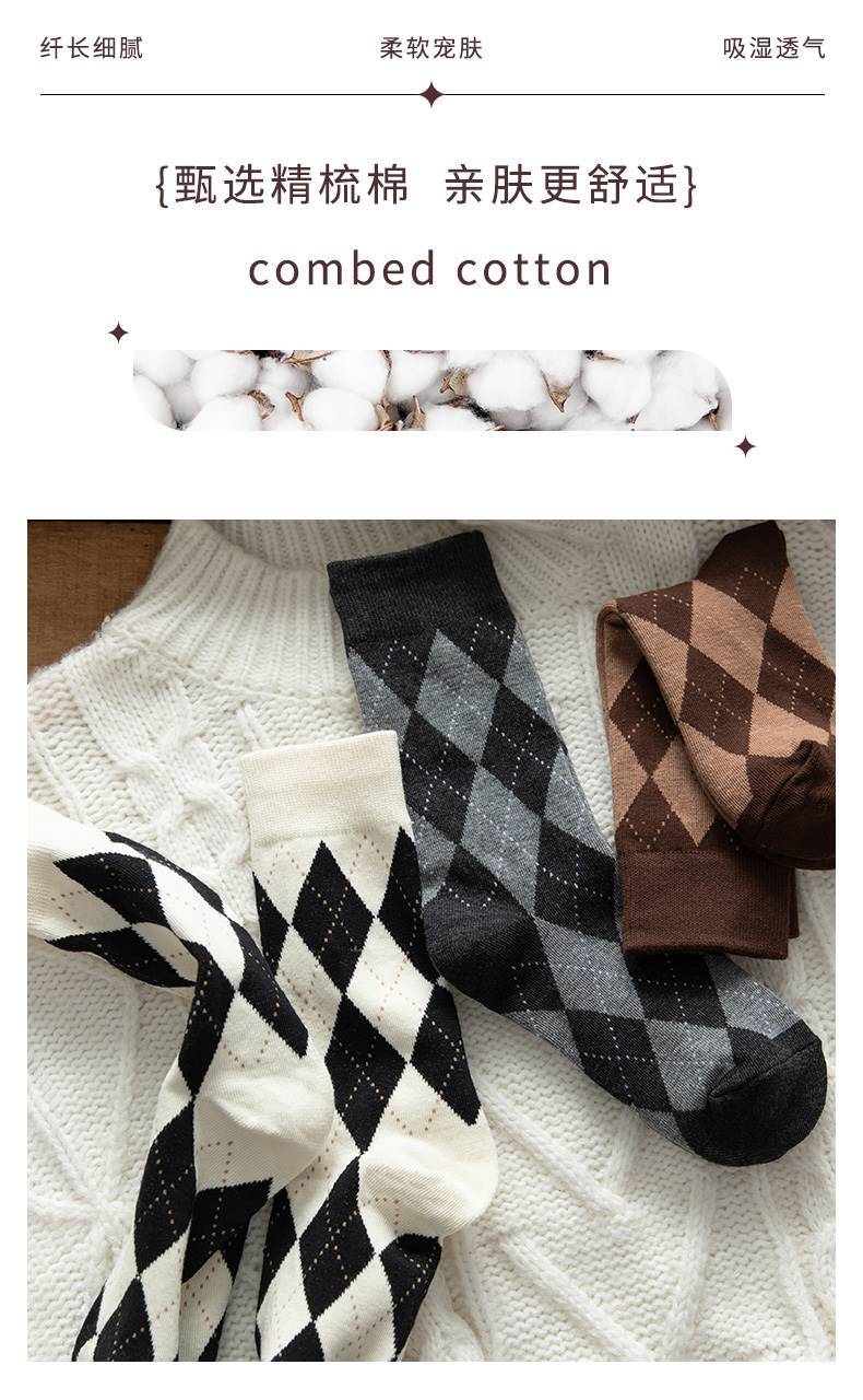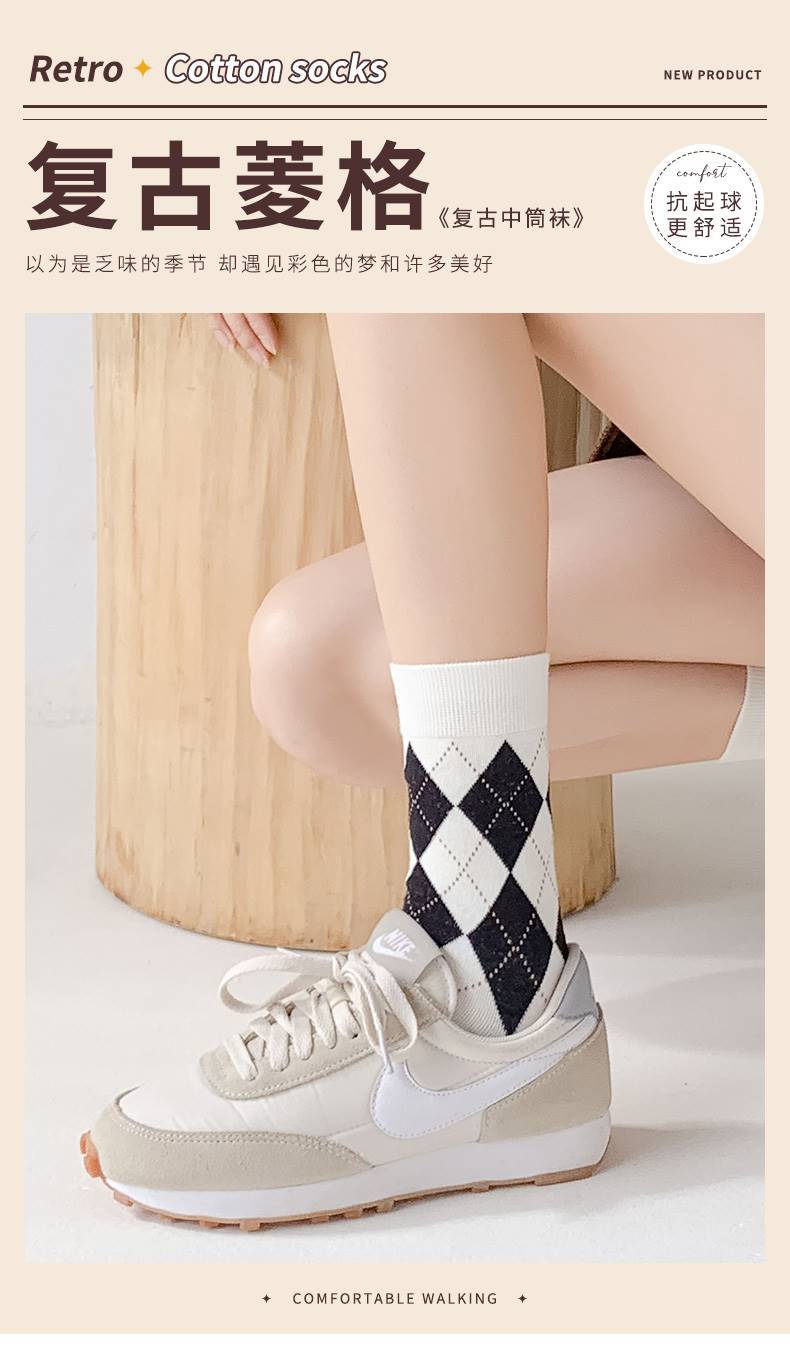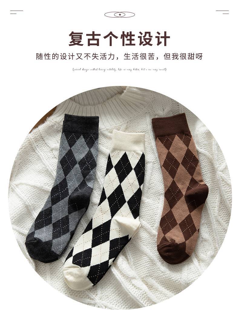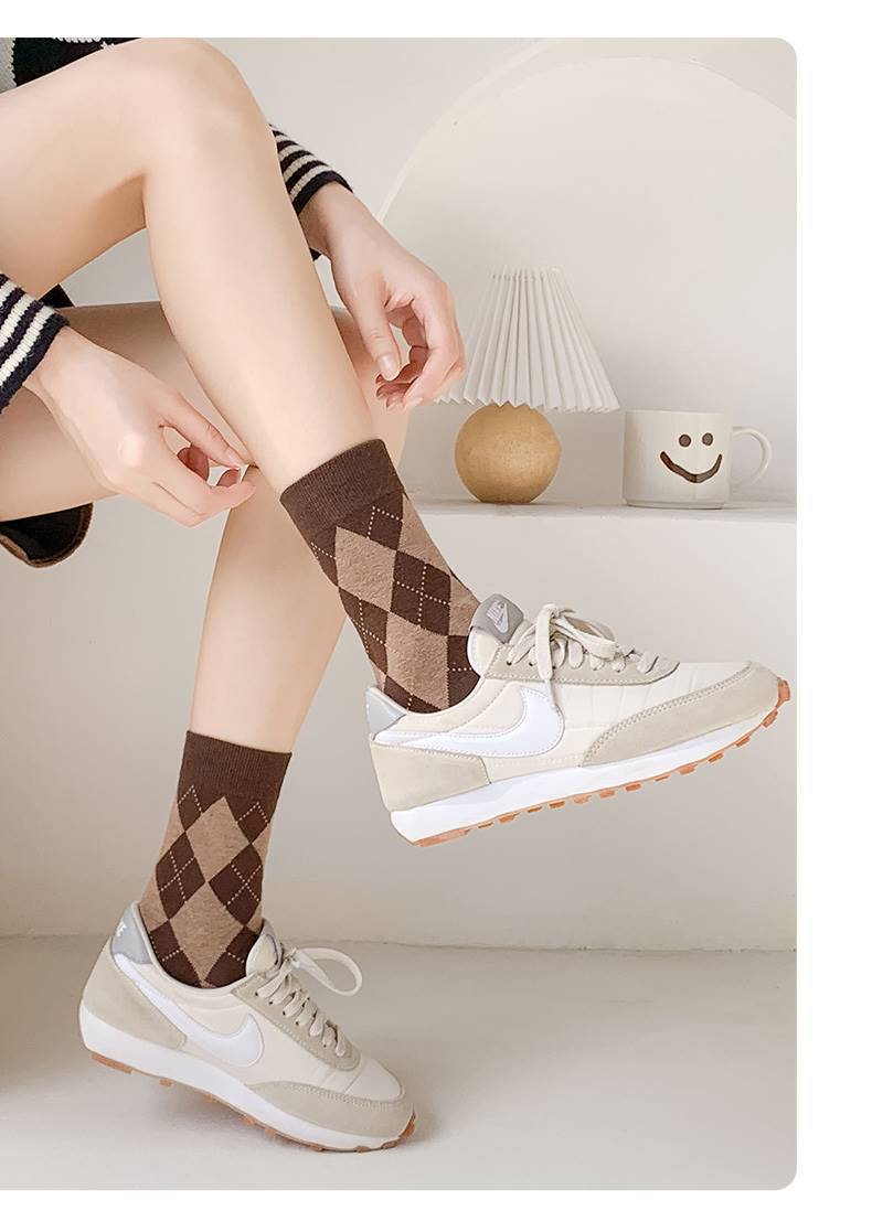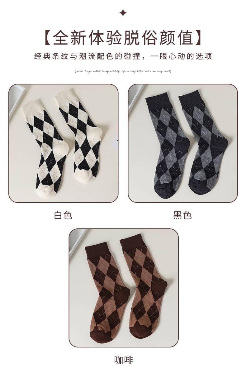 Calcetines de mujer otoño e invierno, estilo japonés con diamantes, estilo preppy retro, a cuadros, calcetines de media pantorrilla de estilo coreano que combinan con todo.