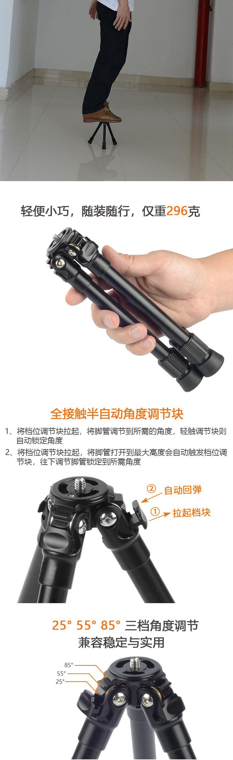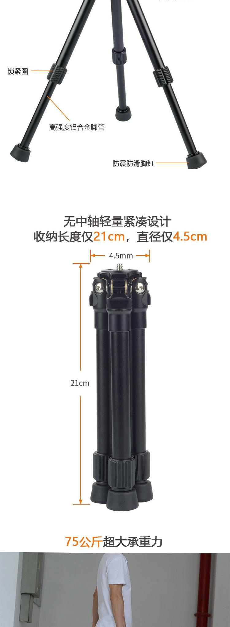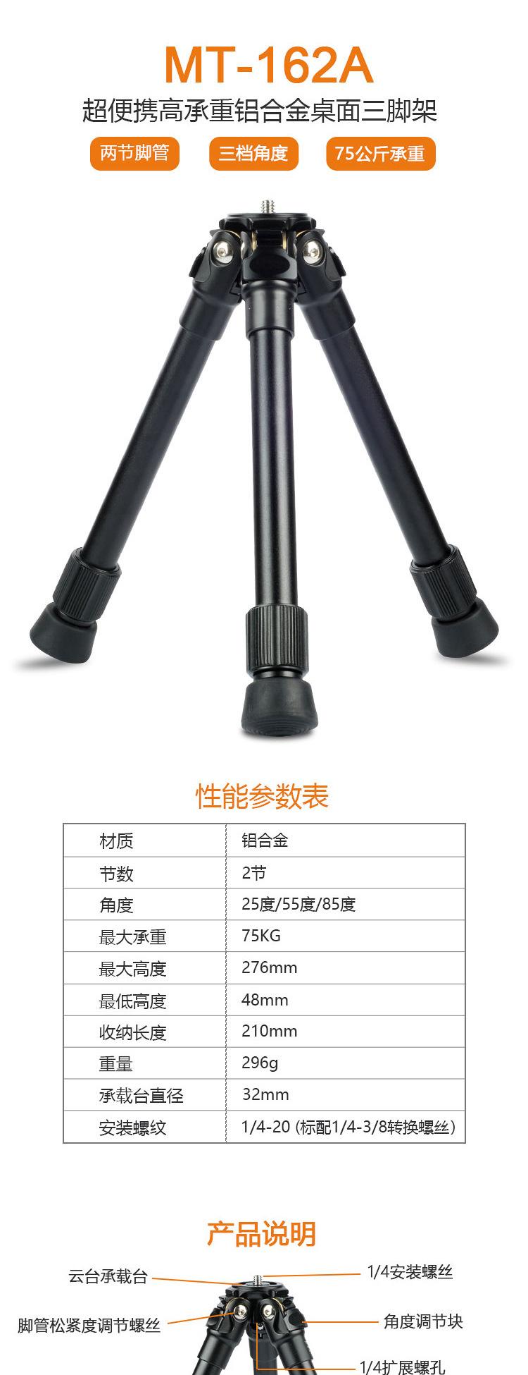 Trípode de escritorio para cámara, fotografía, trípode portátil, teléfono móvil, video en vivo, cabezal de trípode de aleación de aluminio.