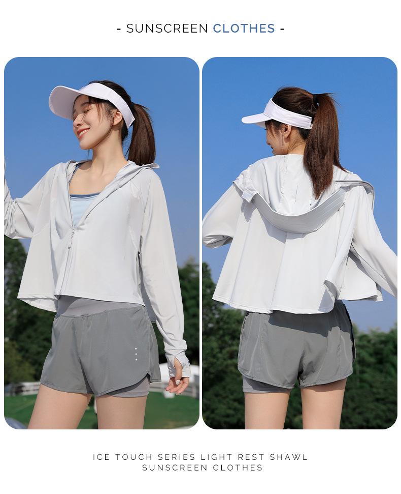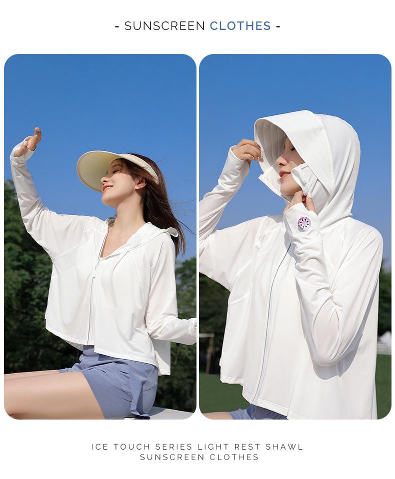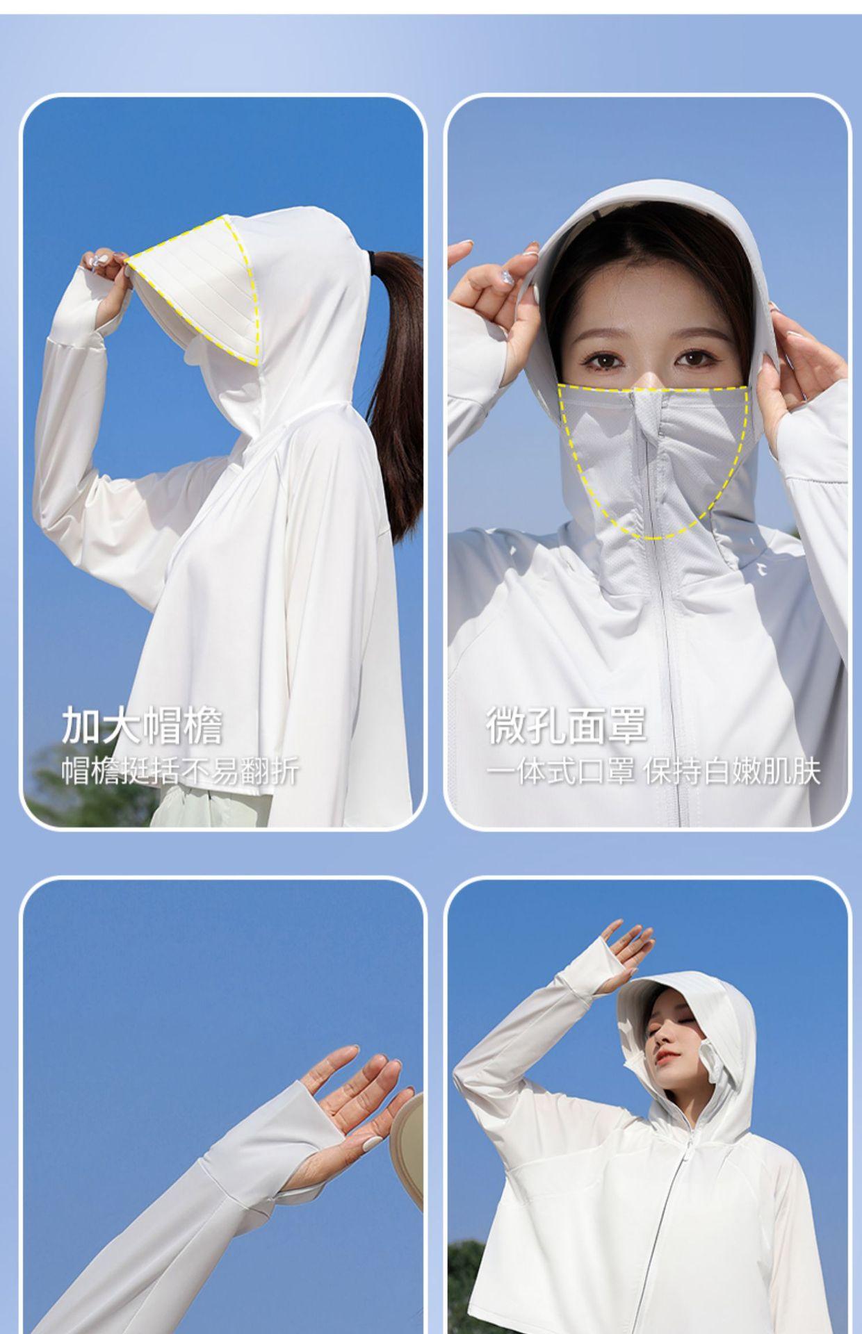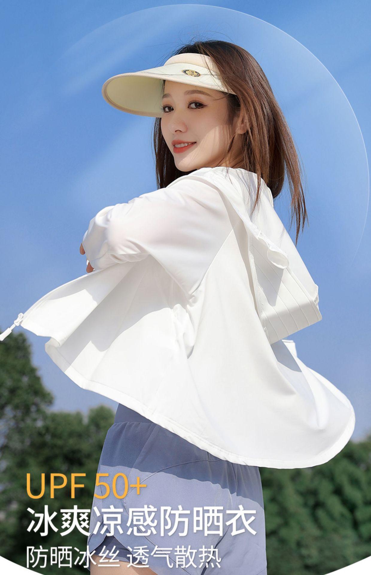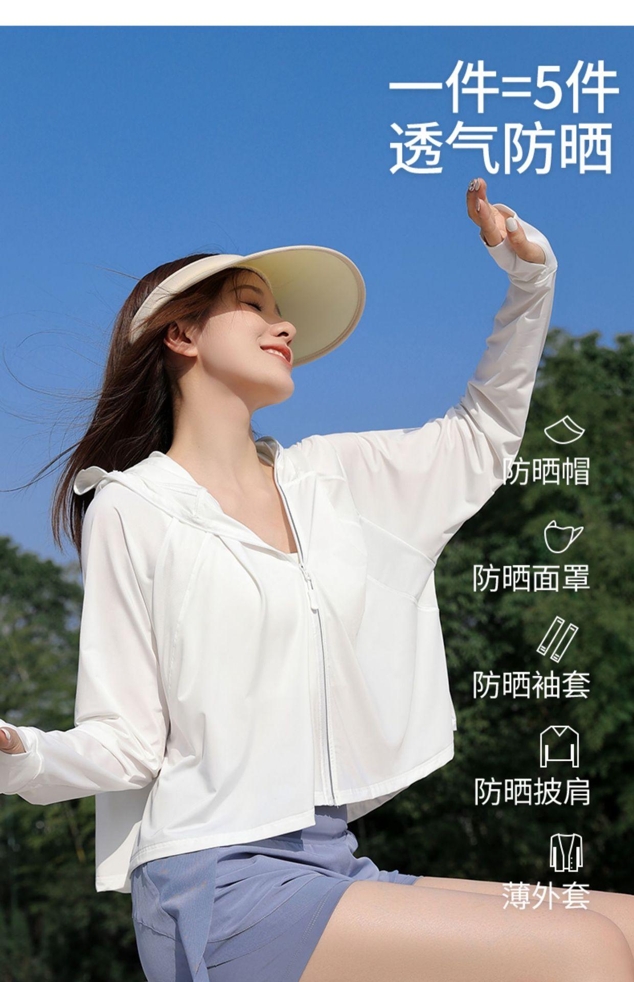Verano Nuevo Estilo Seda de Hielo Delgada Anti-UV Corta con Capucha Manga Larga Blanca Abrigo de Verano Ropa de Protección Solar para Mujeres Primavera