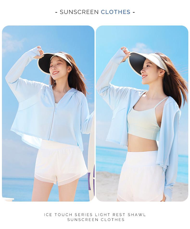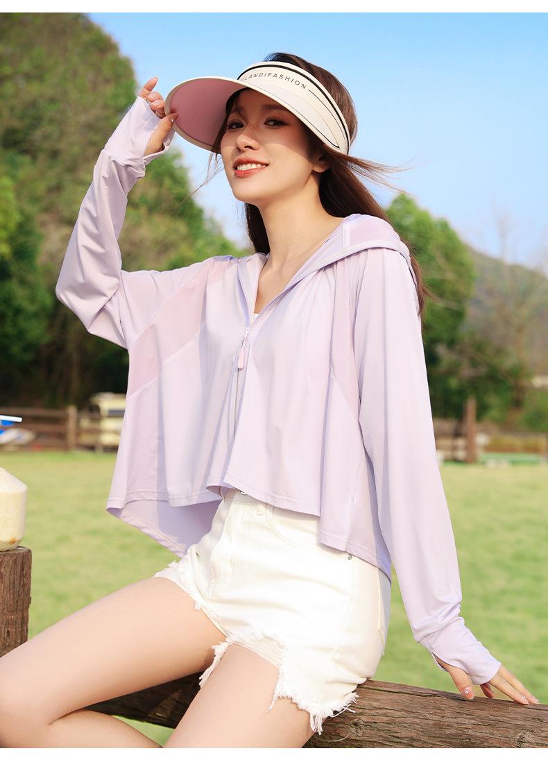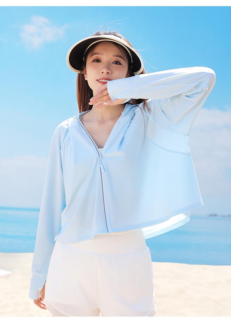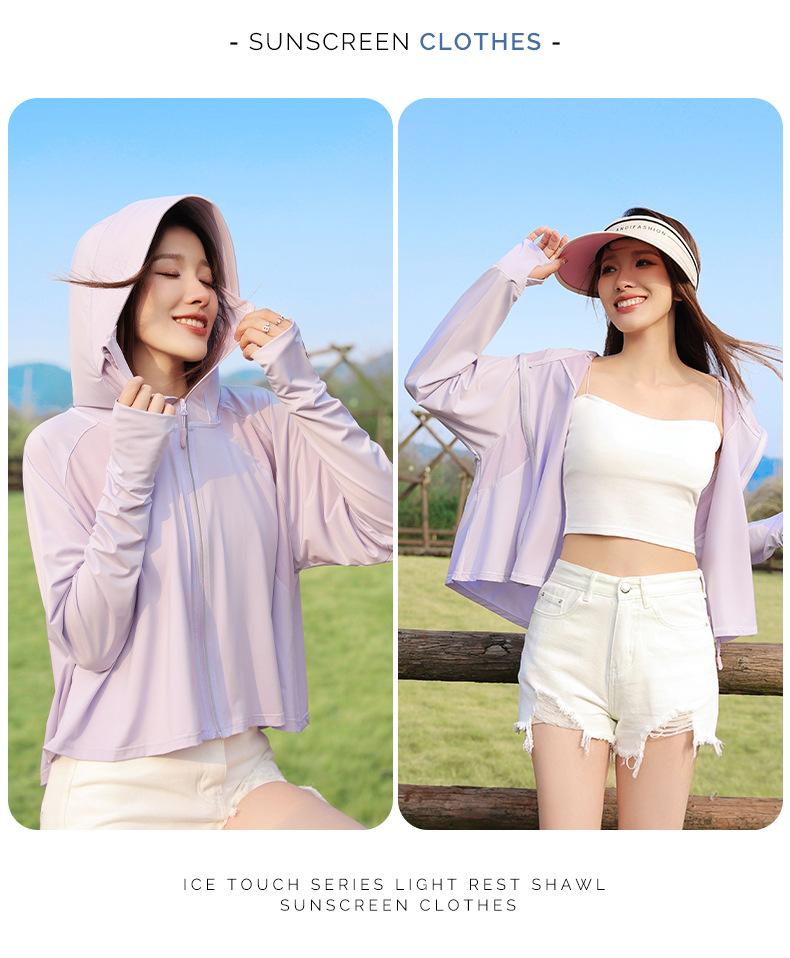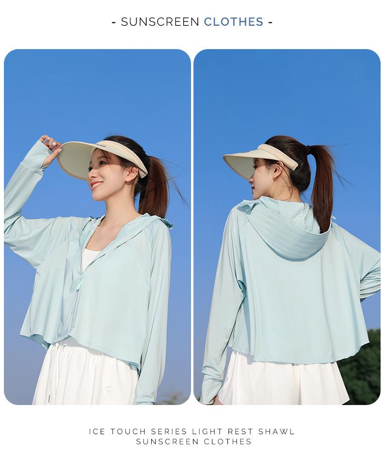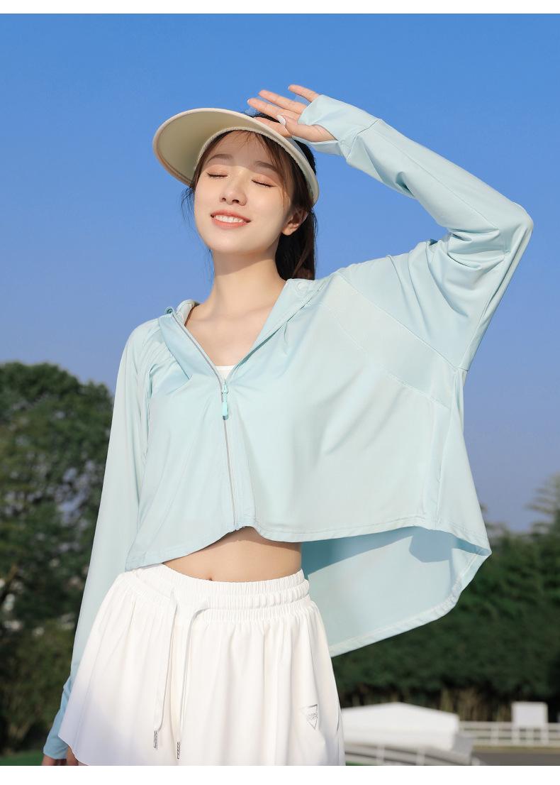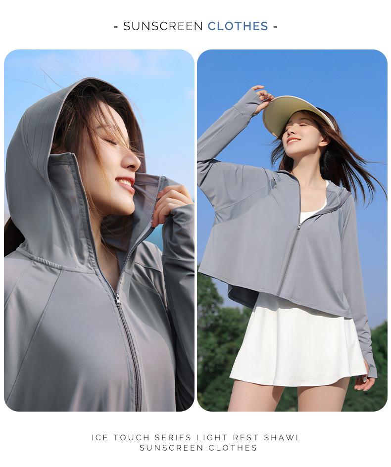 Verano Nuevo Estilo Seda de Hielo Delgada Anti-UV Corta con Capucha Manga Larga Blanca Abrigo de Verano Ropa de Protección Solar para Mujeres Primavera