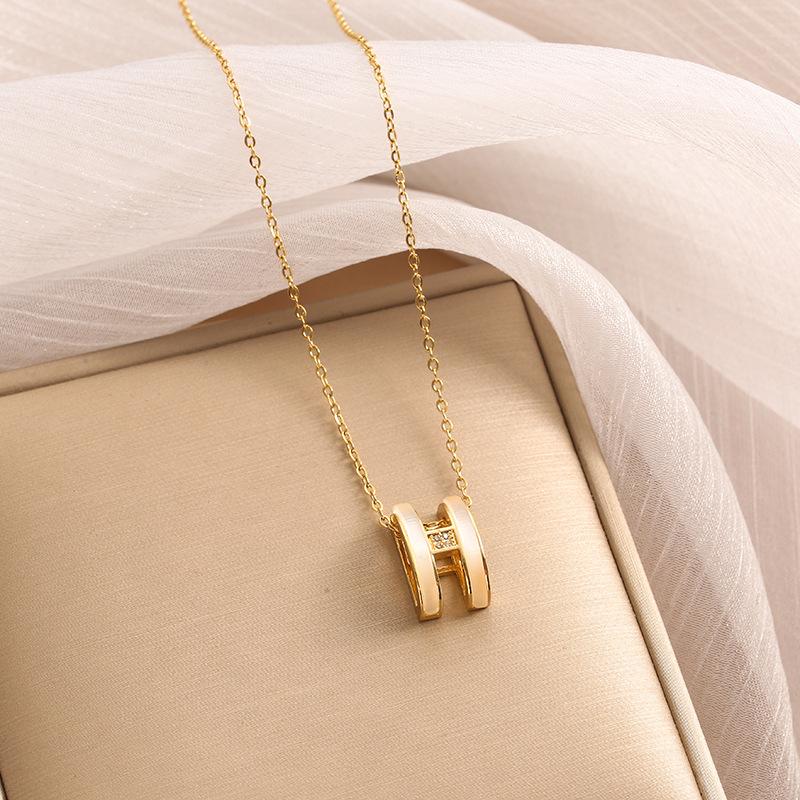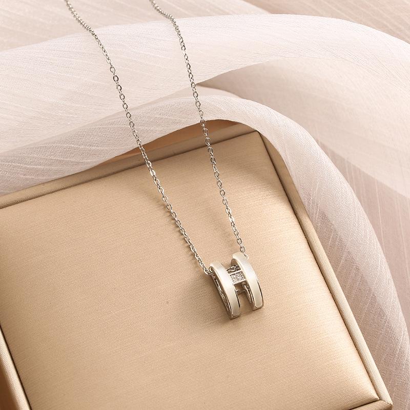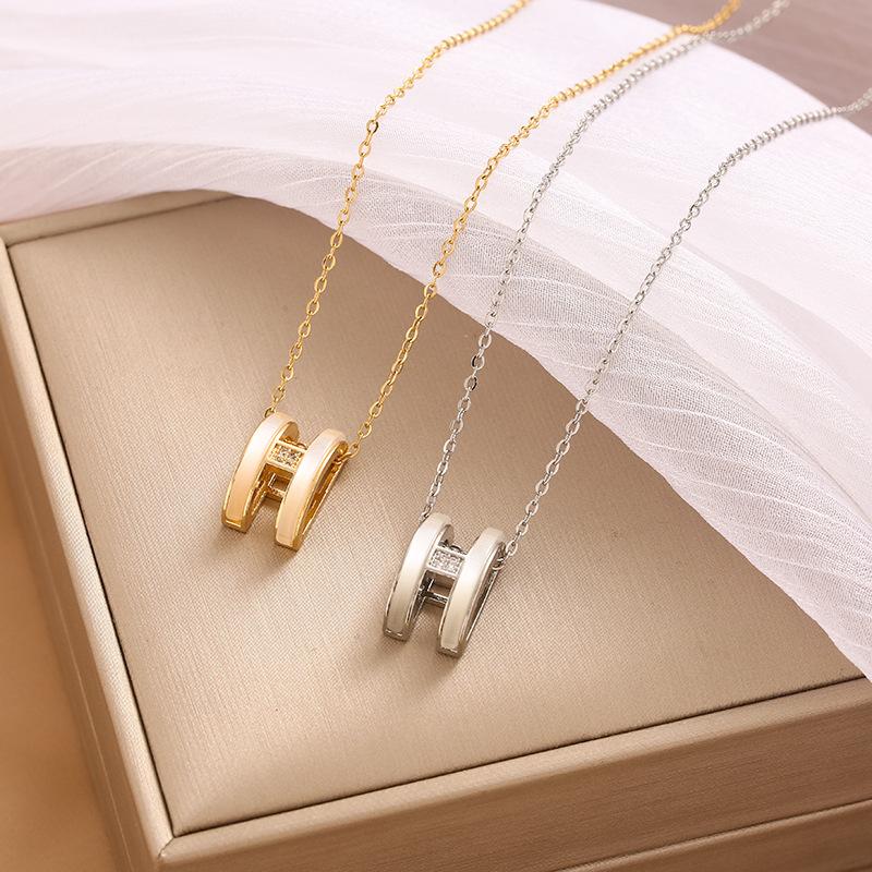 Collar de Acero de Titanio con Colgante de Piedra Ojo de Gato con Diseño de Nicho de Letra H para Mujer, Joyería de Cadena Clavicular que no se Desvanece, Venta Caliente Transfronteriza