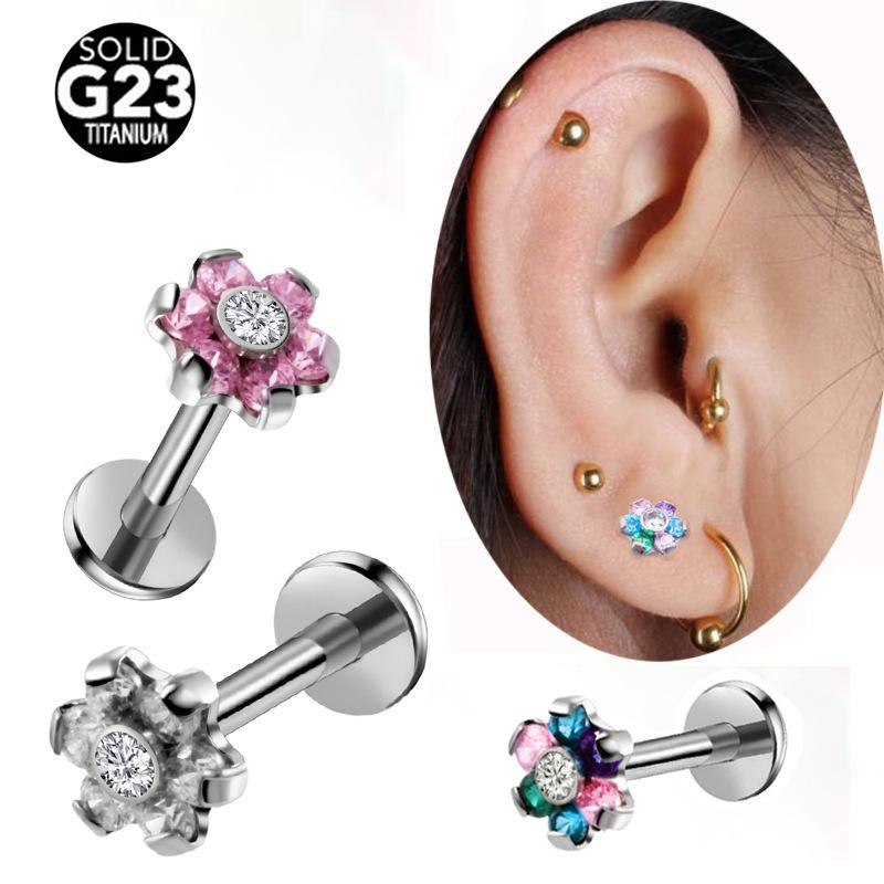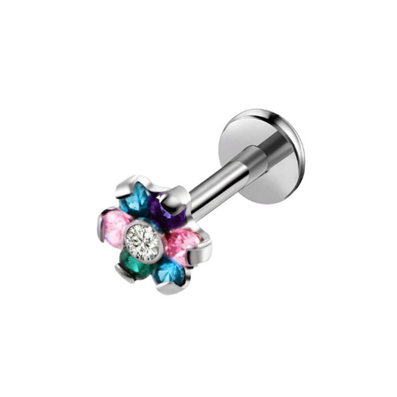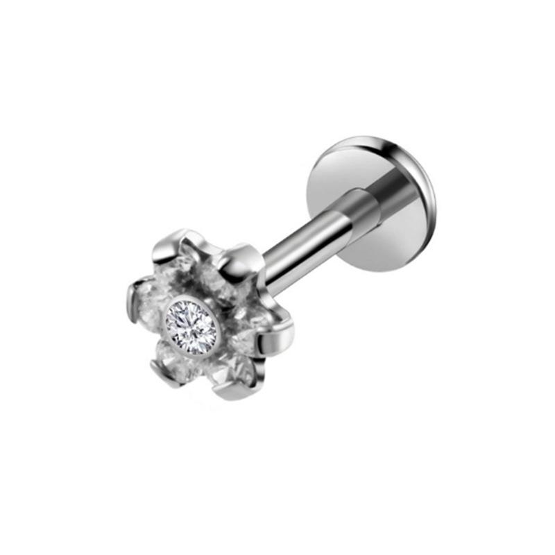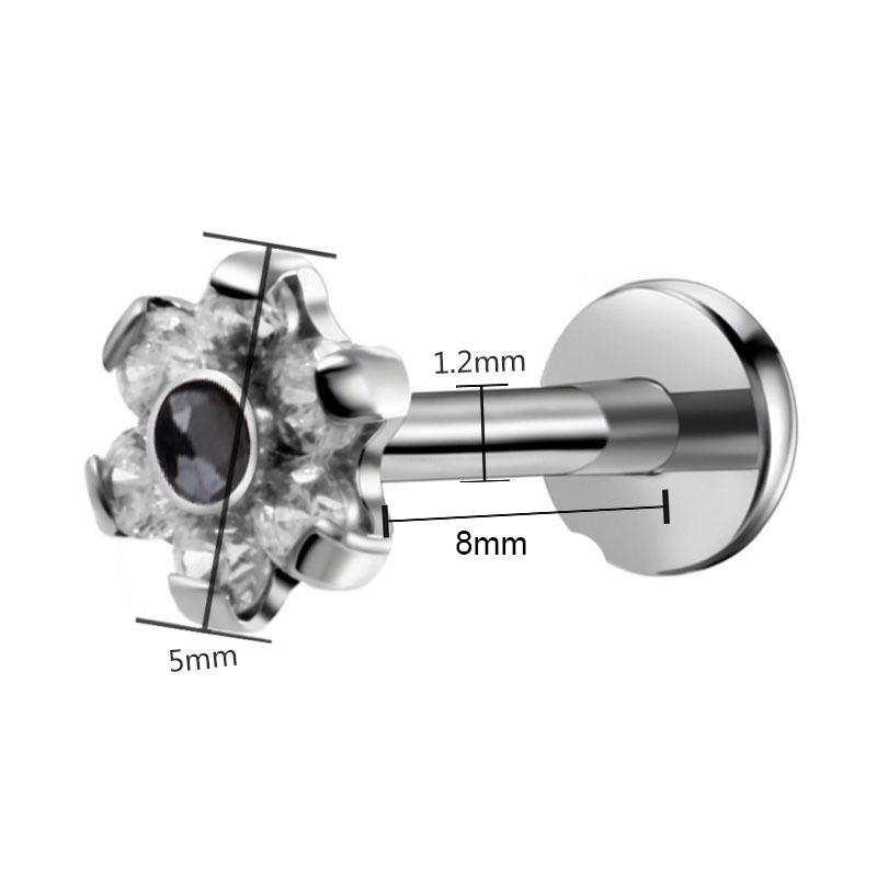 [Nombre]: Aretes tipo stud para labio de titanio G23 con incrustación de circonio de rosca interna con forma de flor, joyería para piercing corporal, aretes tipo stud para lóbulo de la oreja