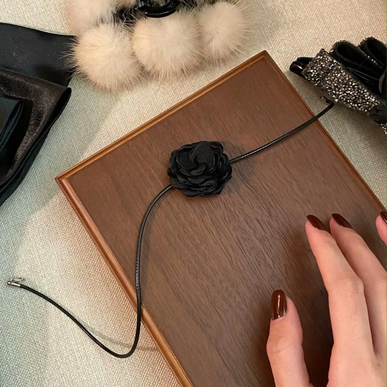 Material: flor de tela + cordón de cera + hebilla de cola de acero inoxidable