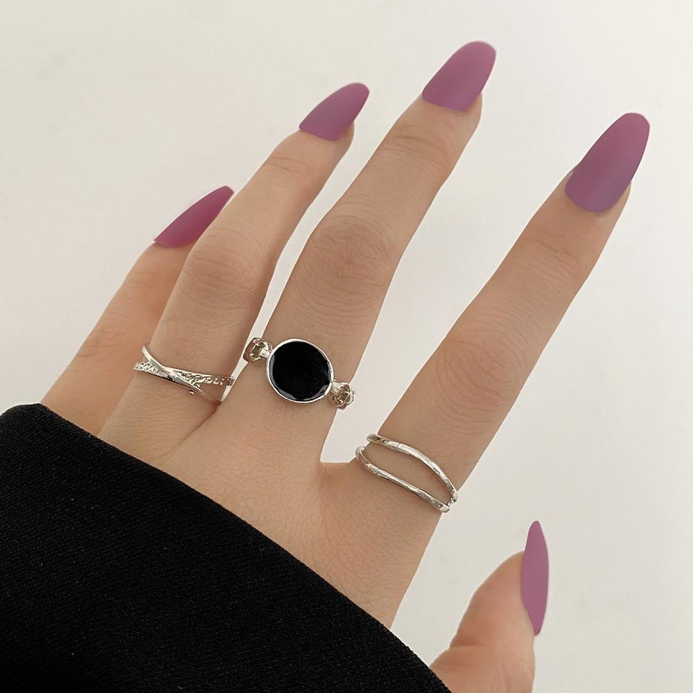 Juego de anillos minimalistas estilo hip-hop europeo y americano de 3 anillos abiertos ajustables, anillos nudilleros vintage, anillos de falange, anillos geométricos al por mayor
