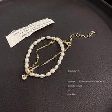 Pulsera barroca de perlas de agua dulce de doble capa para mujer, pulsera de nicho retro ins, joyería de mano de temperamento de lujo ligero de alta gama