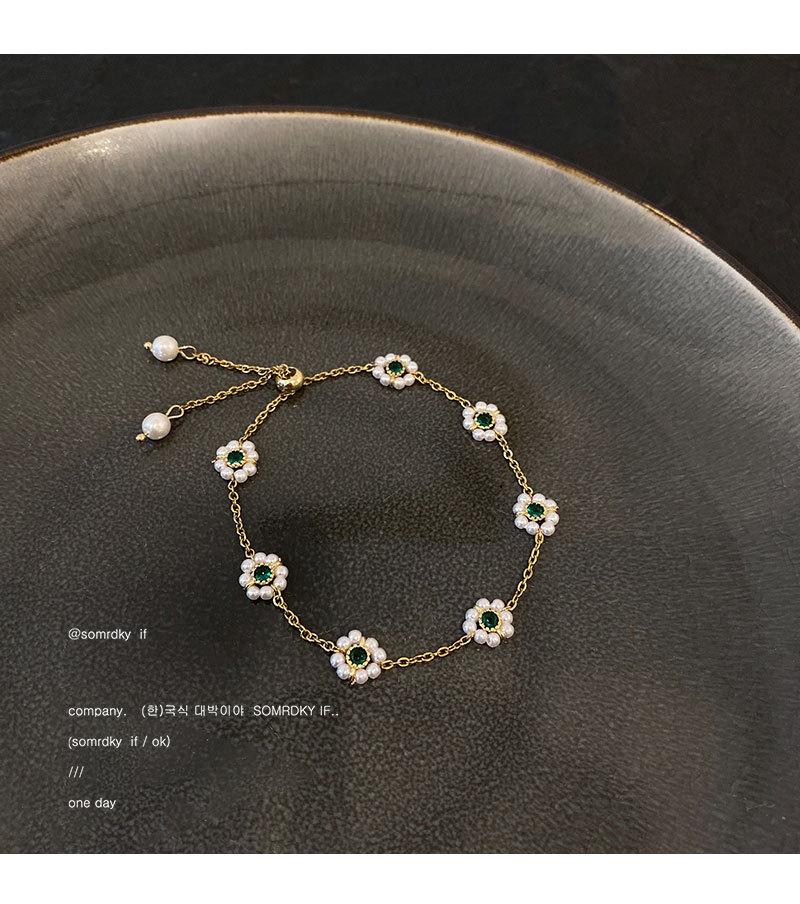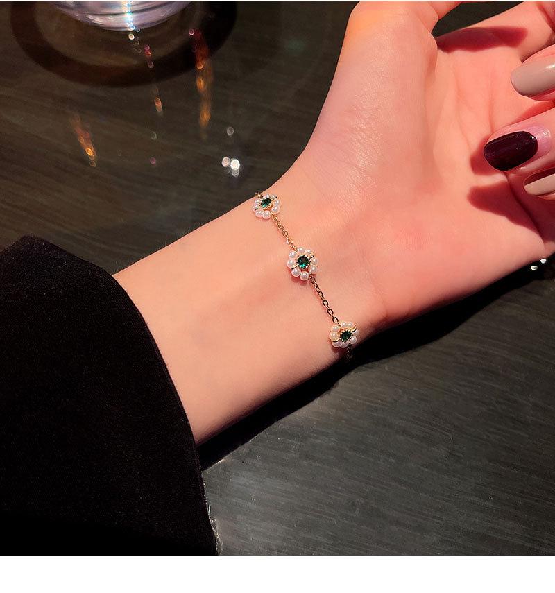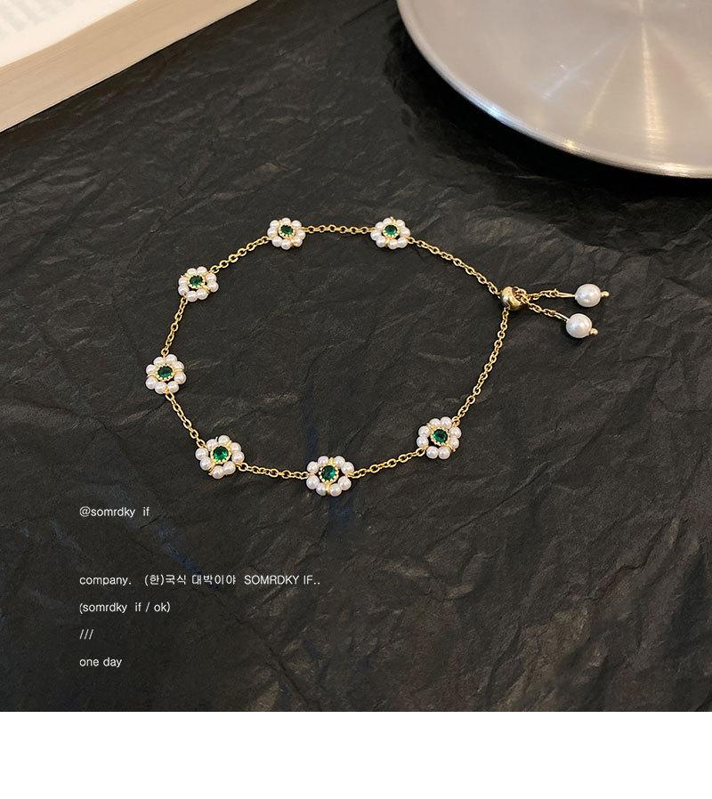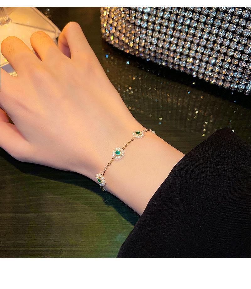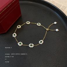 Pulsera de flores esmeralda retro francesa para mujer, pulsera ajustable de diseño de nicho, joyería de mano sencilla y de personalidad ins