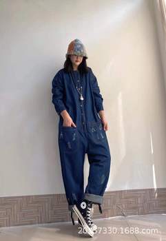 Monos vaqueros de talla grande para mujer, primavera y otoño 2023, nuevos vaqueros holgados con estampado retro desgastado y ajustados para mujer | Mono de cintura alta de color liso para mujer, de talla grande, de celebridades de Internet, nuevo, para primavera y otoño, estilo coreano, lavado, de manga larga, para el trabajo, vaqueros para mujer | Overoles vaqueros de talla grande para mujer, primavera y otoño 2023, nuevo estilo, lavados, sueltos, de cintura alta, ajustados, para mujer | ||