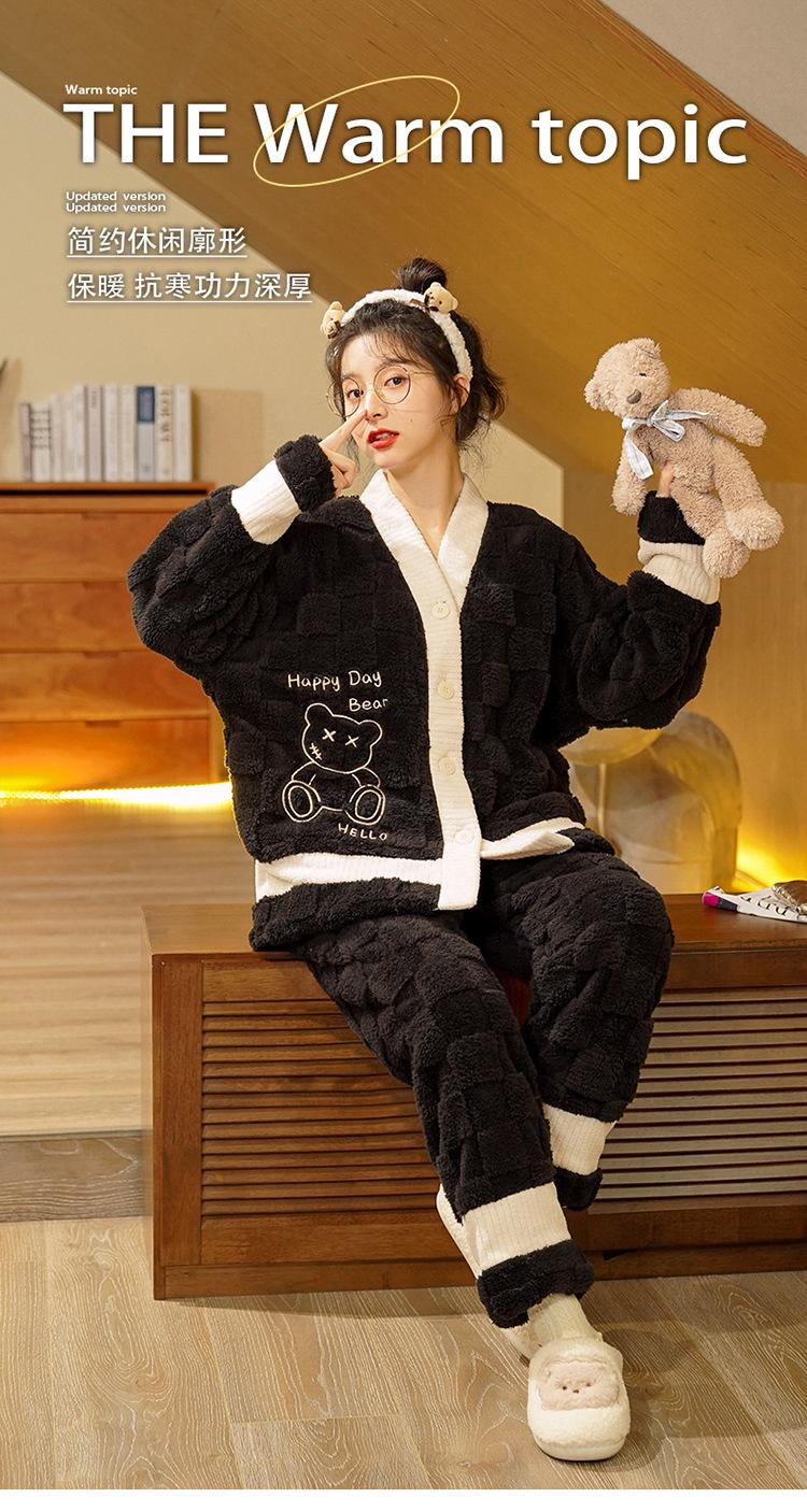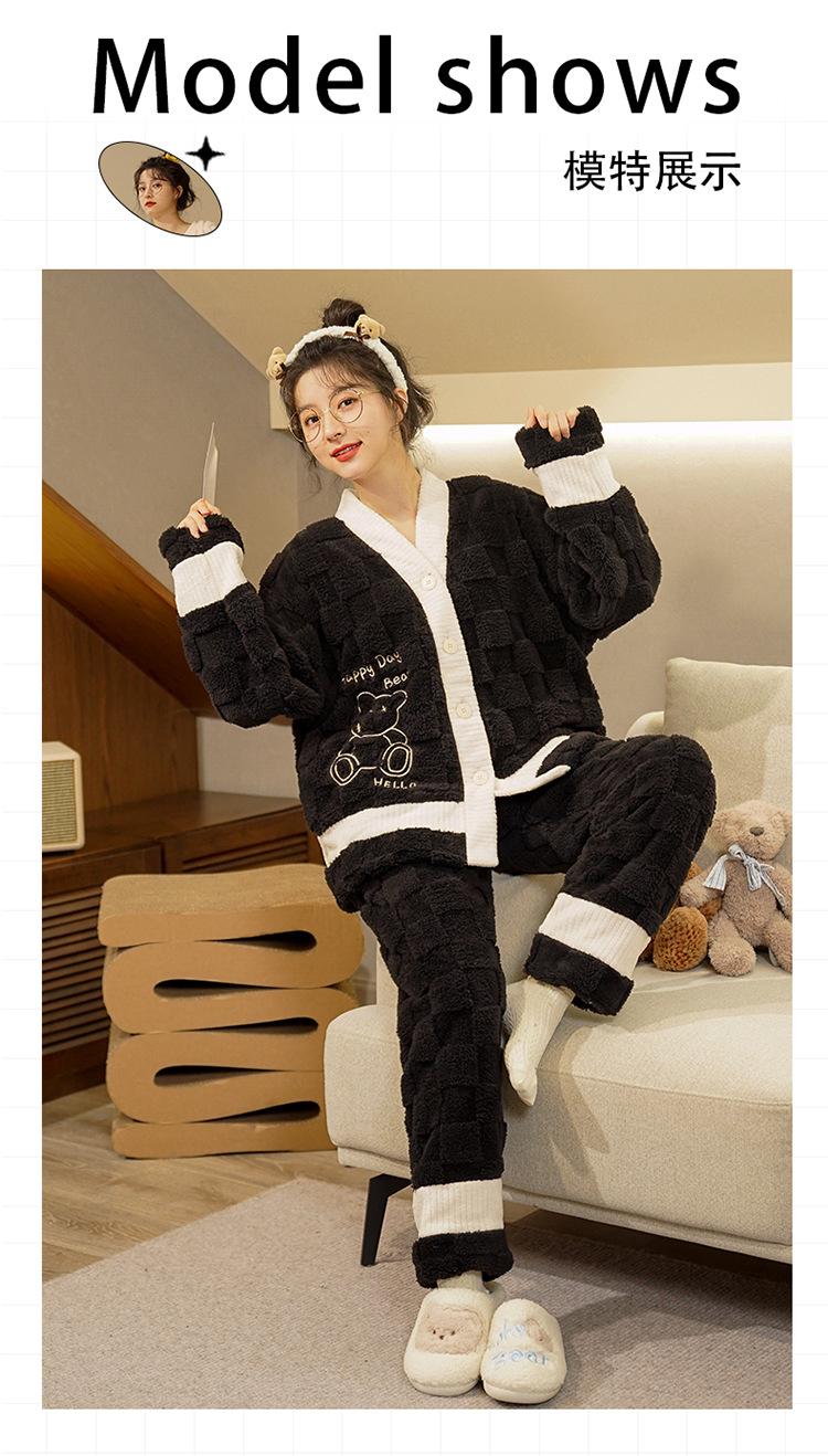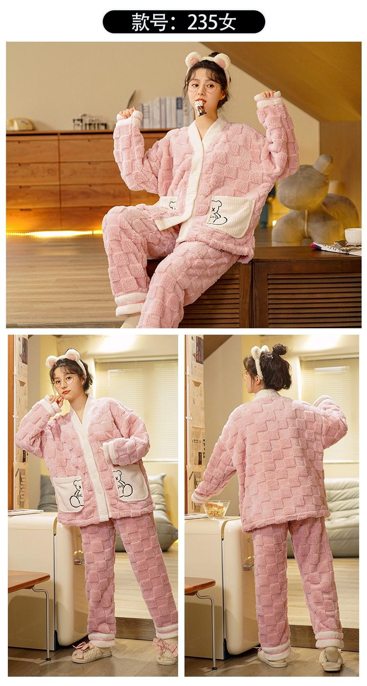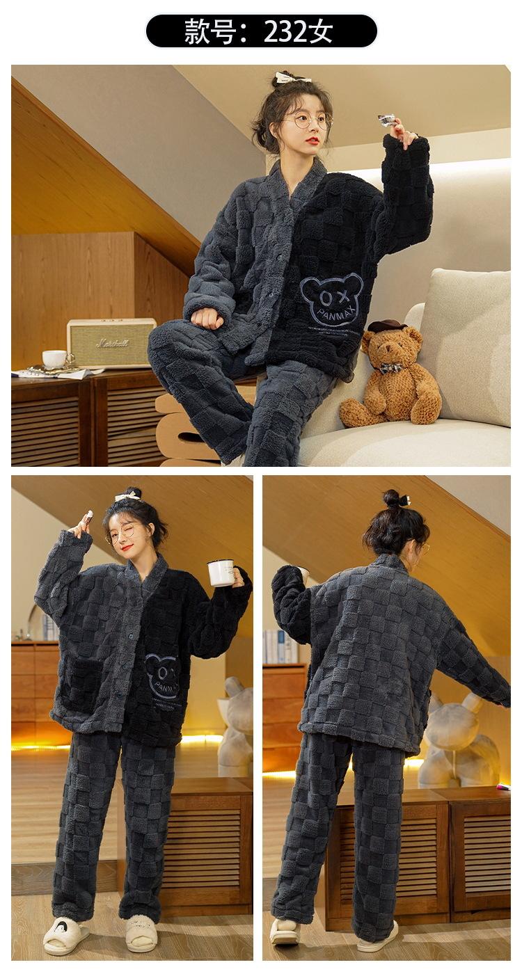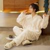 Pijama de lana coral para mujer, de invierno, de franela gruesa con forro polar, bonito traje de invierno, ropa para el hogar, otoño e invierno.