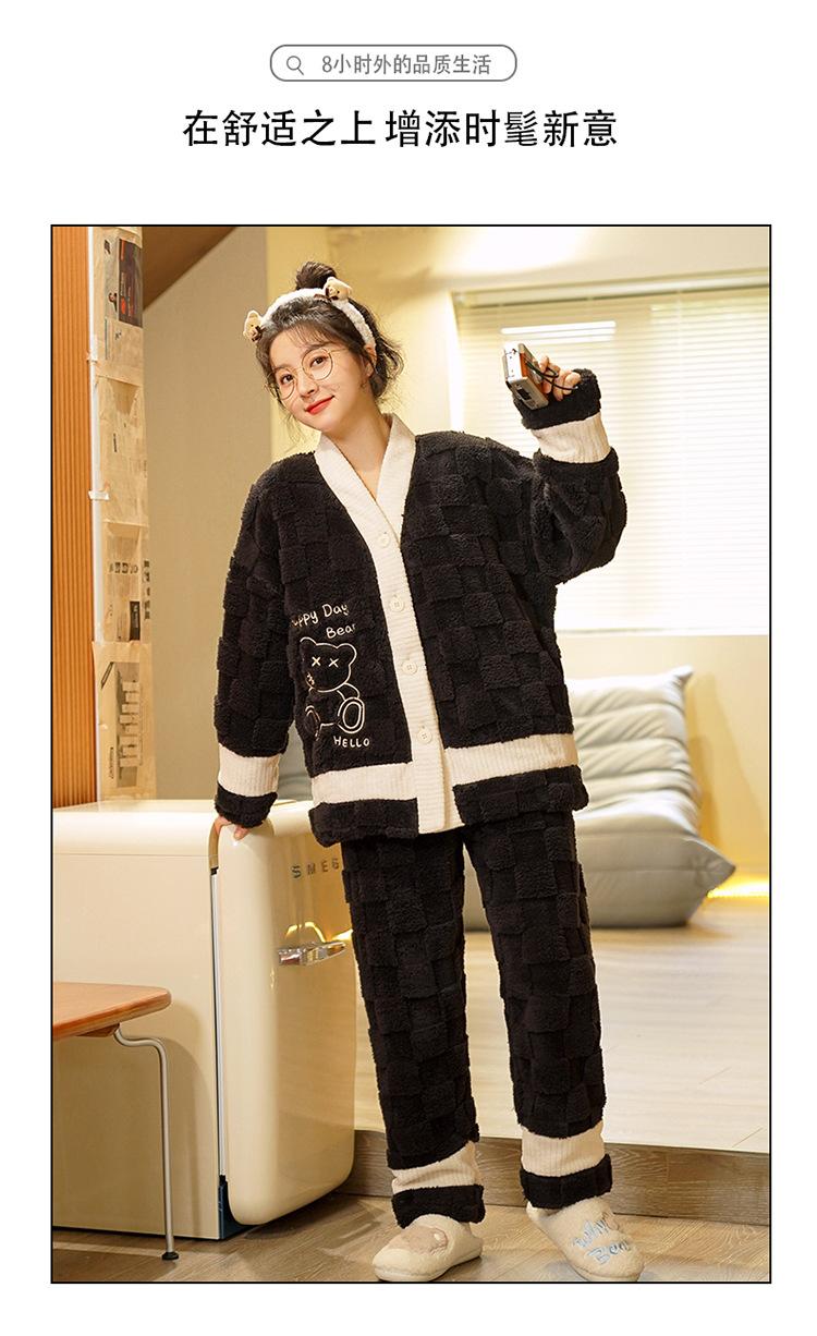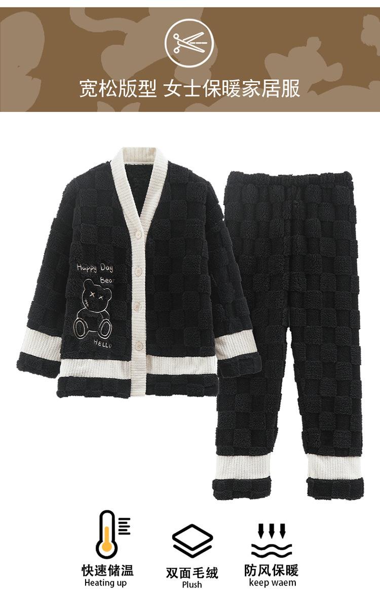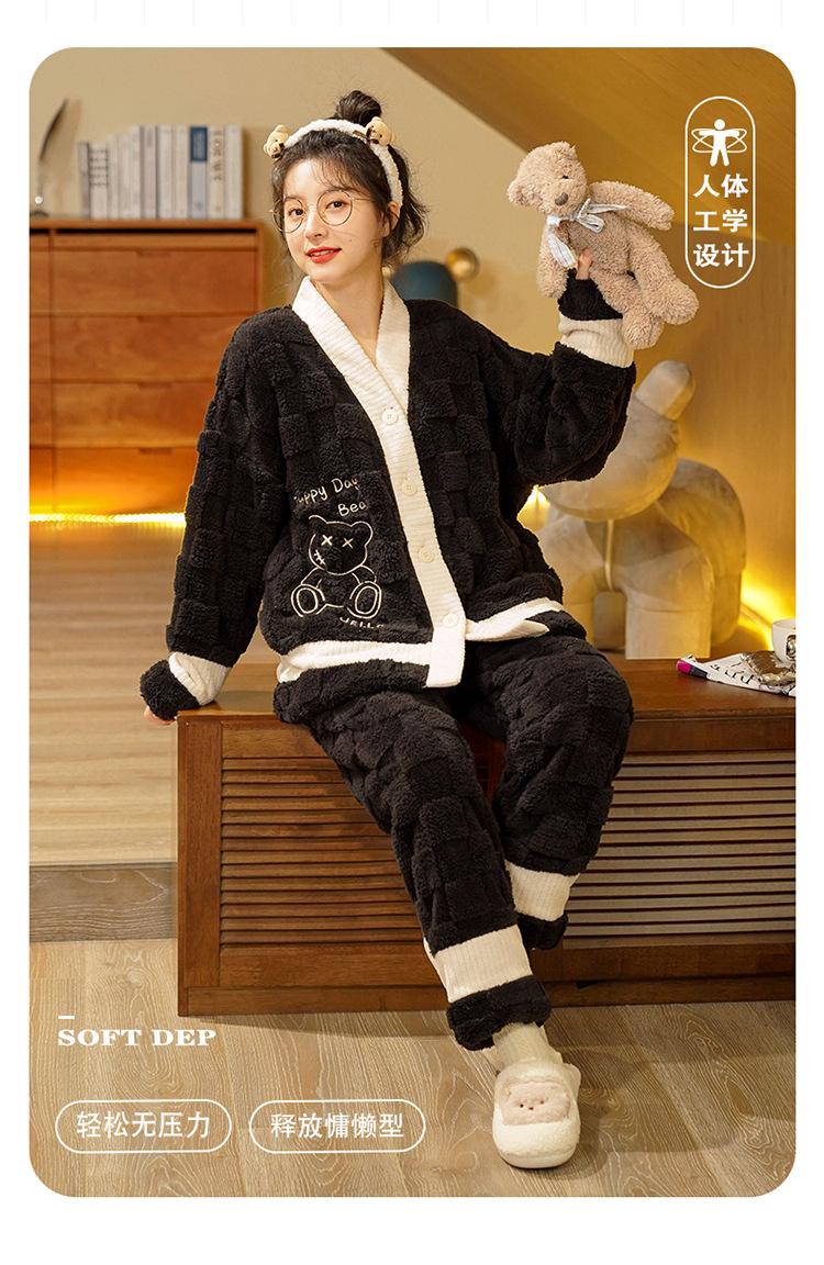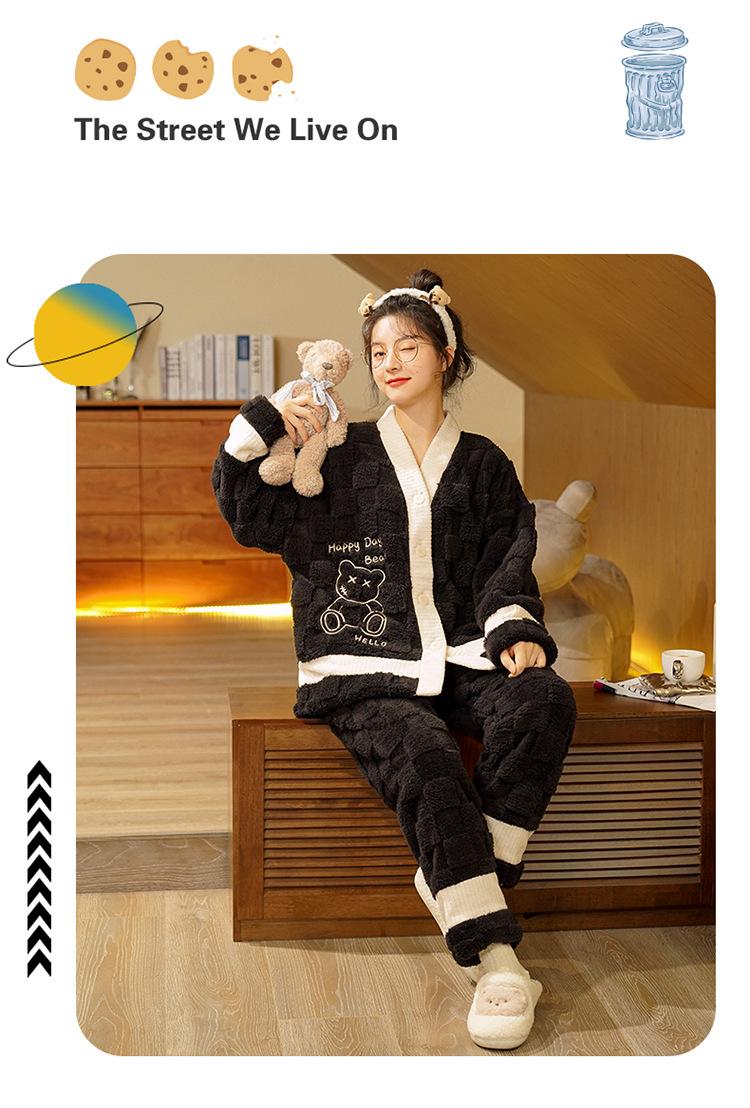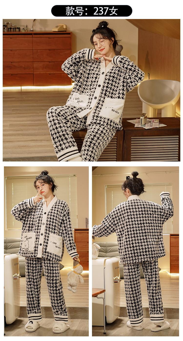 Pijama de lana coral para mujer, de invierno, de franela gruesa con forro polar, bonito traje de invierno, ropa para el hogar, otoño e invierno.