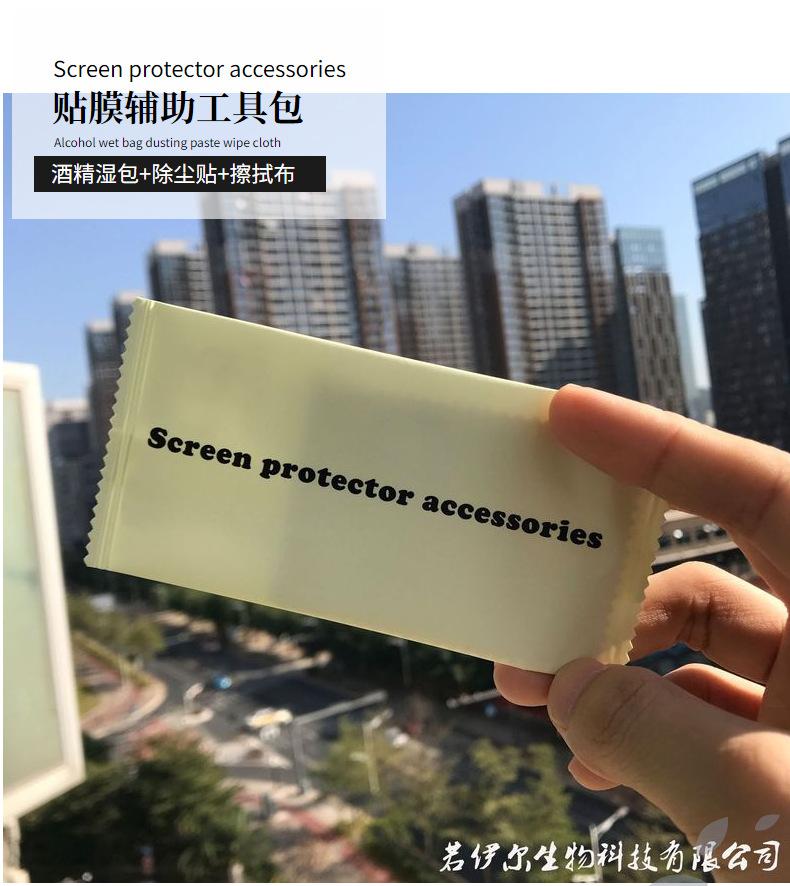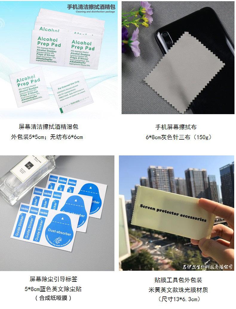 Kit de limpieza de película para teléfono móvil con paquete de alcohol y película templada al por mayor de fábrica, kit de herramientas de sellado de cuatro lados con película de perla blanca