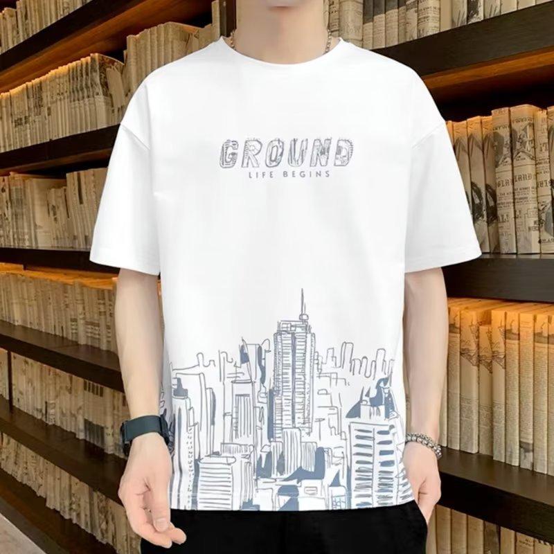 Camiseta de verano para hombre, nueva, de cuello redondo, a juego, de manga corta, informal, combinable y moderna.