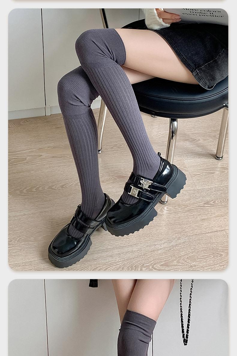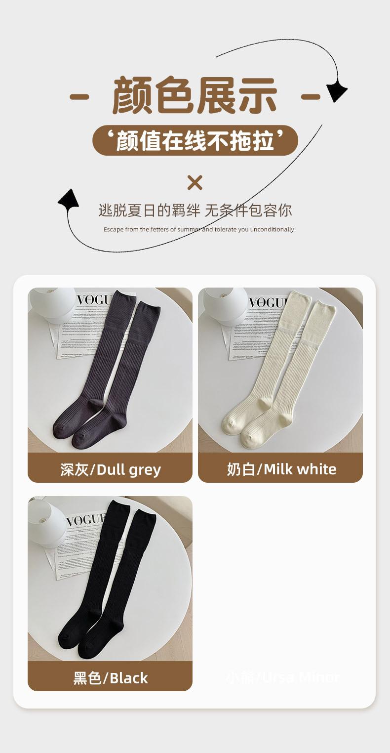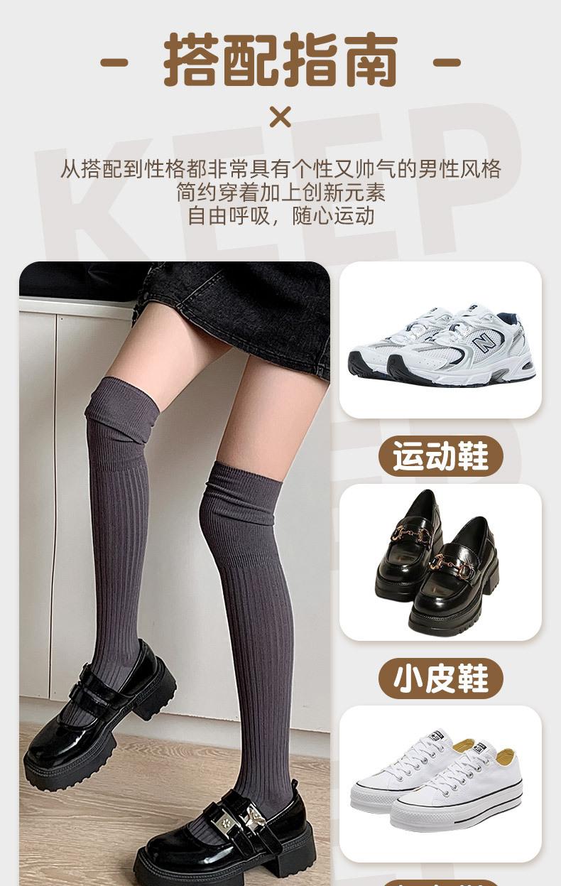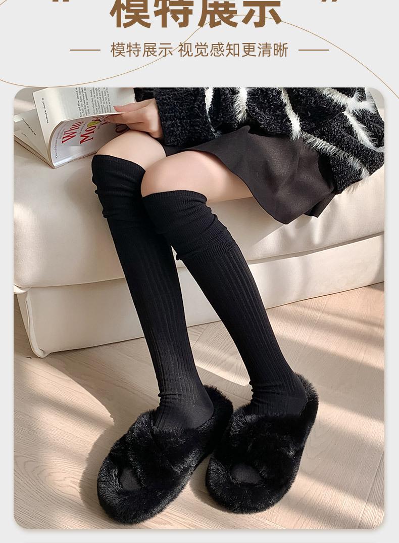 Calcetines Zhuji para mujer otoño e invierno cálidos calcetines por encima de la rodilla doble aguja estilo JK sexy color sólido cubre piernas calcetines de pelo largo al por mayor