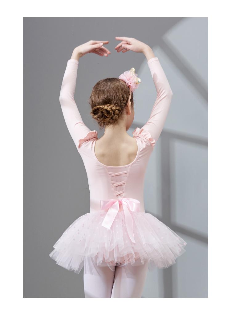 Vestido de Baile para Niños Vestido de Ballet de Manga Larga con Lazo en la Espalda para Primavera y Otoño Vestido de Práctica Nivel de Prueba Vestido de Danza China para Niños