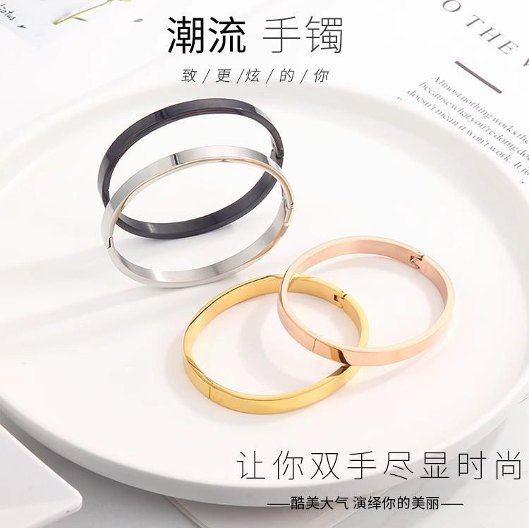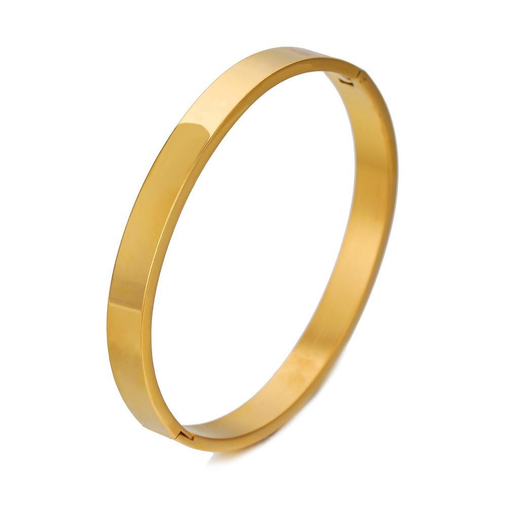 Pulsera de acero de titanio de 6 mm para hombres y mujeres, anillo liso simple, pulsera de acero inoxidable, nueva moda simple europea y americana, venta al por mayor, chapado en oro, moda