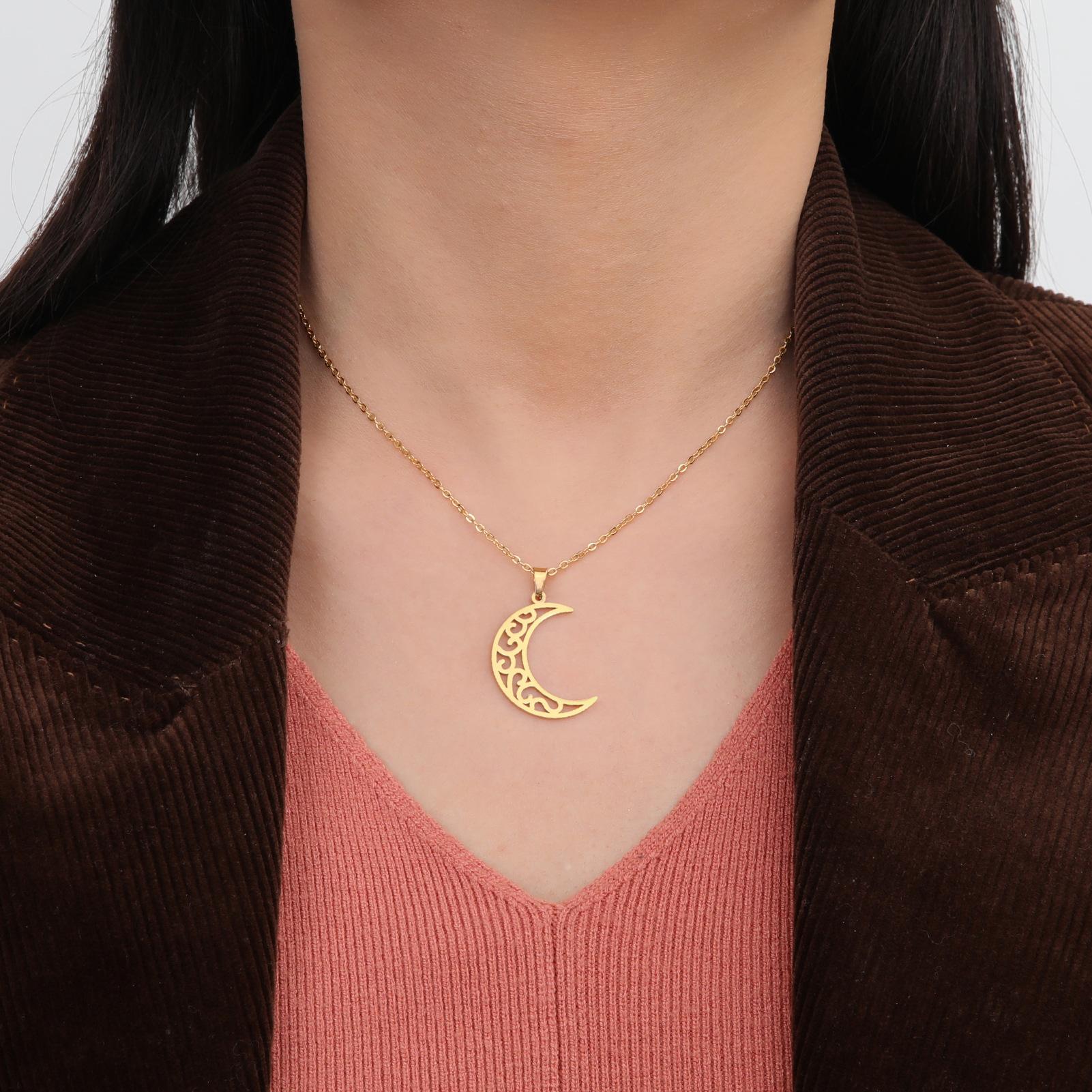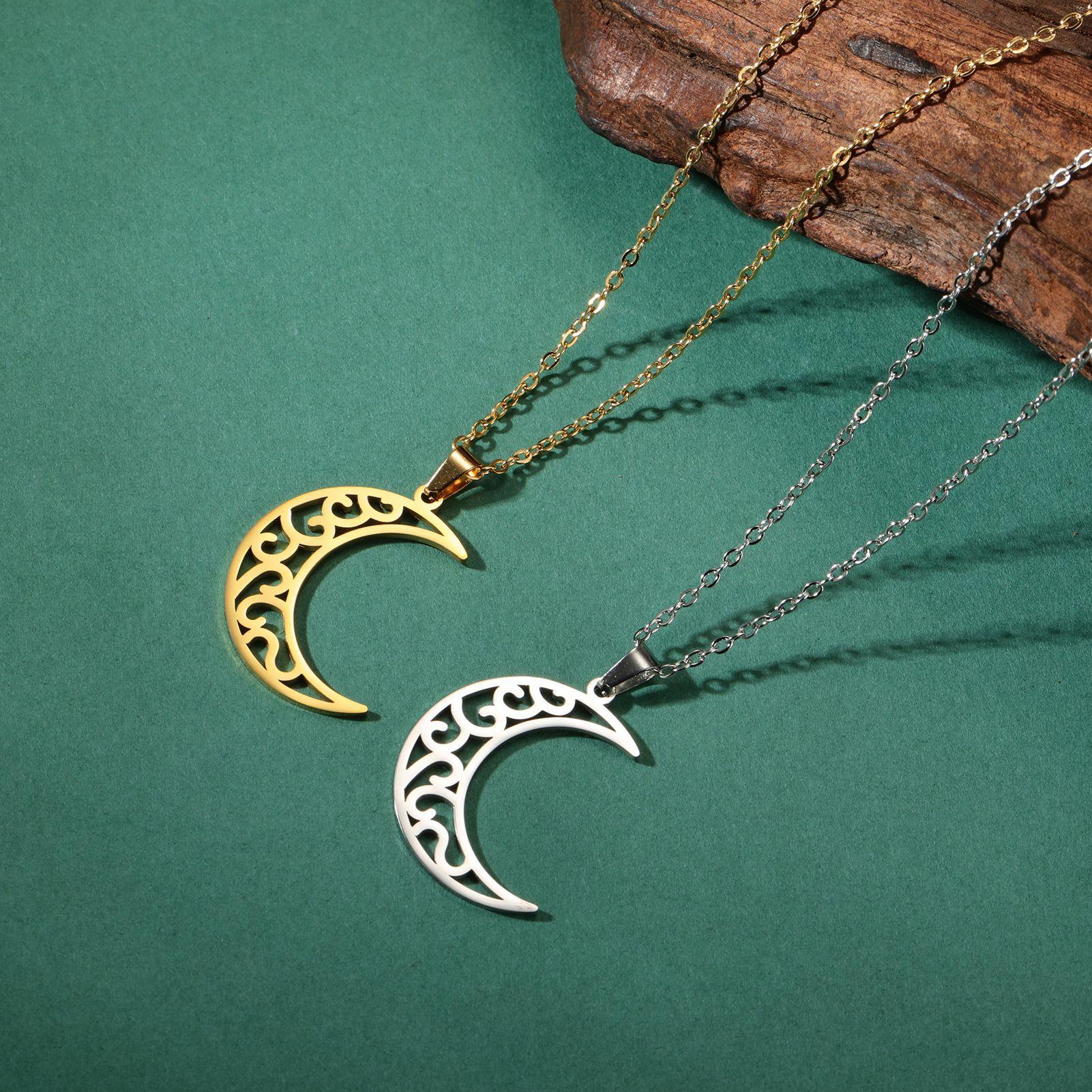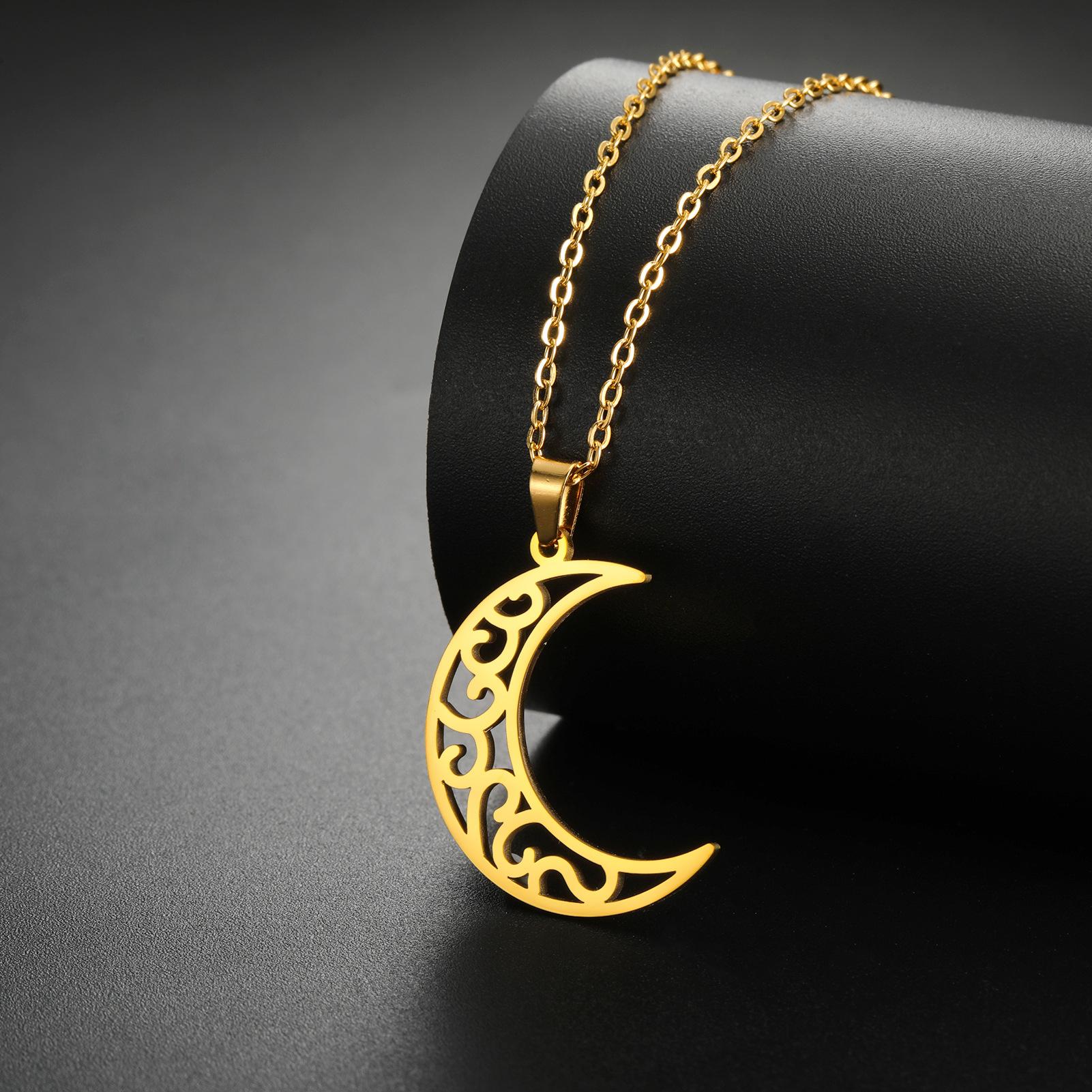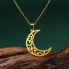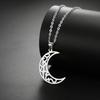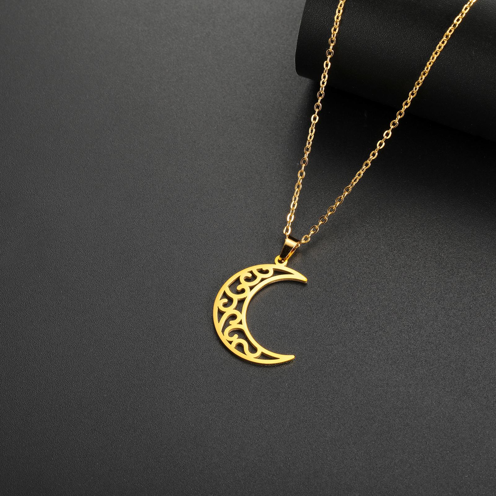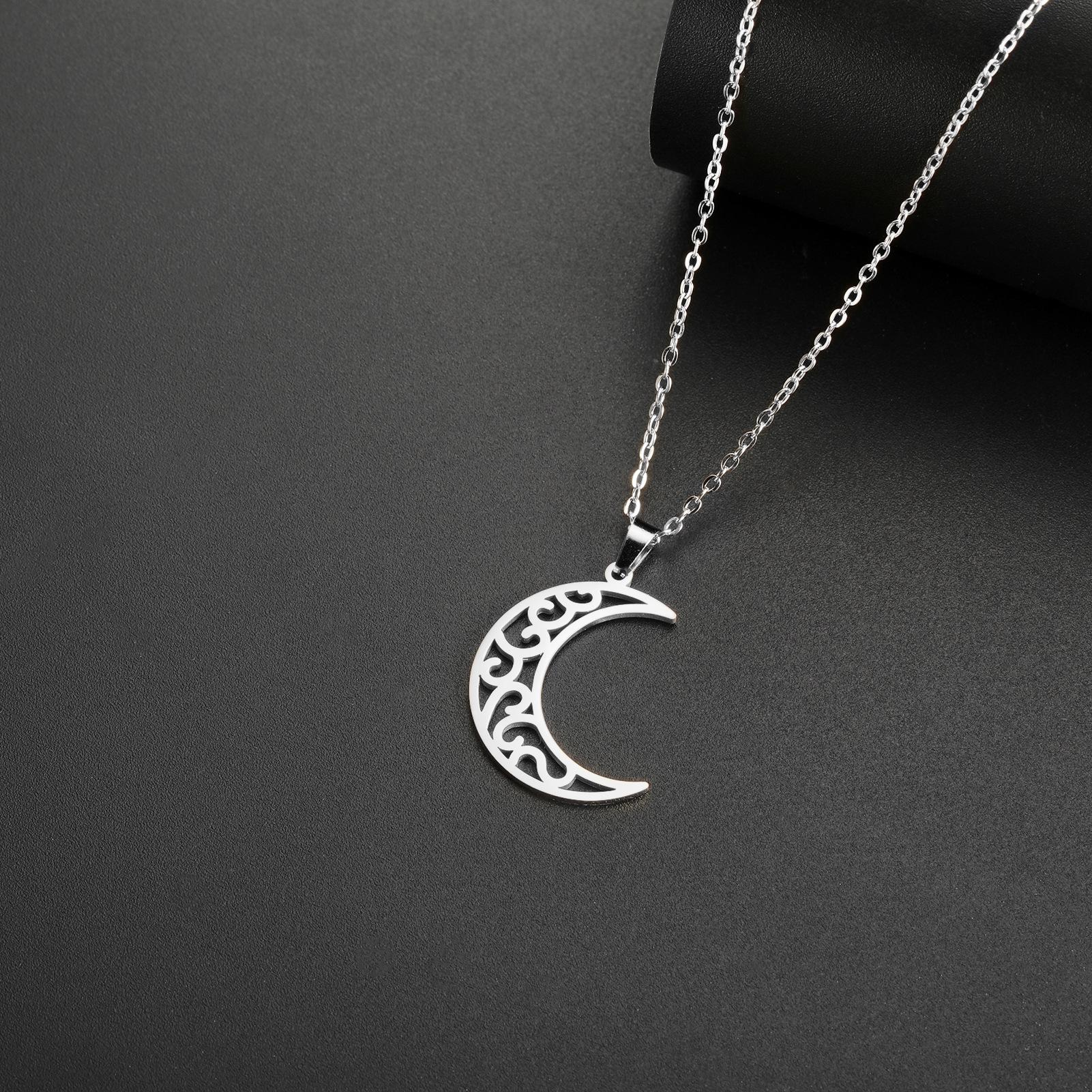 Ventas Directas de Fábrica Collar Más Vendido Transfronterizo Acero Titanio Corte Patrón Calado Colgante Luna Collar Simple de Acero Inoxidable
