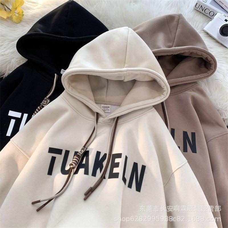 Suéter de talla grande nuevo estilo coreano, suéter de mujer, otoño e invierno, suelto, grande, informal, ropa de mujer, suéter con capucha forrado de polar, abrigo