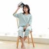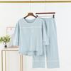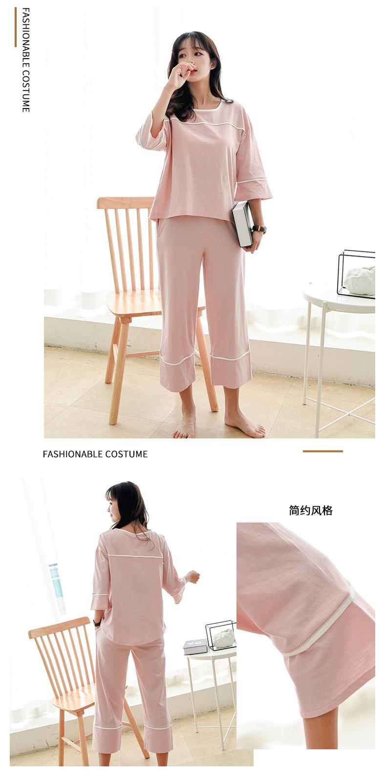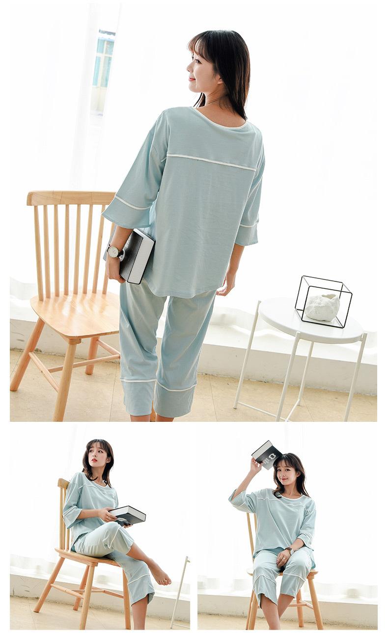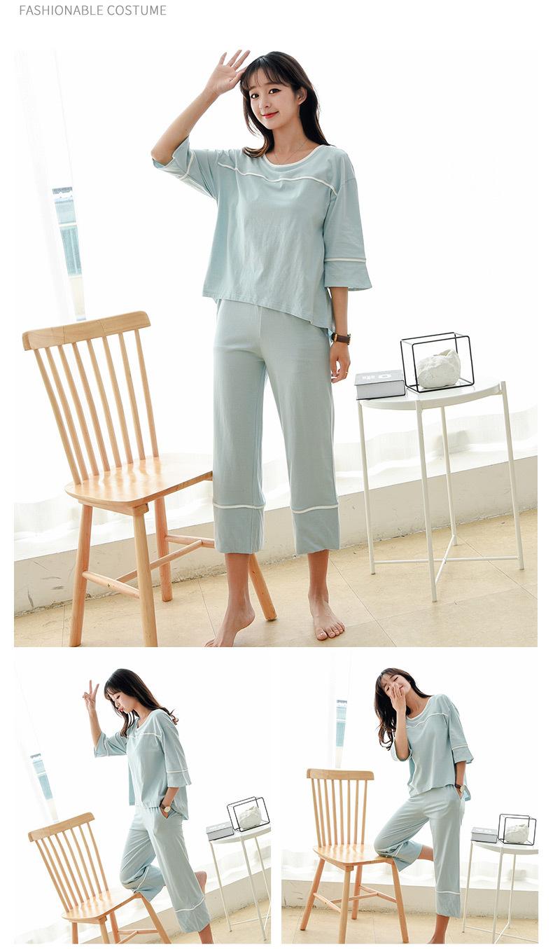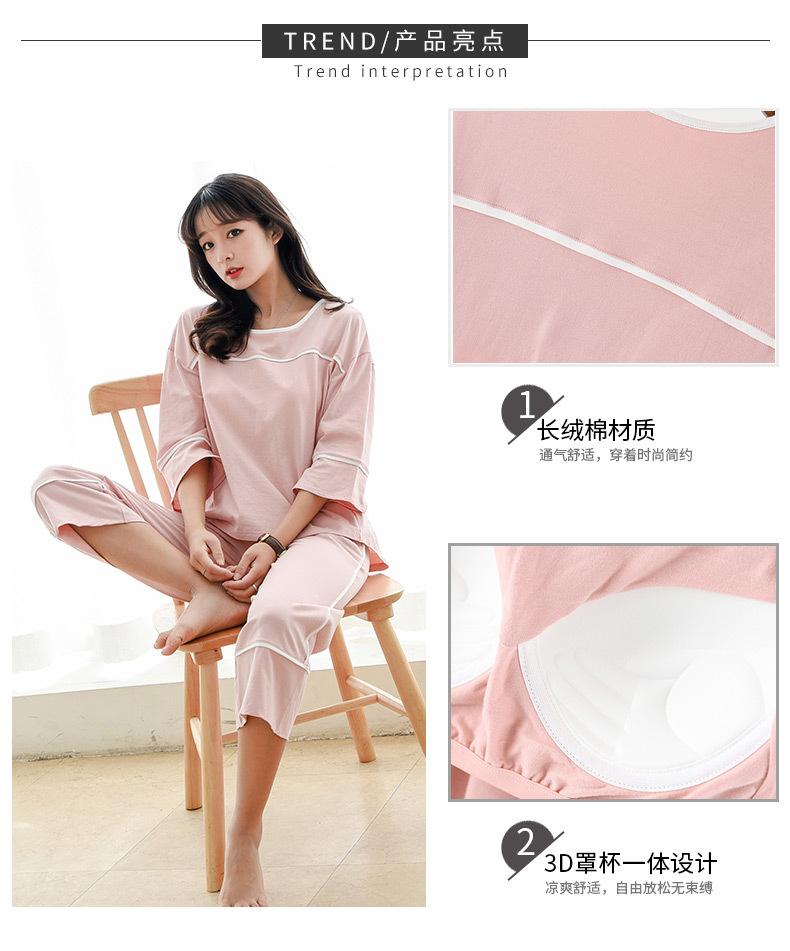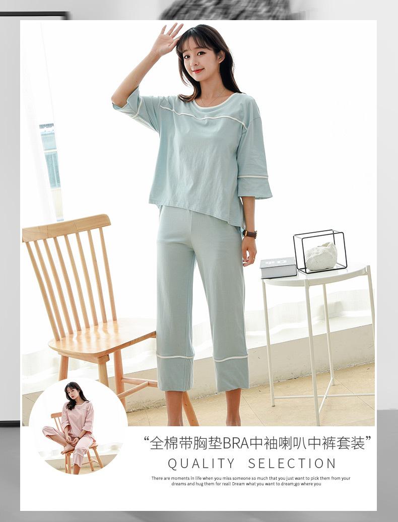 Algodón Puro Francés con Almohadillas en el Busto, Camiseta Holgada de Manga Tres Cuartos, Pantalones Cortos Acampanados, Set de Ropa para el Hogar Todo en Uno con Sujetador de Moda