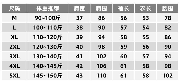 M, L, XL, 2XL, 3XL, 4XL, 5XL