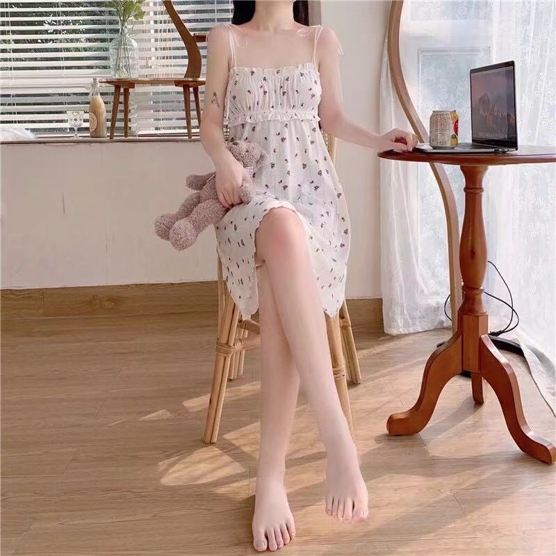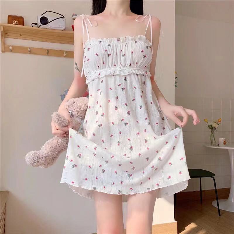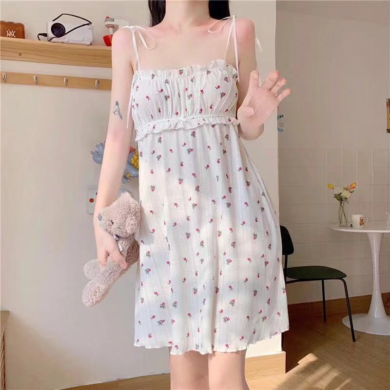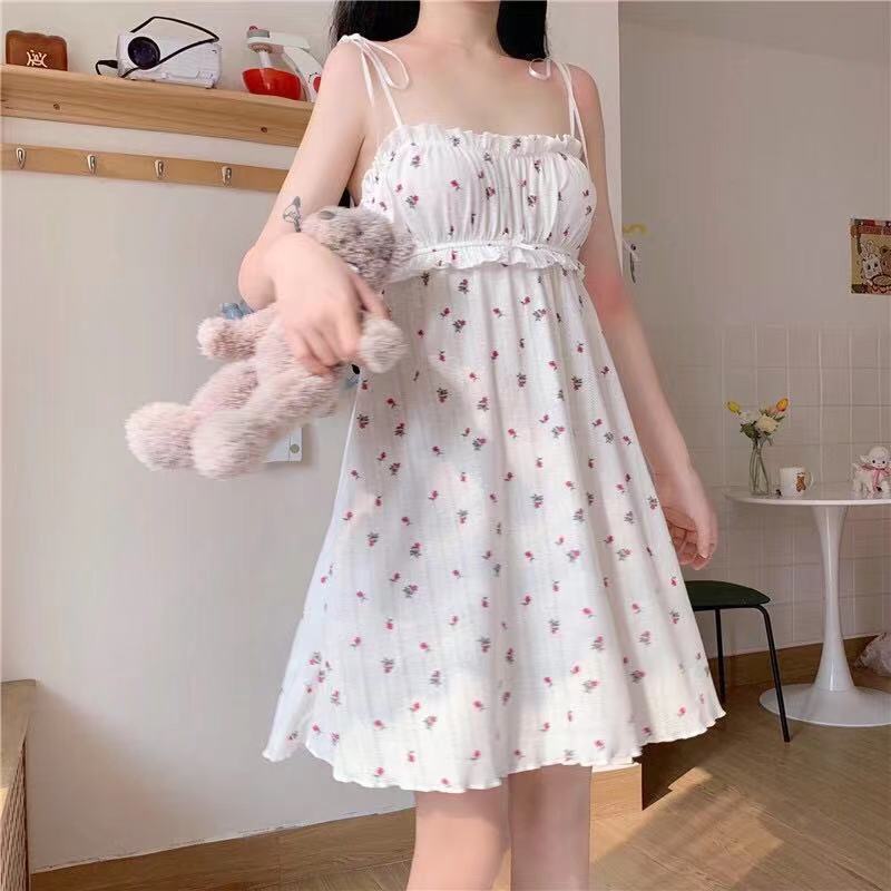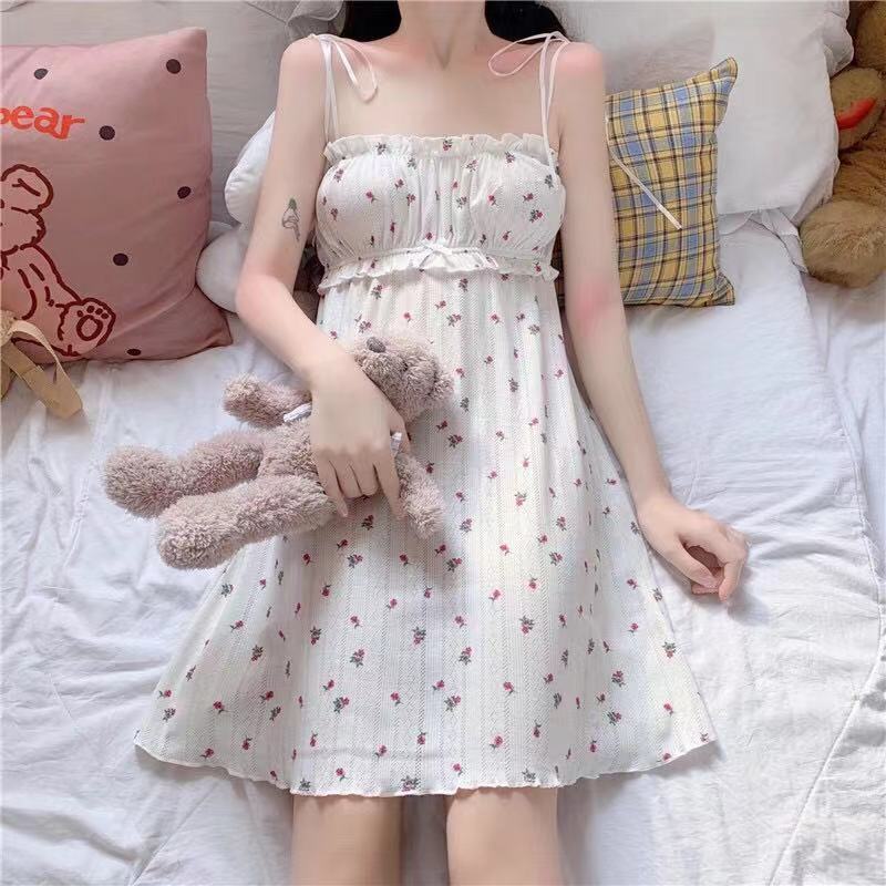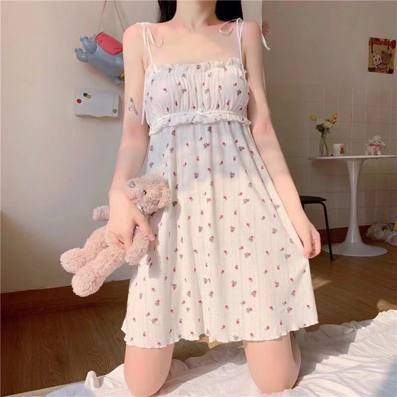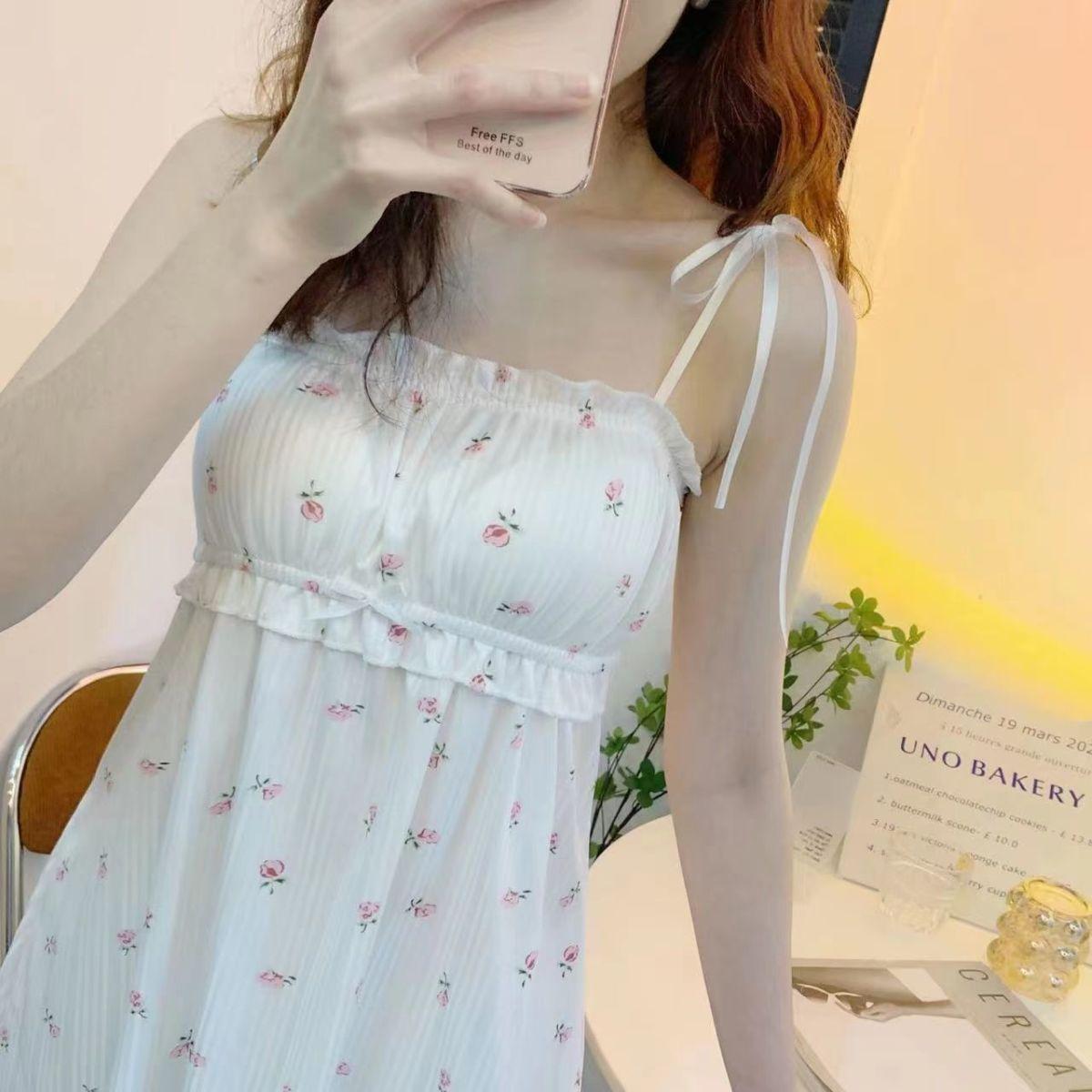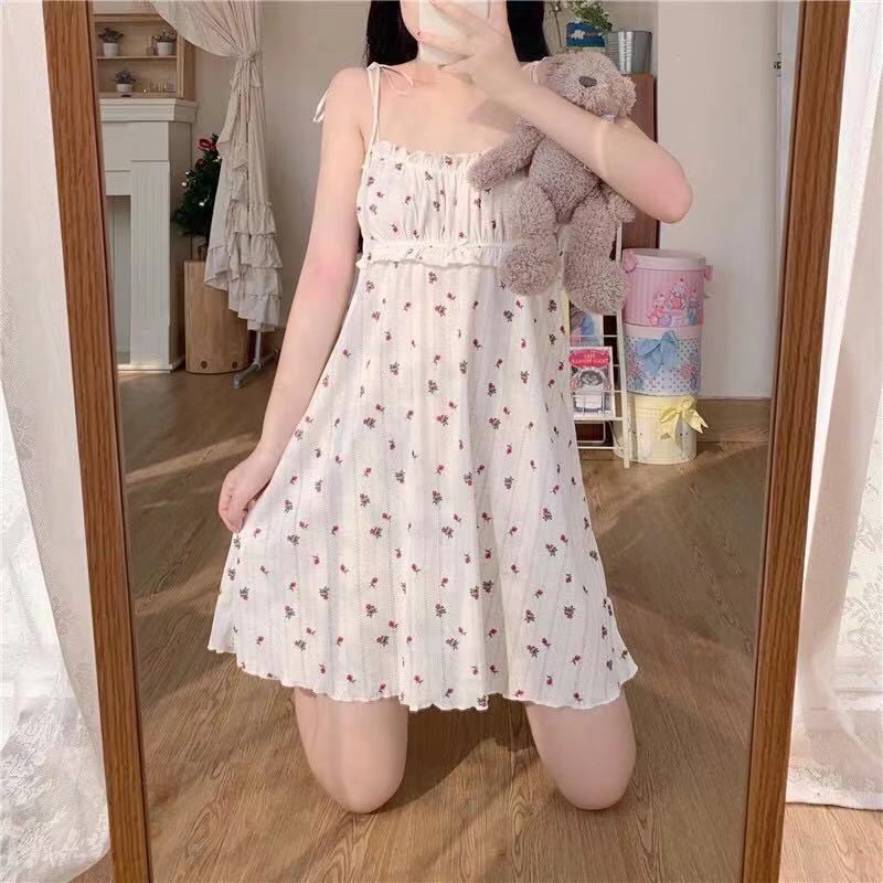Camisón de Tirantes para Mujer 2023 Verano Nuevo Estilo Coreano Casual Lindo Vestido Japonés Línea A Ropa para el Hogar Camisón Floral