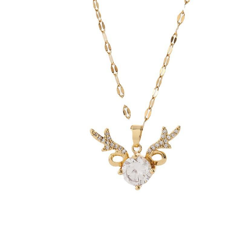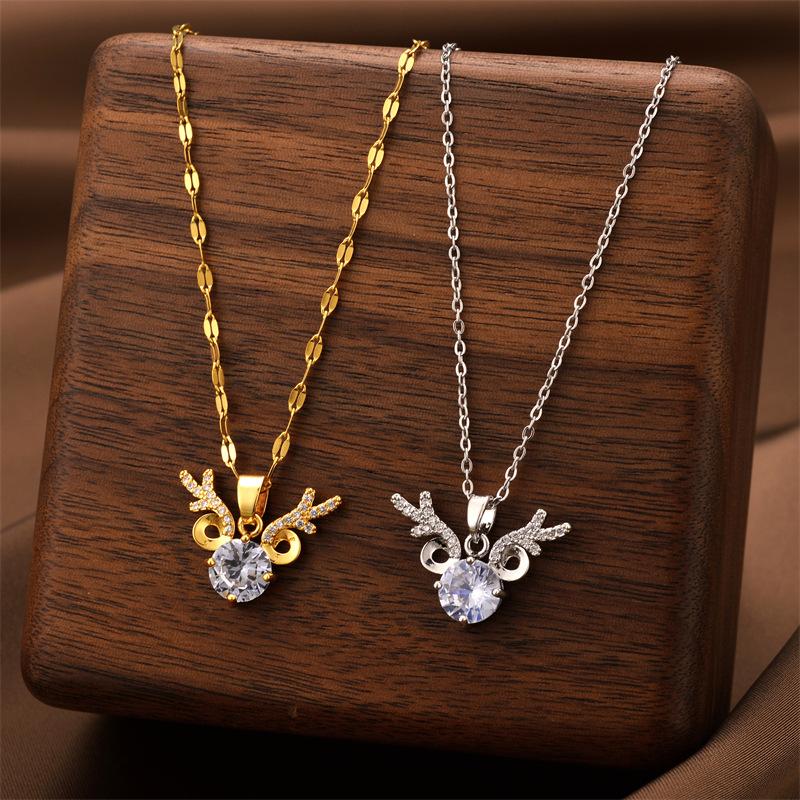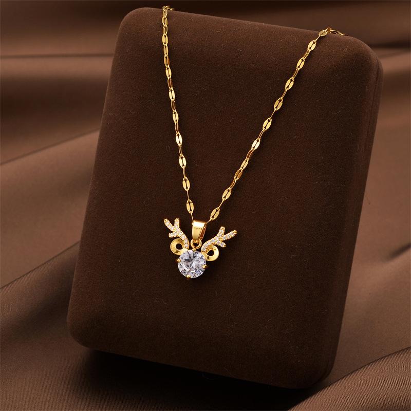 Collar de acero de titanio con colgante de alce pequeño para mujer, diseño de nicho, cadena de clavícula con sentido femenino, joyería de estilo étnico al por mayor