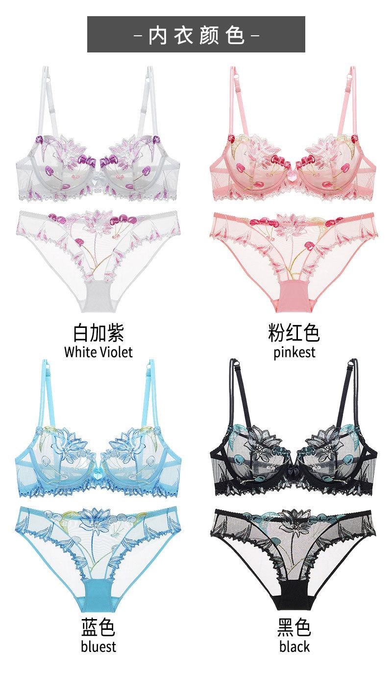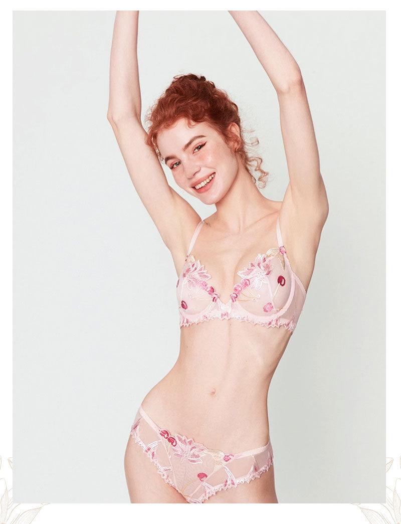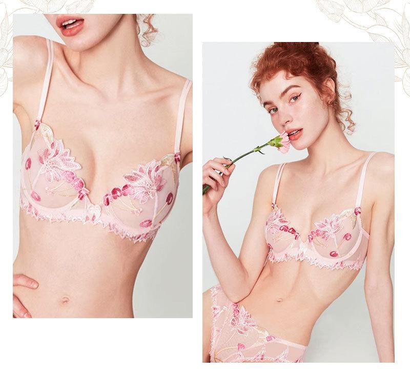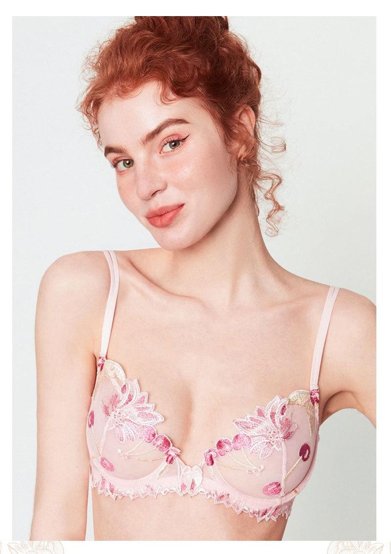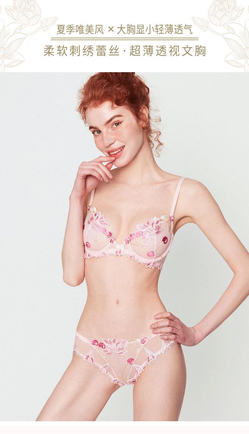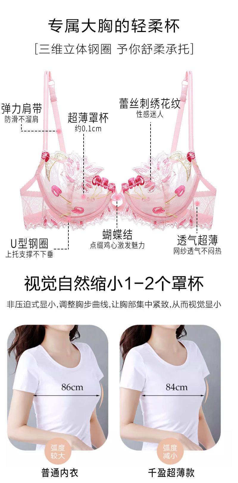Conjunto de ropa interior ultrafina de verano con sujetador de encaje bordado sexy, deseo puro, pechos grandes que muestran un pequeño sujetador antiflacidez |