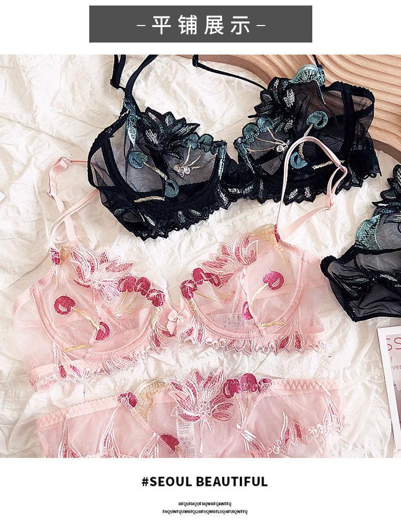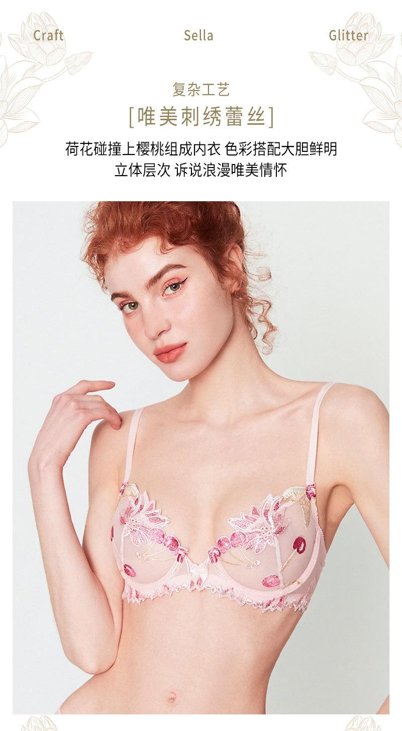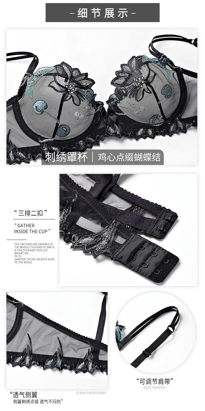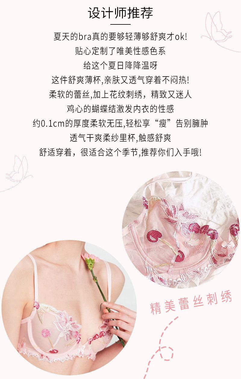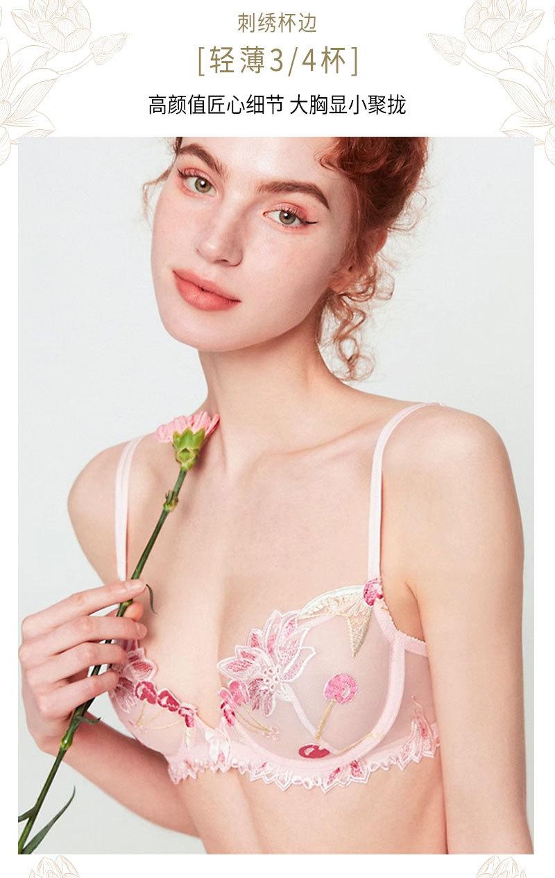 Conjunto de ropa interior ultrafina de verano con sujetador de encaje bordado sexy, deseo puro, pechos grandes que muestran un pequeño sujetador antiflacidez |