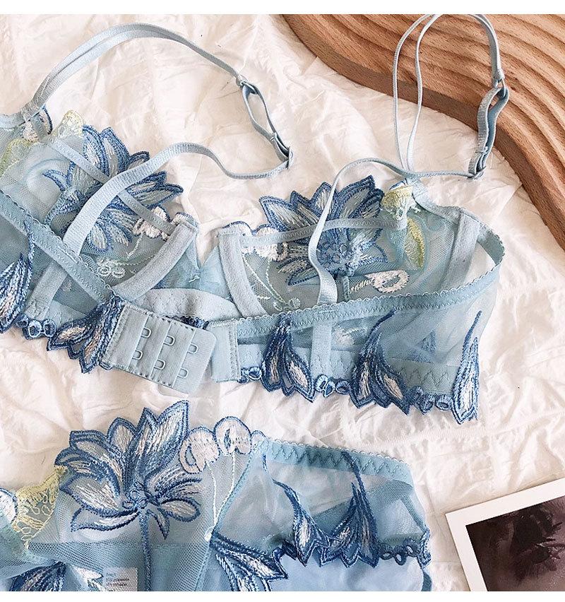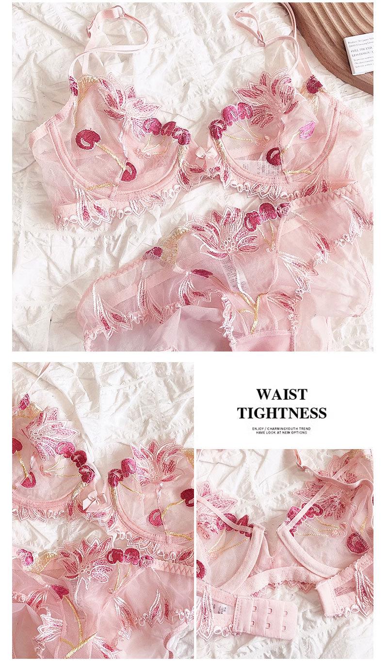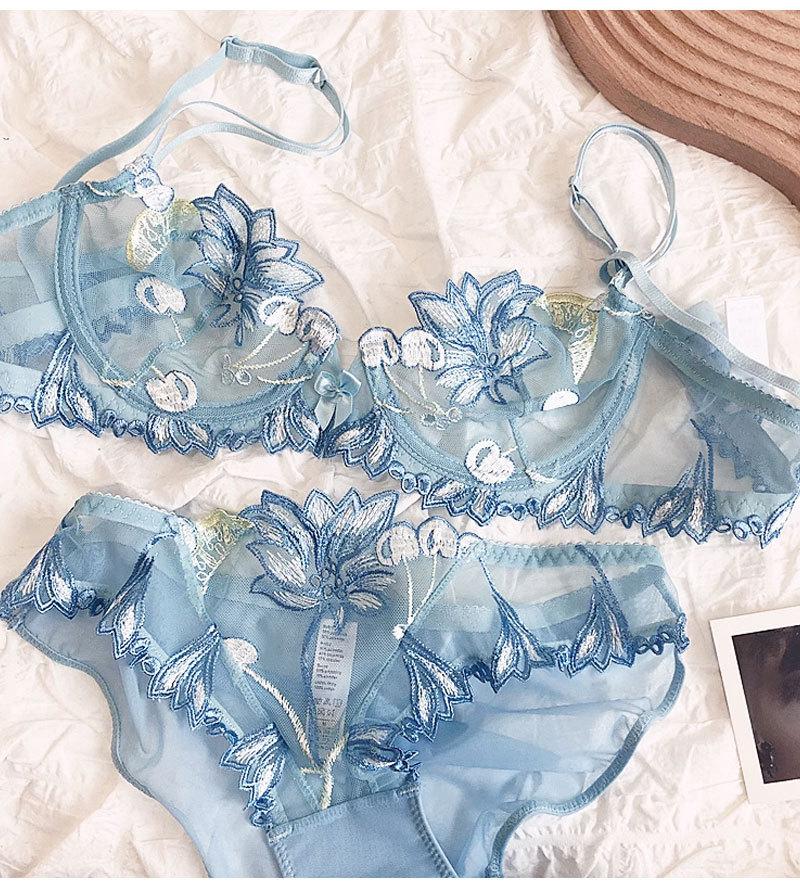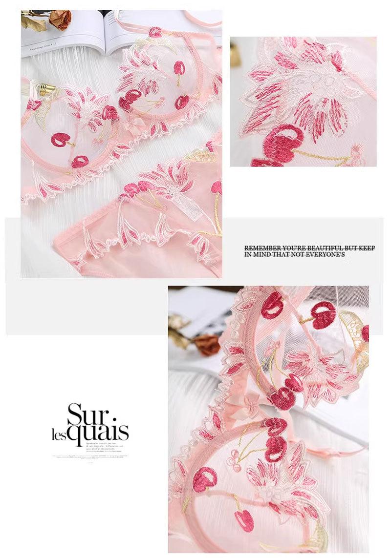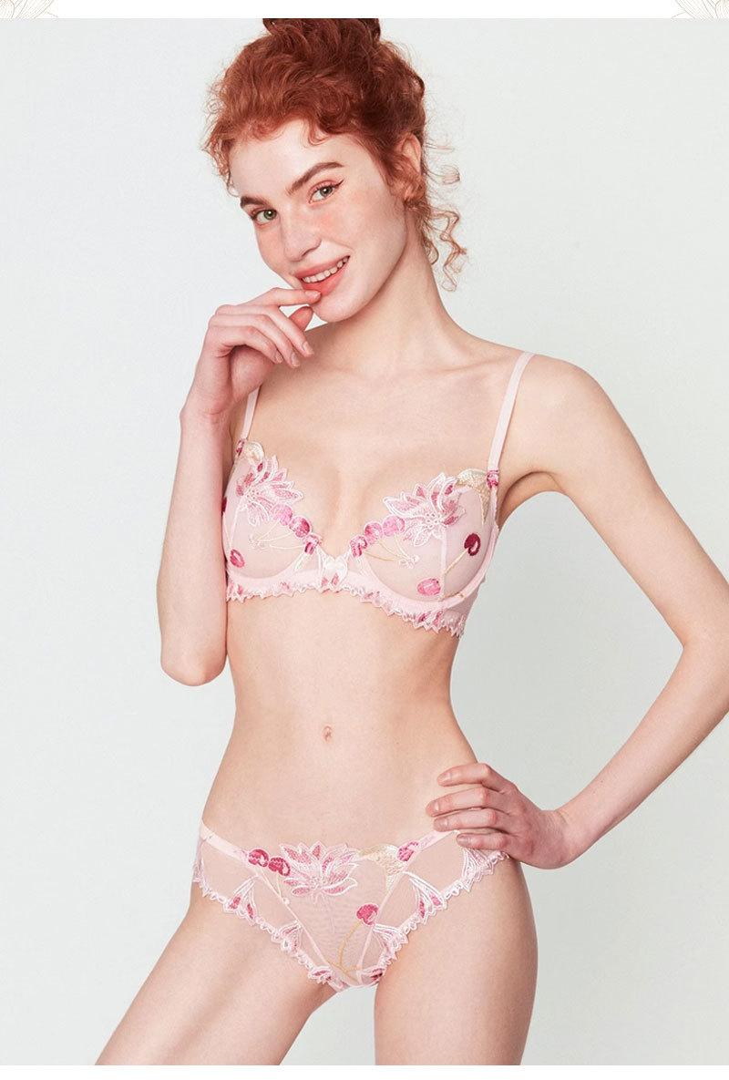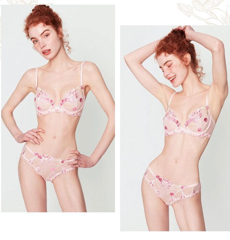Conjunto de ropa interior ultrafina de verano con sujetador de encaje bordado sexy, deseo puro, pechos grandes que muestran un pequeño sujetador antiflacidez |