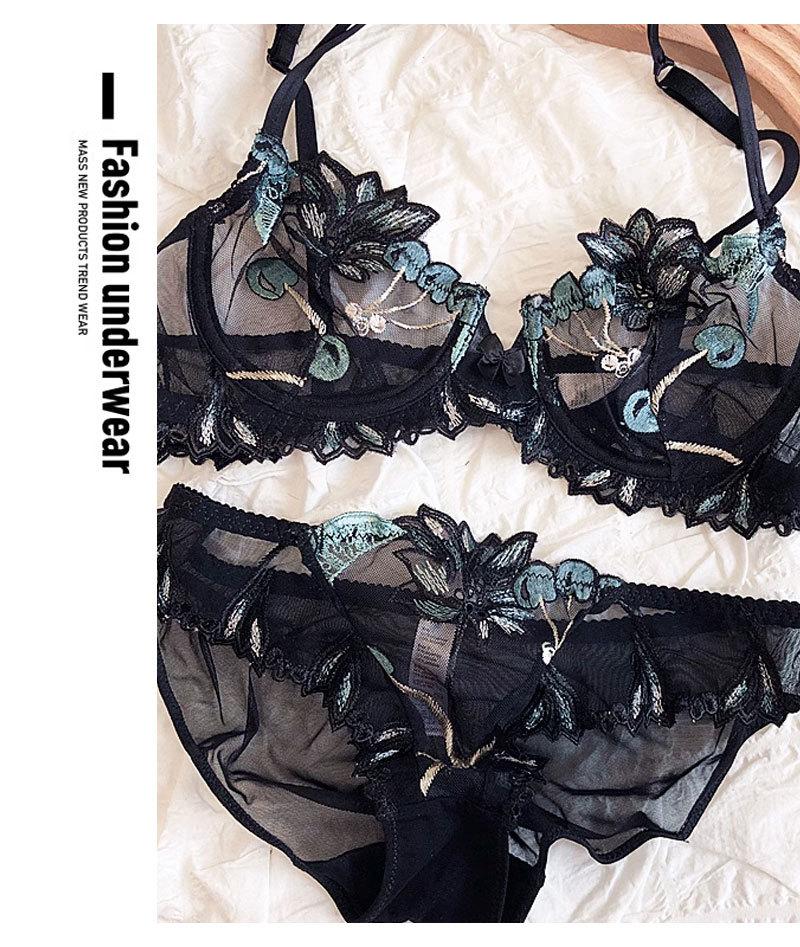 Conjunto de ropa interior de encaje sexy, ropa interior fina de pecho grande y pequeña para mujer, sujetador transpirable Pure Desire, conjunto de sujetador ultrafino |