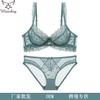 Conjunto de sujetador de encaje sexy francés con copa de cristal fruncida fina y hueca, ropa interior femenina de estilo Pure Desire con borde cruzado |