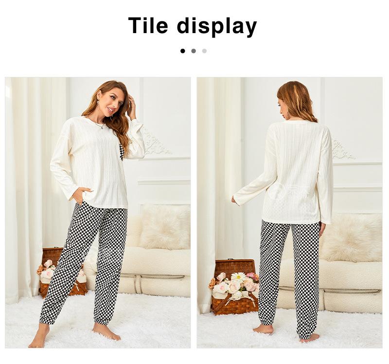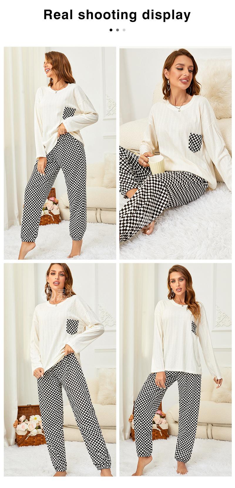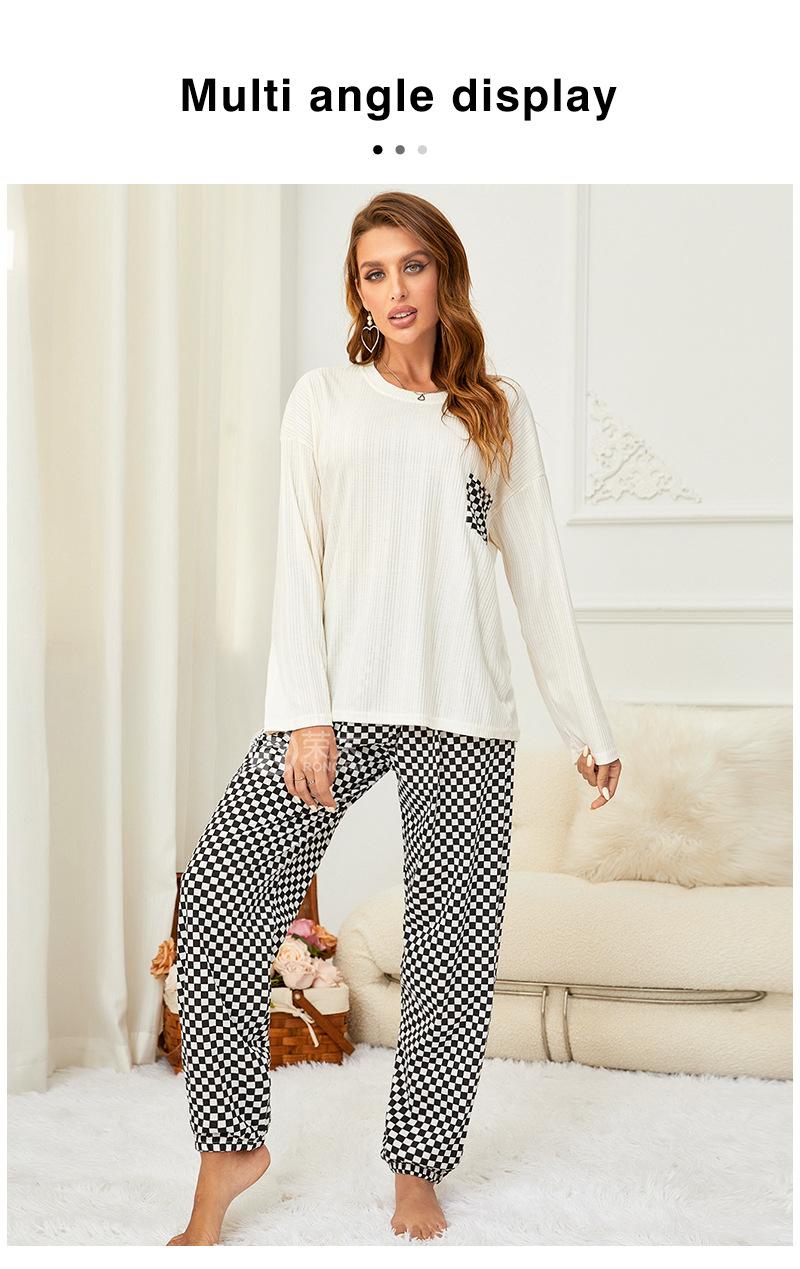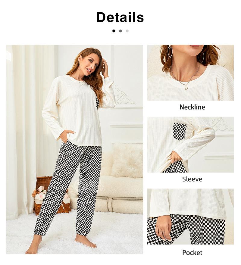 Pijamas de Mujer Primavera y Otoño 2023 Nuevo Manga Larga Algodón Delgado Cuadros para Niña Ropa de Casa Traje de Dos Piezas