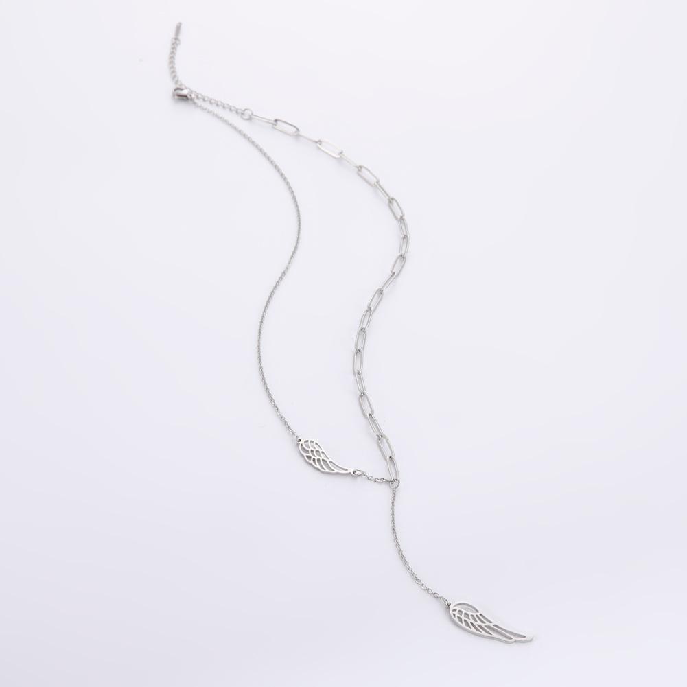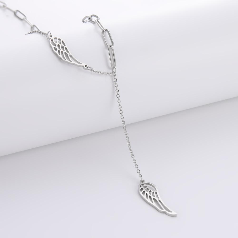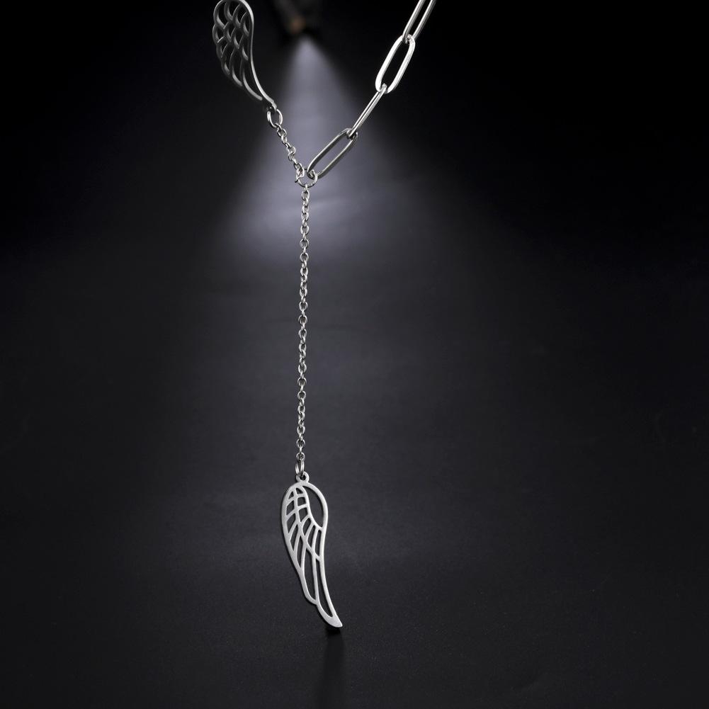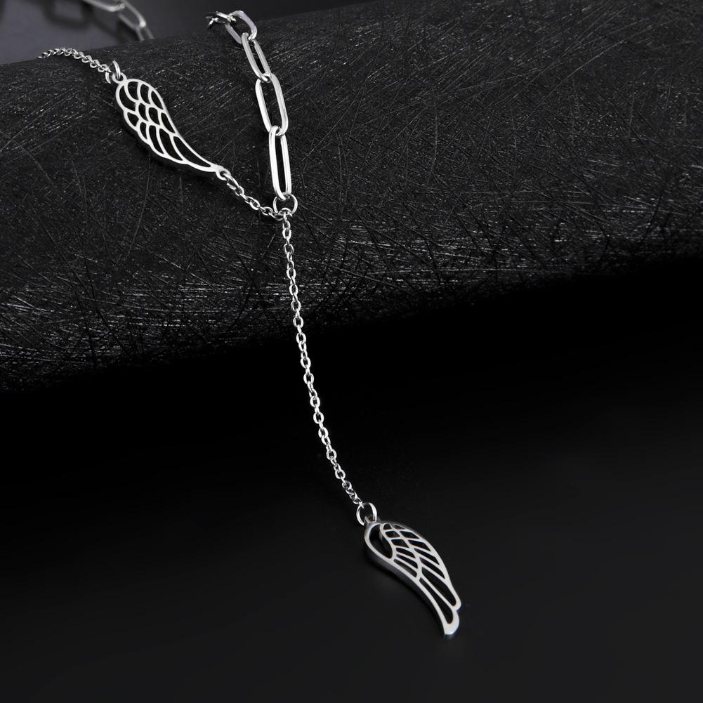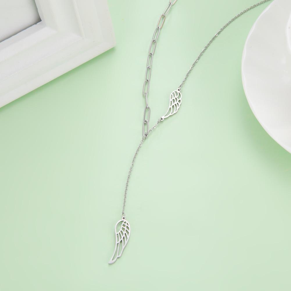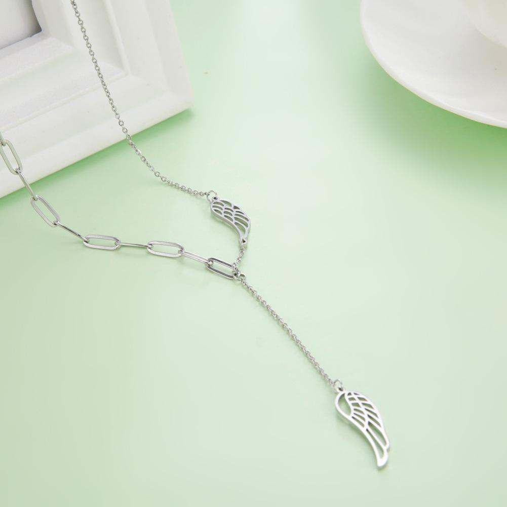 Europa y Estados Unidos tendencia de moda simple transfronteriza disparo callejero versátil colgante de pluma de acero de titanio recto cadena clavicular collar de acero inoxidable