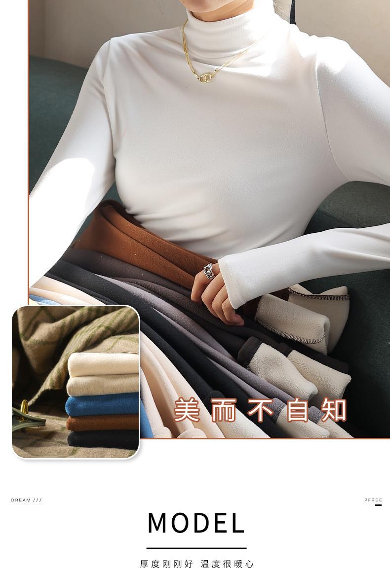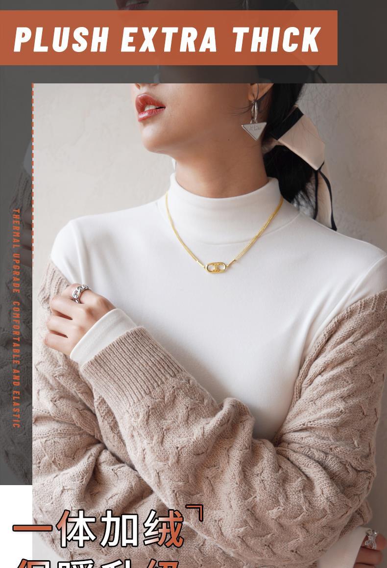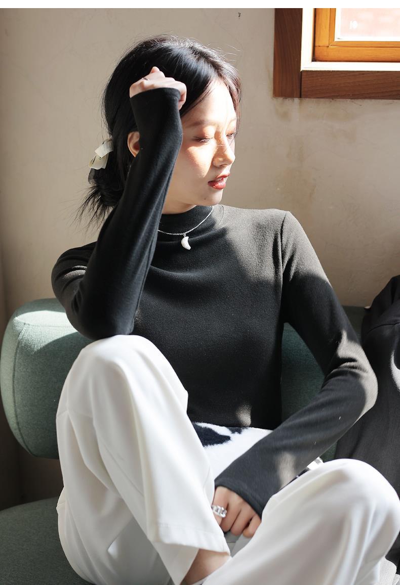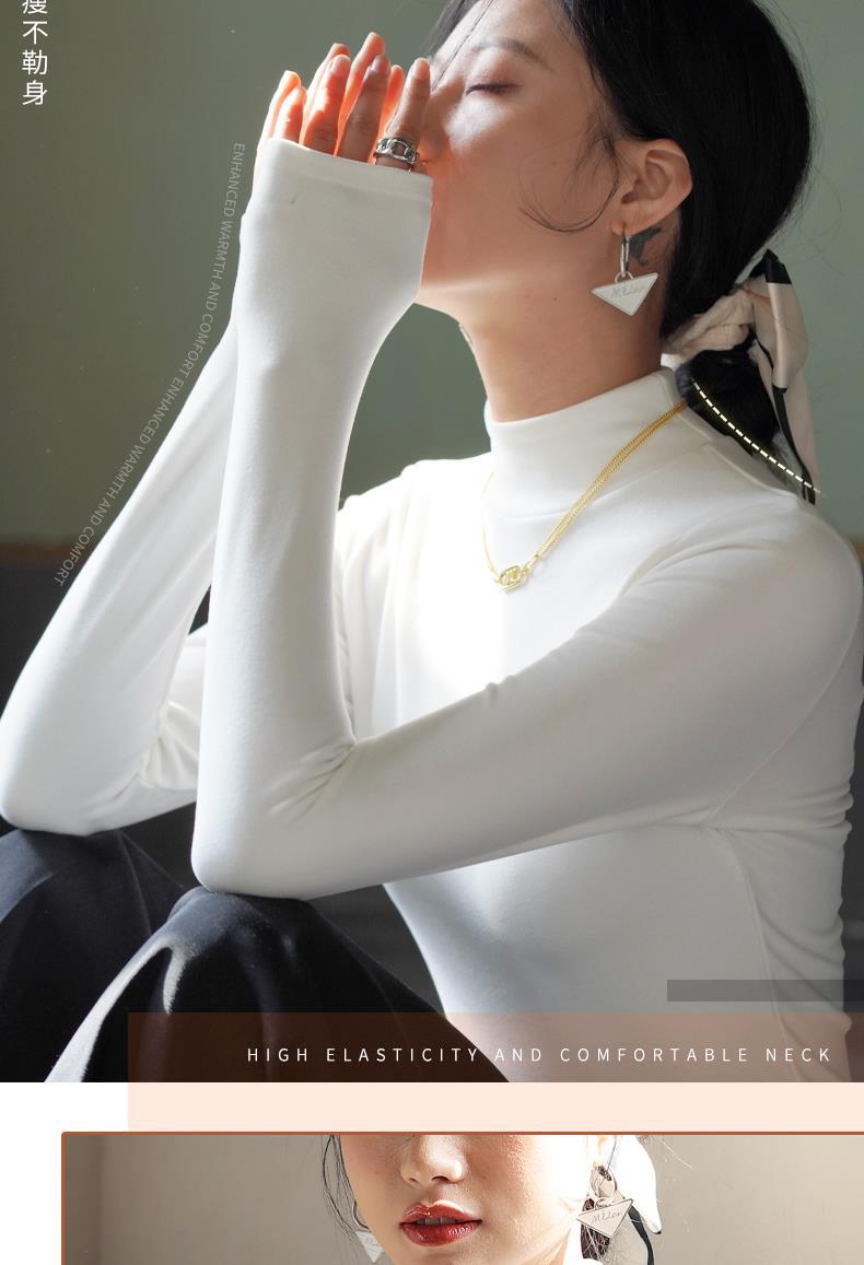 Camiseta Básica de Terciopelo Alemán de Doble Cara con Cuello Medio Alto para Mujer para Otoño e Invierno Cálida con Forro Polar Gruesa Blanco y Negro Nuevo Estilo 2024 Estilo Extranjero Ropa Interior