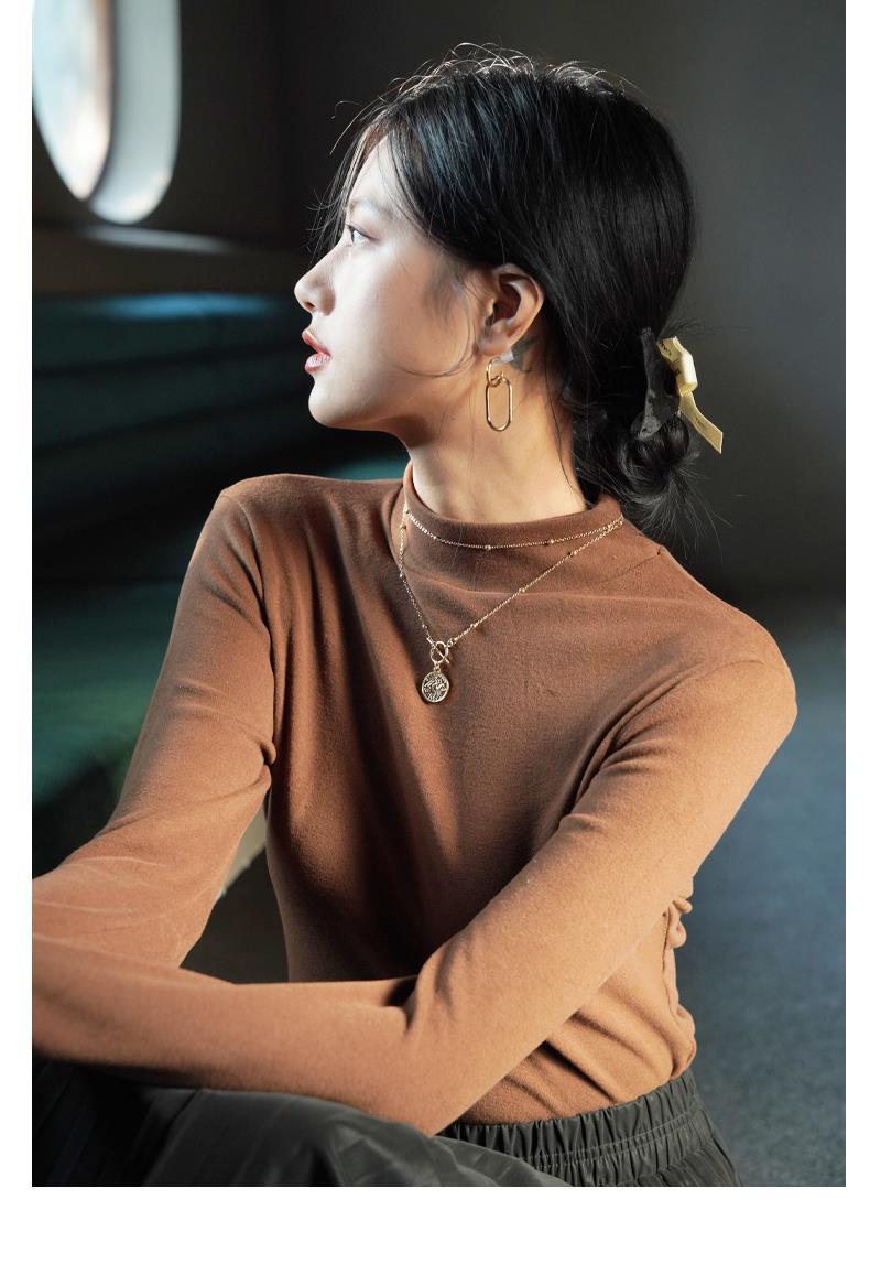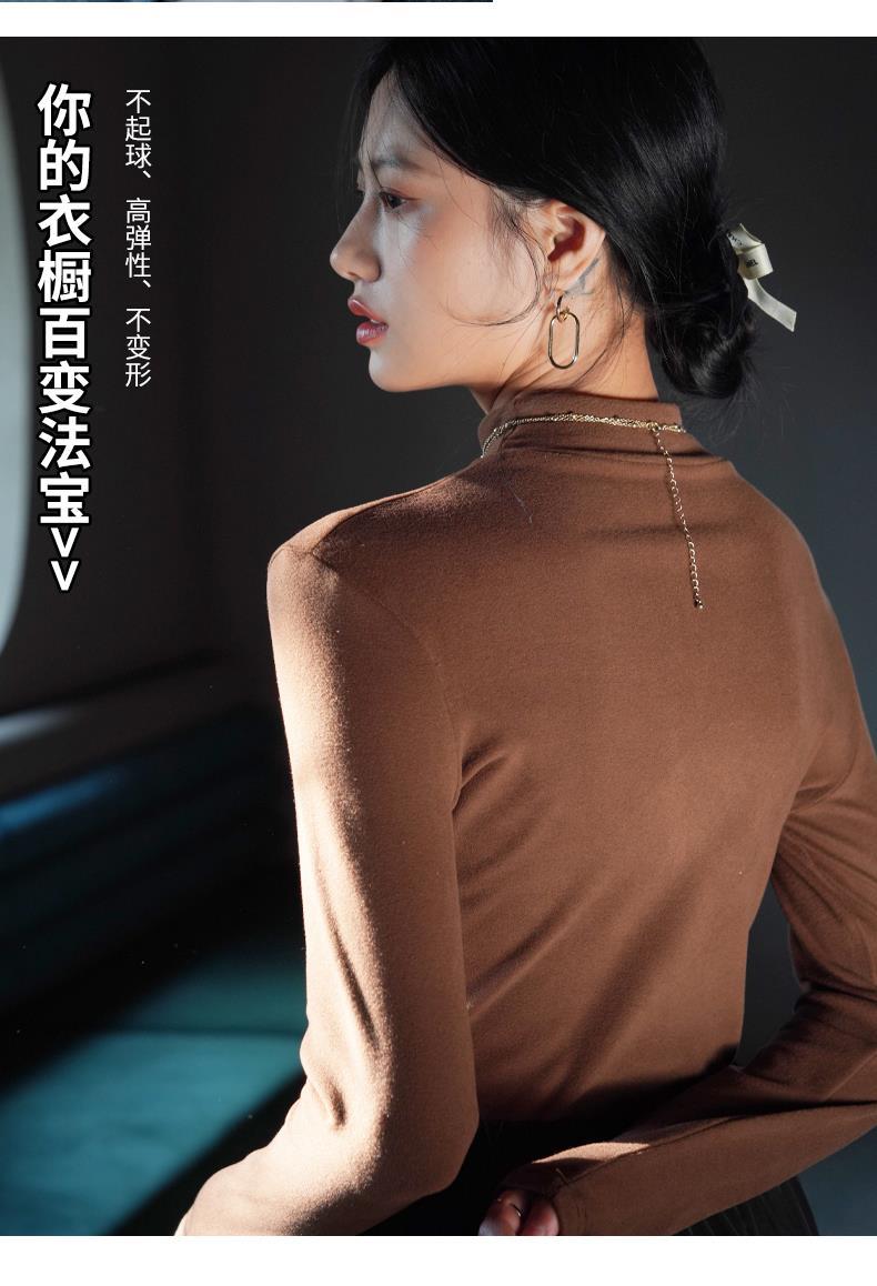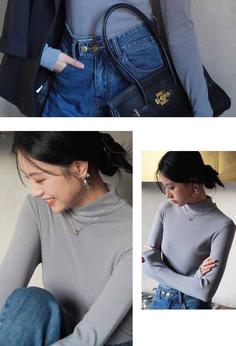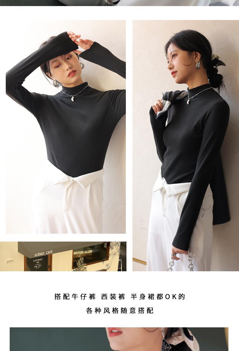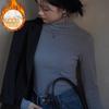 Camiseta Básica de Terciopelo Alemán de Doble Cara con Cuello Medio Alto para Mujer para Otoño e Invierno Cálida con Forro Polar Gruesa Blanco y Negro Nuevo Estilo 2024 Estilo Extranjero Ropa Interior