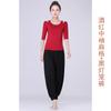 Rose Red mid-cuff shoulder lattice + black radish pants