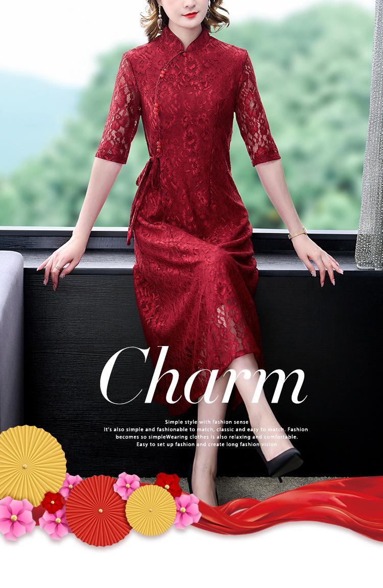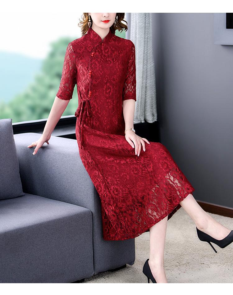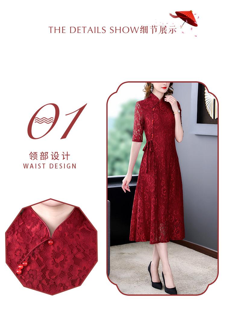 Vestido de novia para suegra, vestido rojo para mujer, verano 2023, nueva moda, elegante, cintura ajustada, vestido de encaje adelgazante