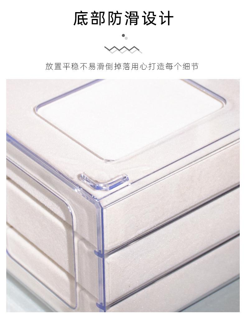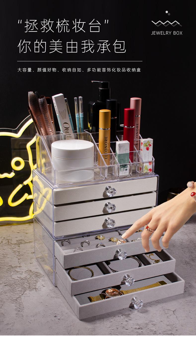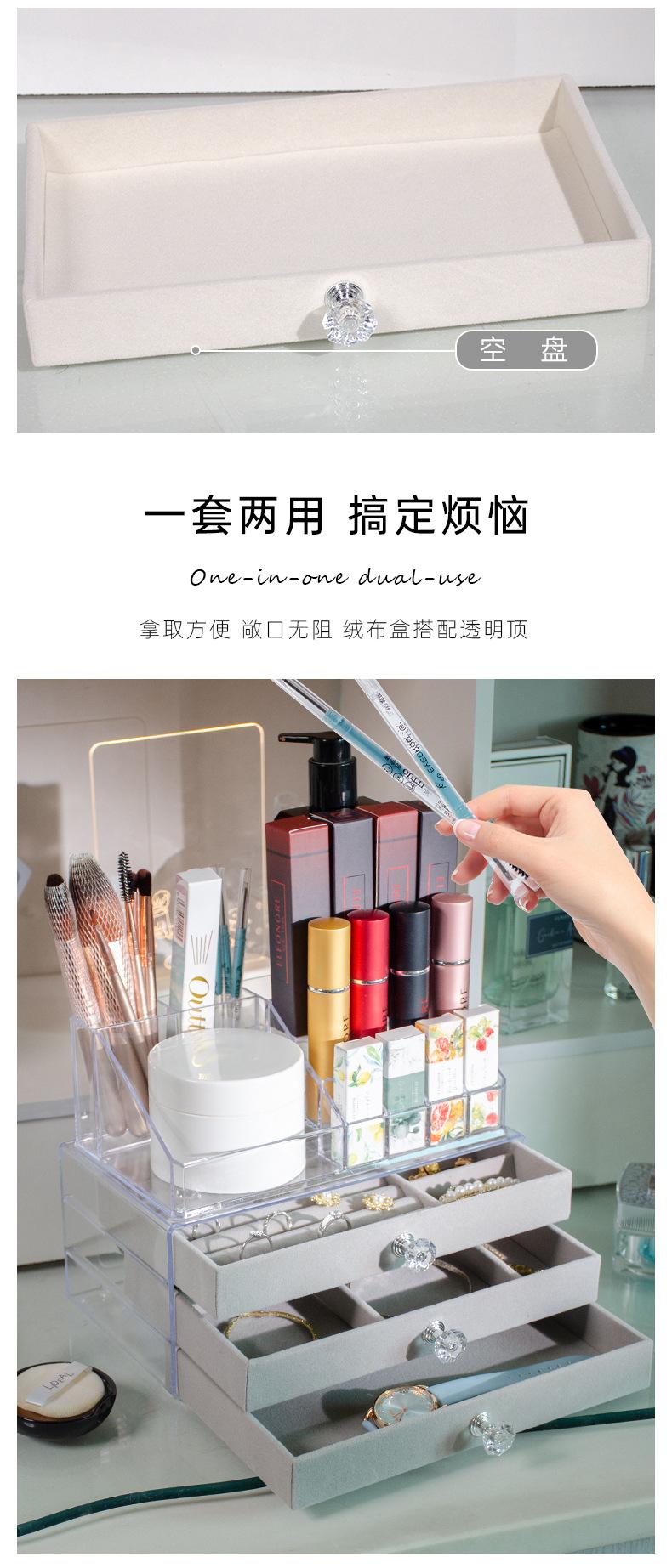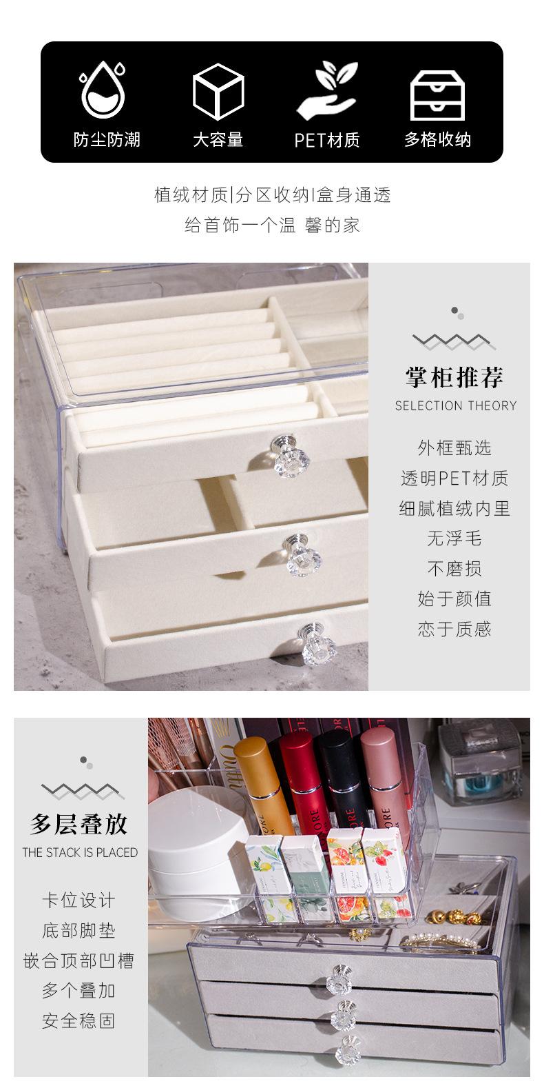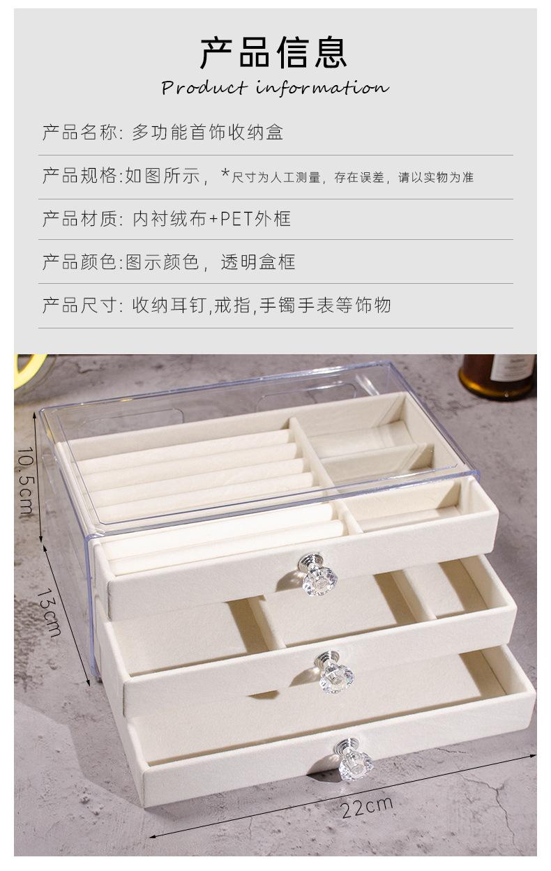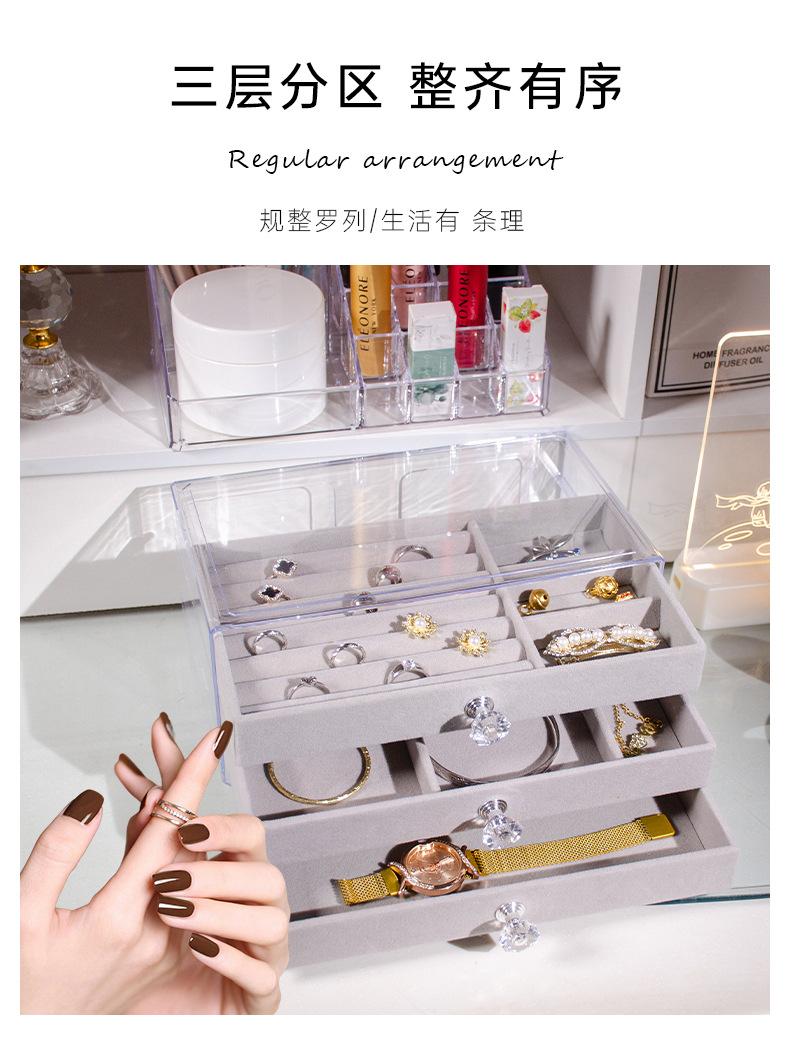 Caja de almacenamiento de joyas de franela, cajón de escritorio de acrílico, aretes, collares, caja de almacenamiento antioxidante, una generación de cabello