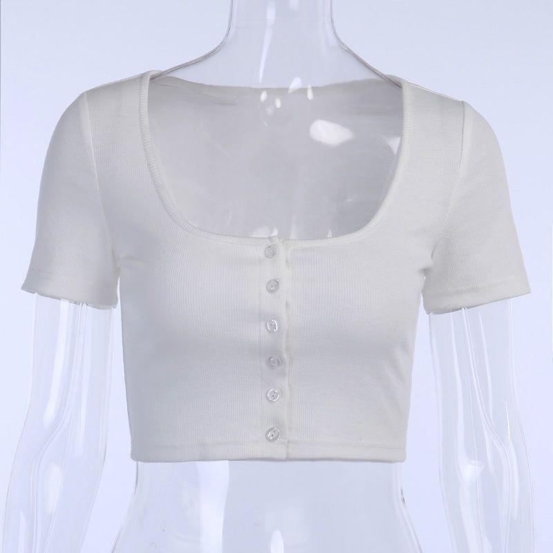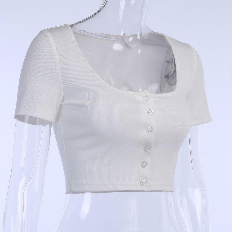 Camiseta blanca de hombros descubiertos para mujer, de verano, nueva, ajustada, con ombligo al descubierto, estilo Spice Girl, con cuello cuadrado