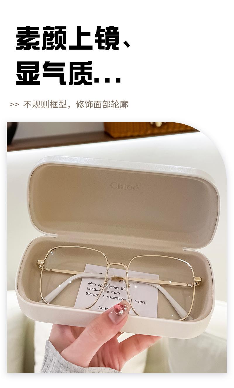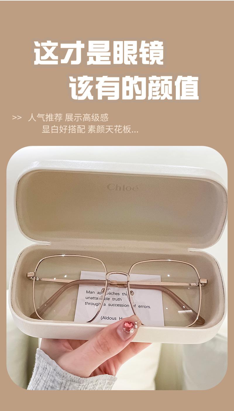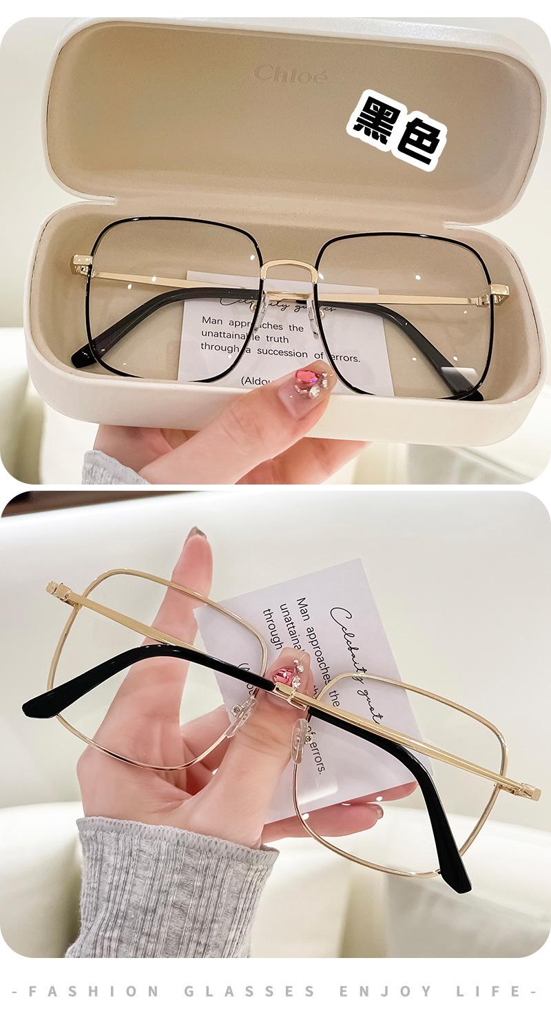 Lentes para miopía con protección contra la luz azul para mujer, con anteojos graduados, protección contra la radiación, lentes planos, montura de metal, tendencia de cara grande y delgada de celebridad de internet