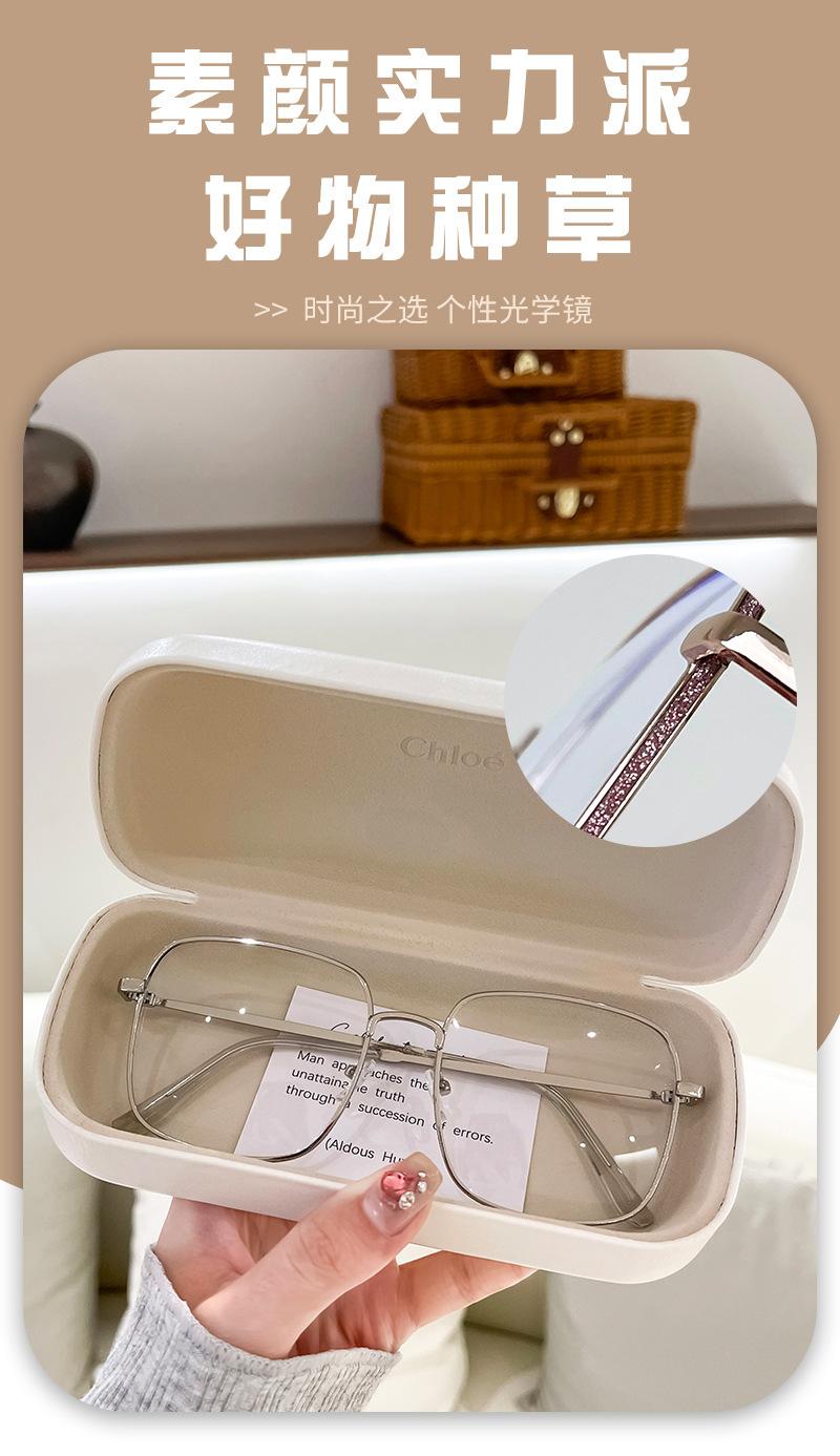 Gafas de miopía con luz azul para mujer, gafas con grados, gafas lisas, montura de metal, red roja, cara grande, adelgazante, de moda