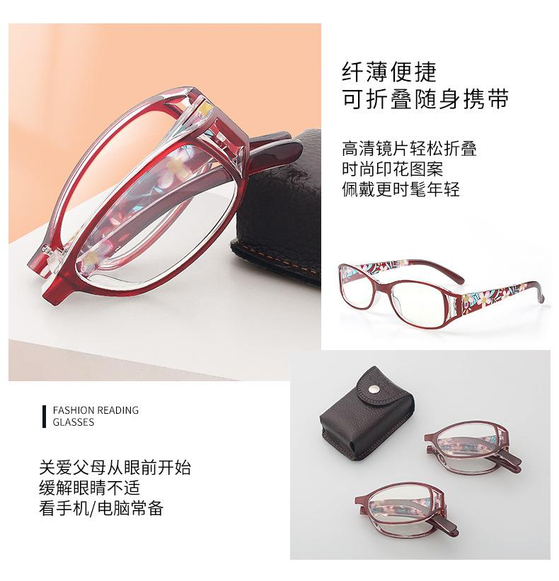 Nuevos lentes de lectura para dama impresión de moda luz anti-azul bolsa flor lentes para la vejez lentes de lectura plegables venta al por mayor mujeres