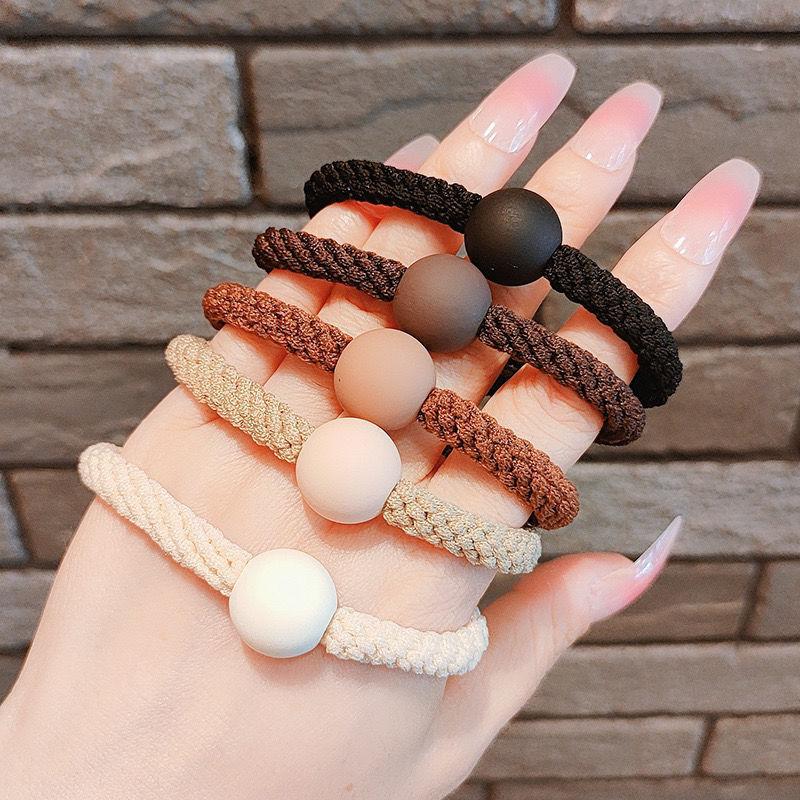 Otoño e invierno Nueva cuerda para el cabello con cuentas redondas gruesas y esmeriladas, banda de goma para el cabello estilo coreano, cuerda para atar el cabello simple, moda de alta calidad