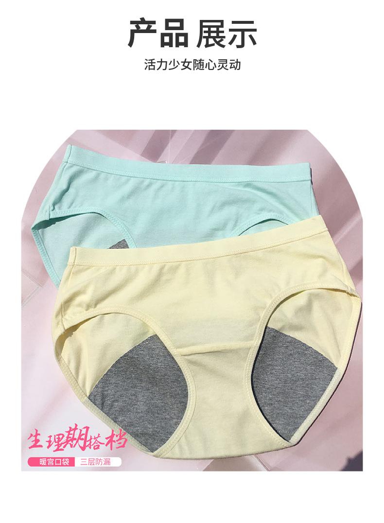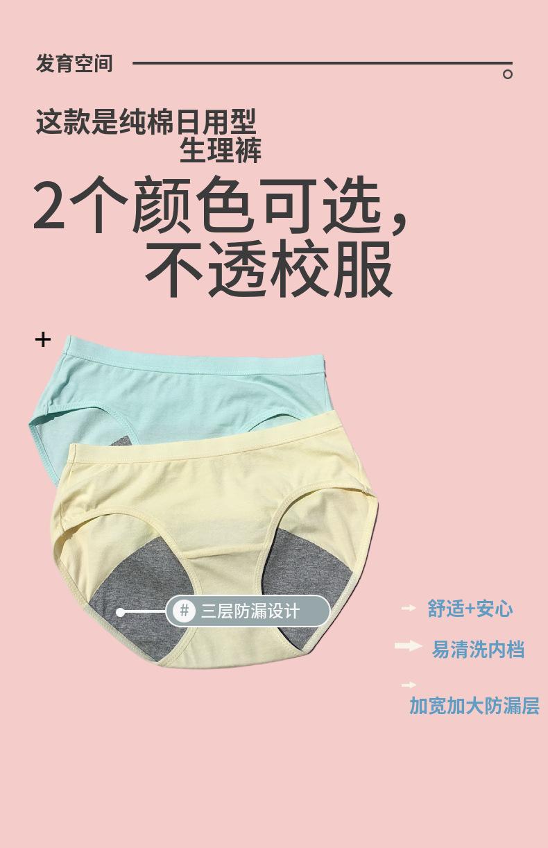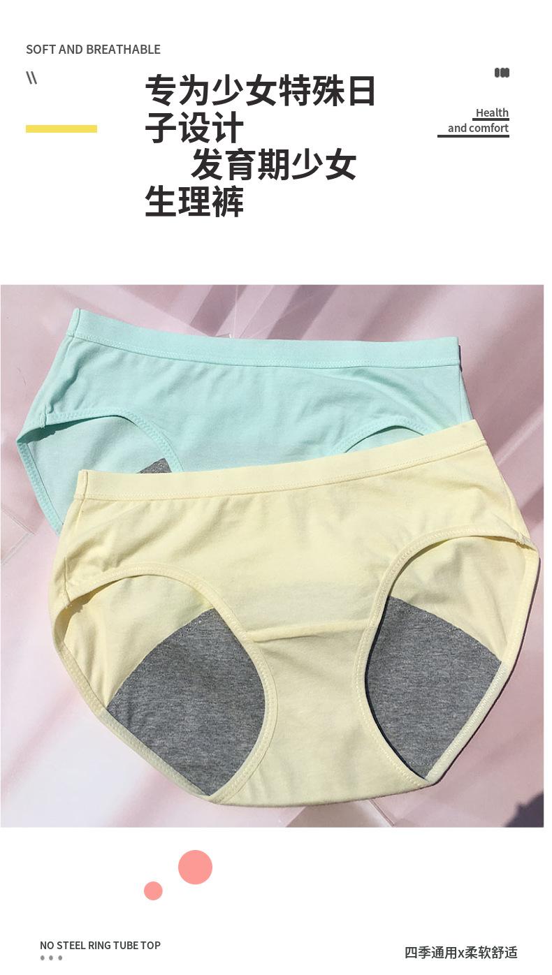 Ropa interior para estudiantes de Congya, ropa interior de algodón para el período fisiológico, a prueba de fugas, para niñas, parte delantera y trasera, prevención de fugas.