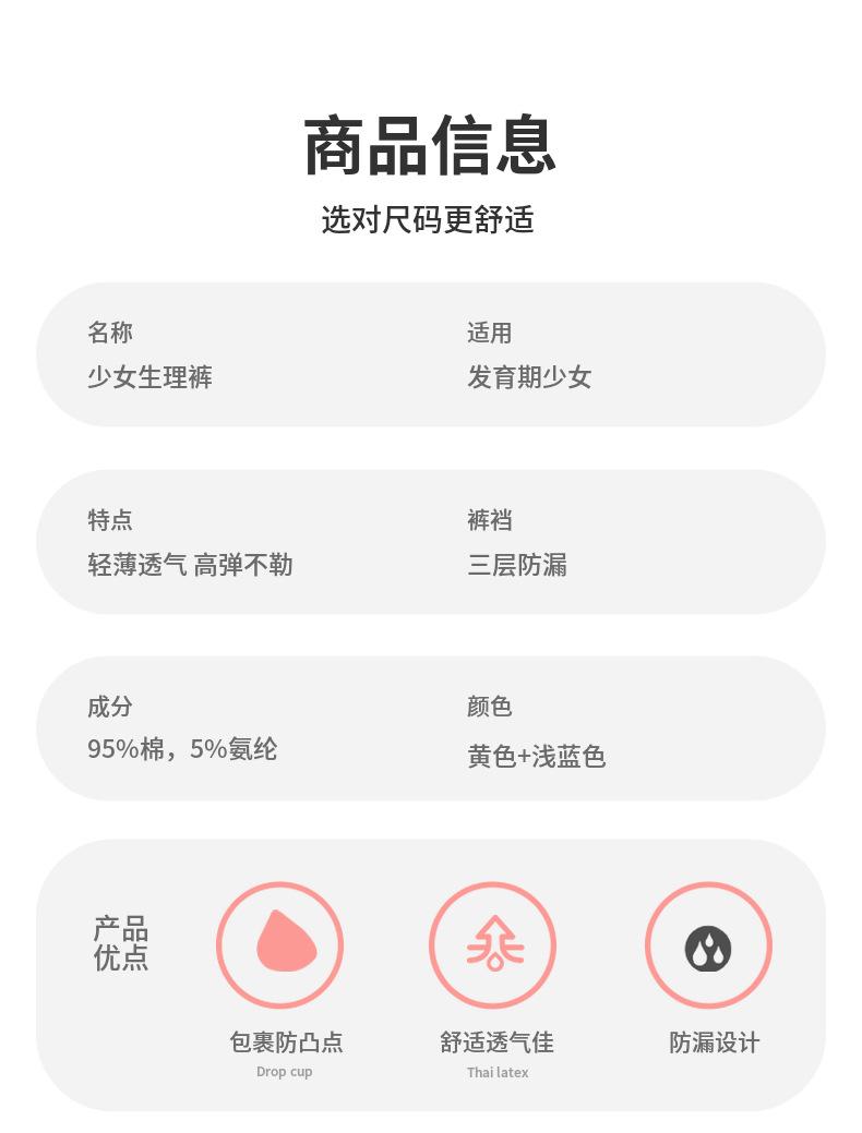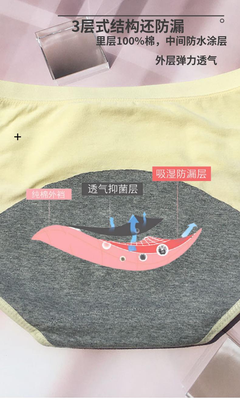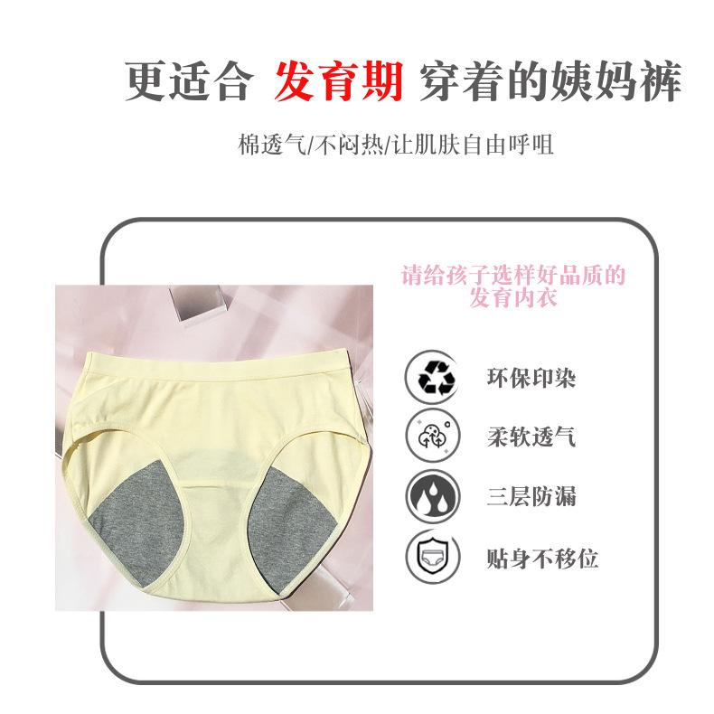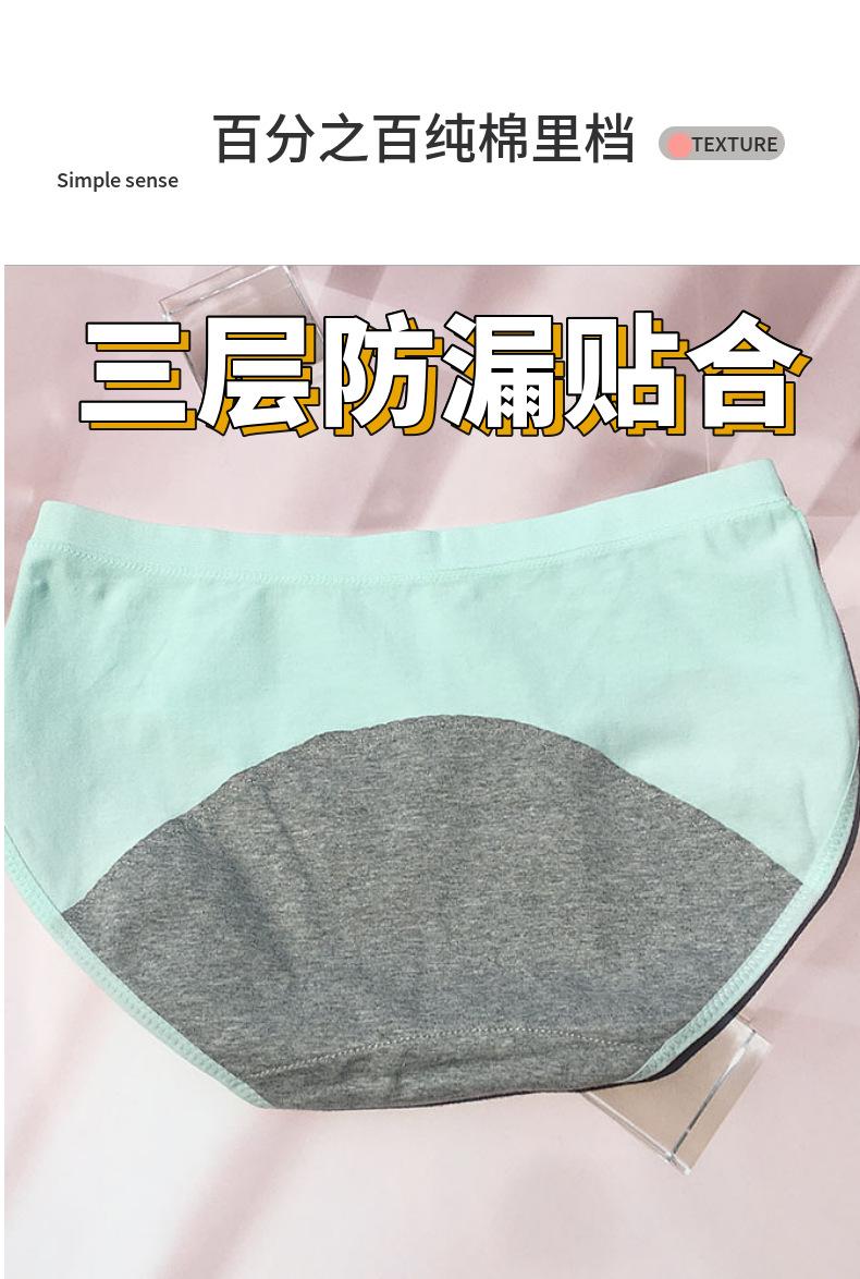 Ropa interior para estudiantes de Congya, ropa interior de algodón para el período fisiológico, a prueba de fugas, para niñas, parte delantera y trasera, prevención de fugas.